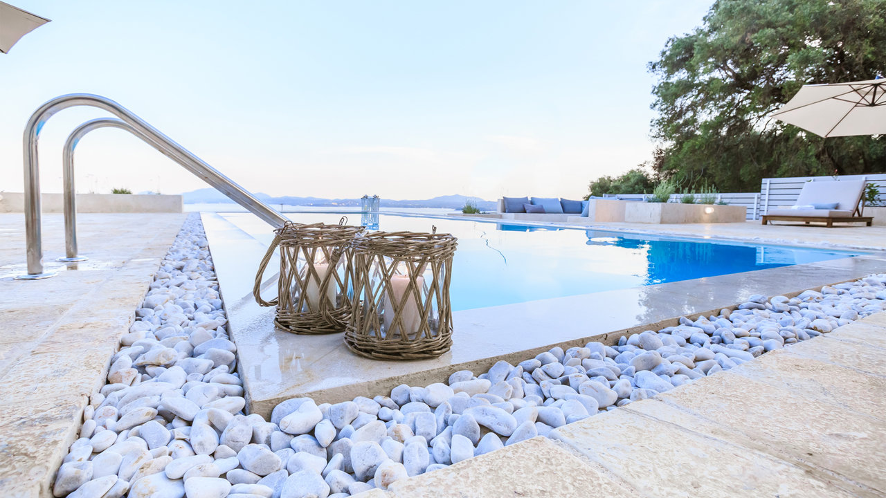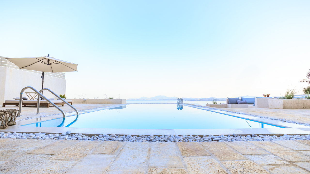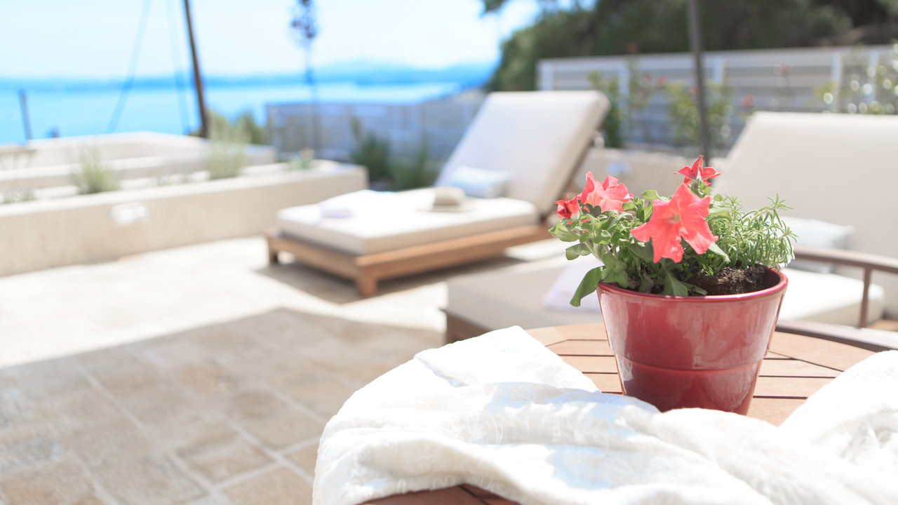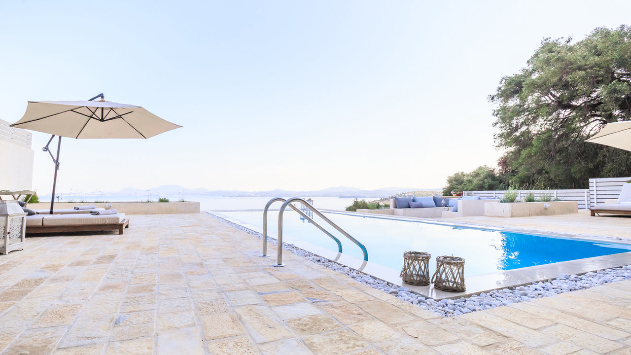 Around the pool area, you can relax on the comfortable sunbeds, have a drink in the sitting area overlooking the sea or have a meal in the covered dining area which is equipped with a traditional wood-fire BBQ.