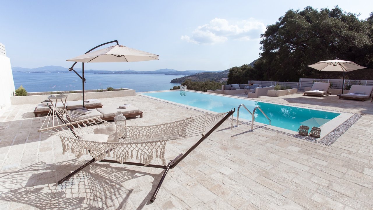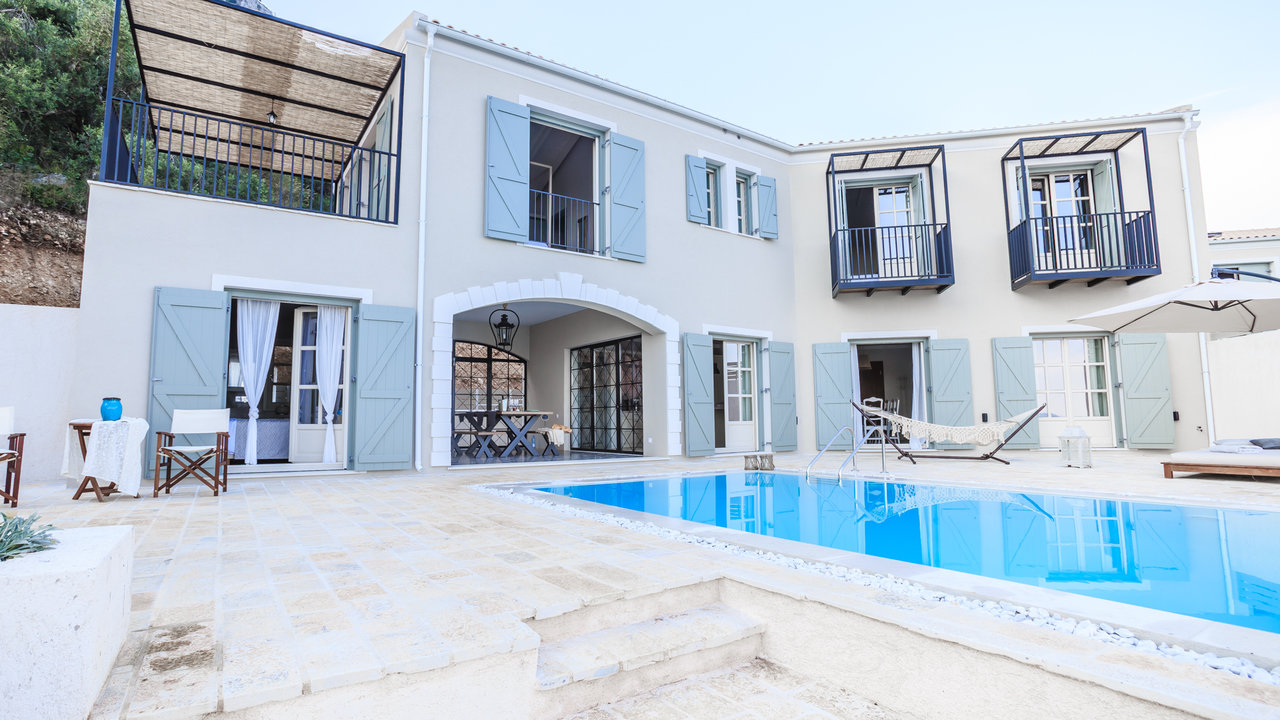This tastefully designed villa accommodates up to 8 guests in the 4 bedrooms with en-suite bathrooms and the breathtaking sea views overlooking the Ionian Sea.