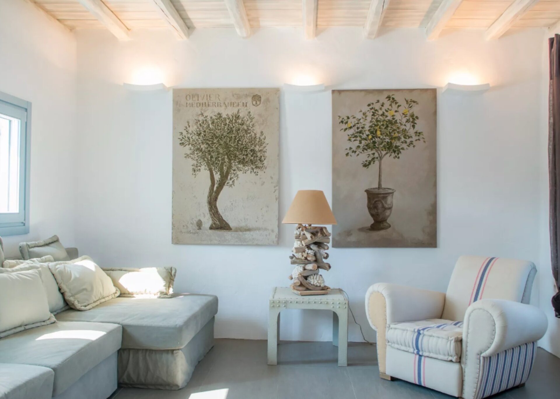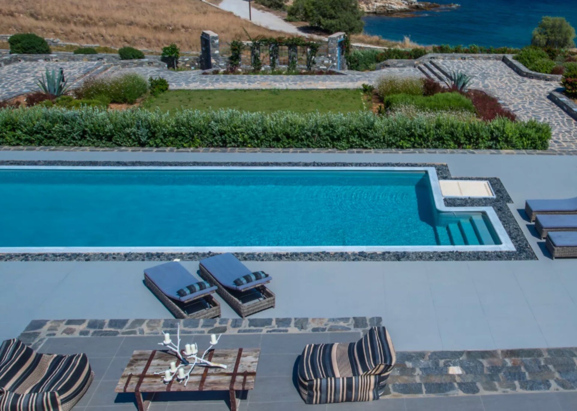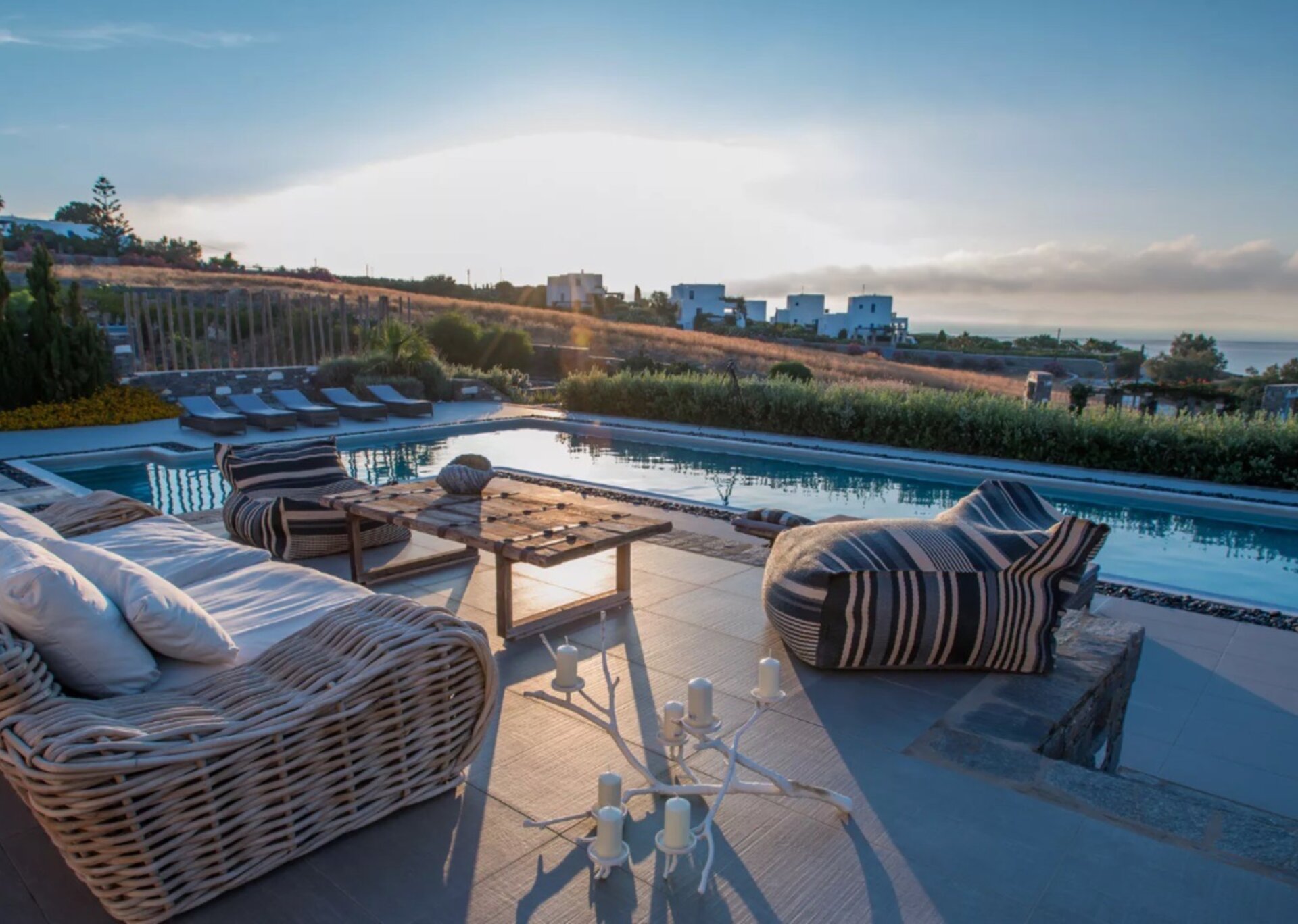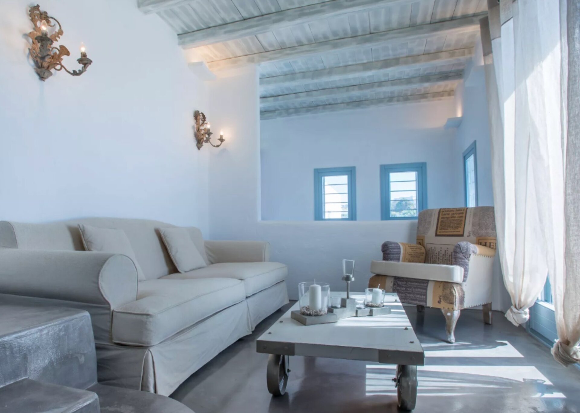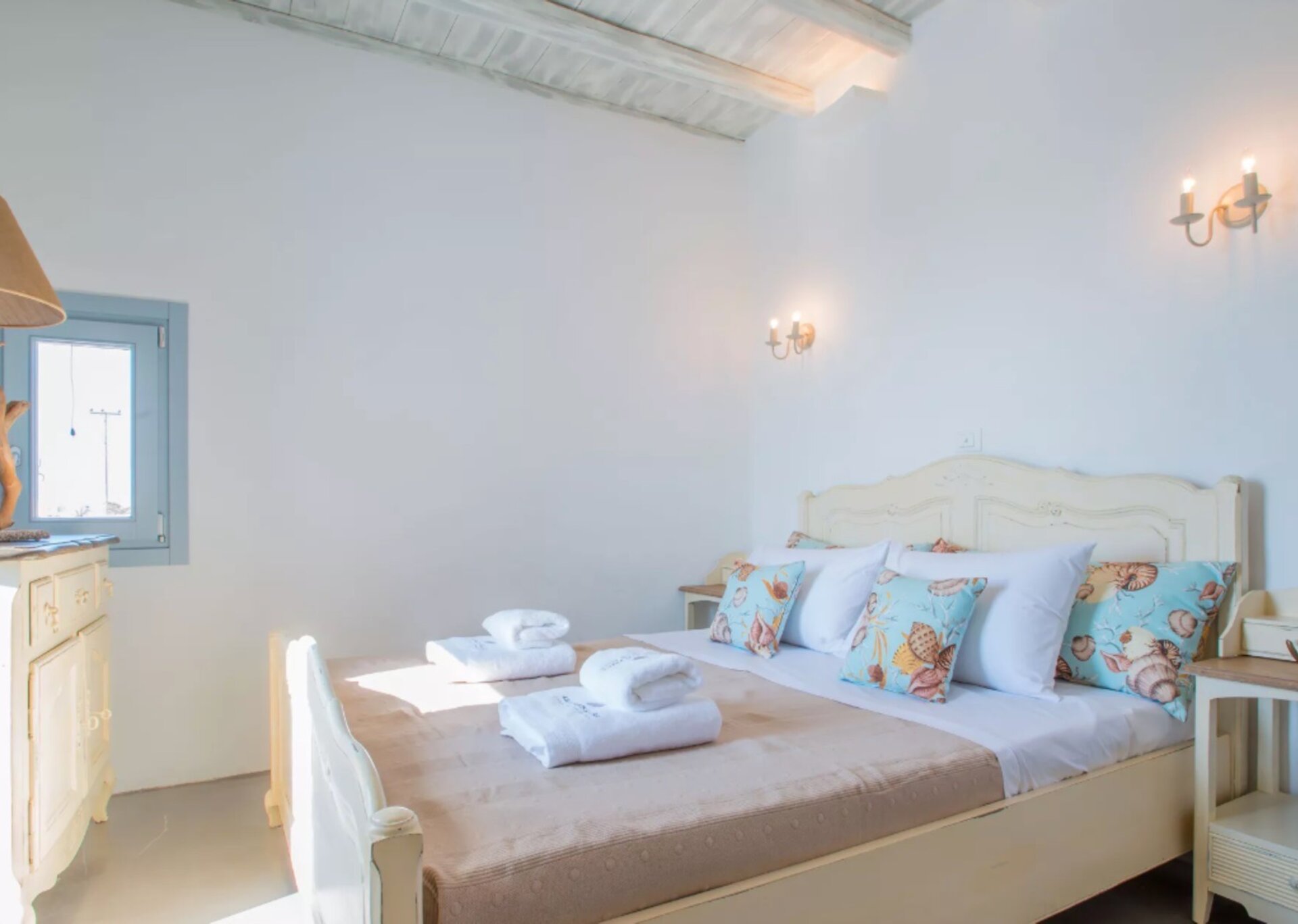Imagine waking up to magnificent views of the Cycladic coastline and the Aegean Sea from the comfort of your plush bed. You slowly unwind on the balcony as the sun rises, heralding the start of another beautiful day.