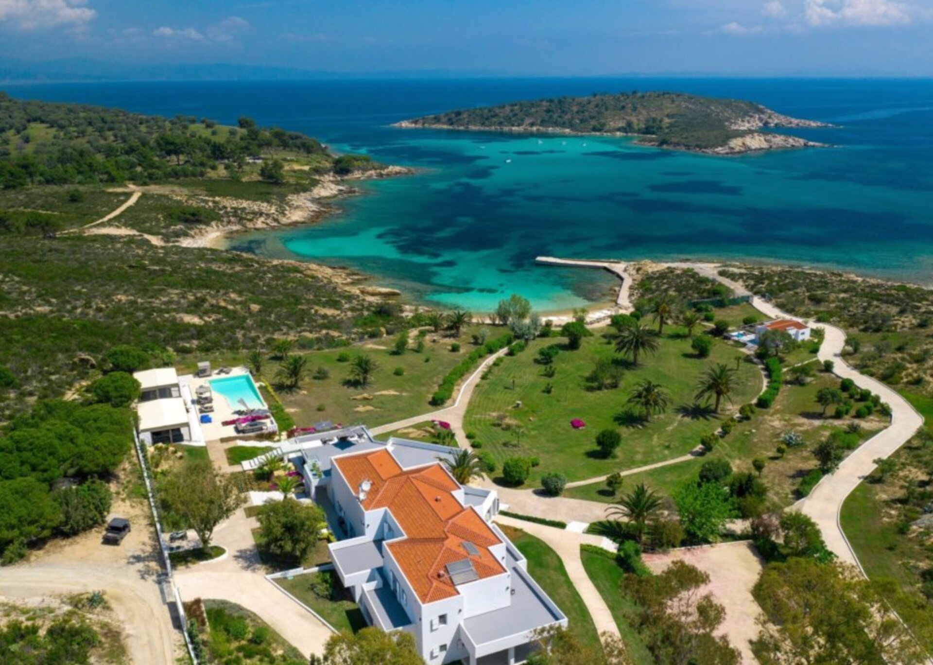 Discover pure luxury and idyllic living in the heart of Diaporos island, Halkidiki at Villa Agnes. This awe-inspiring estate is where sophistication meets comfort.