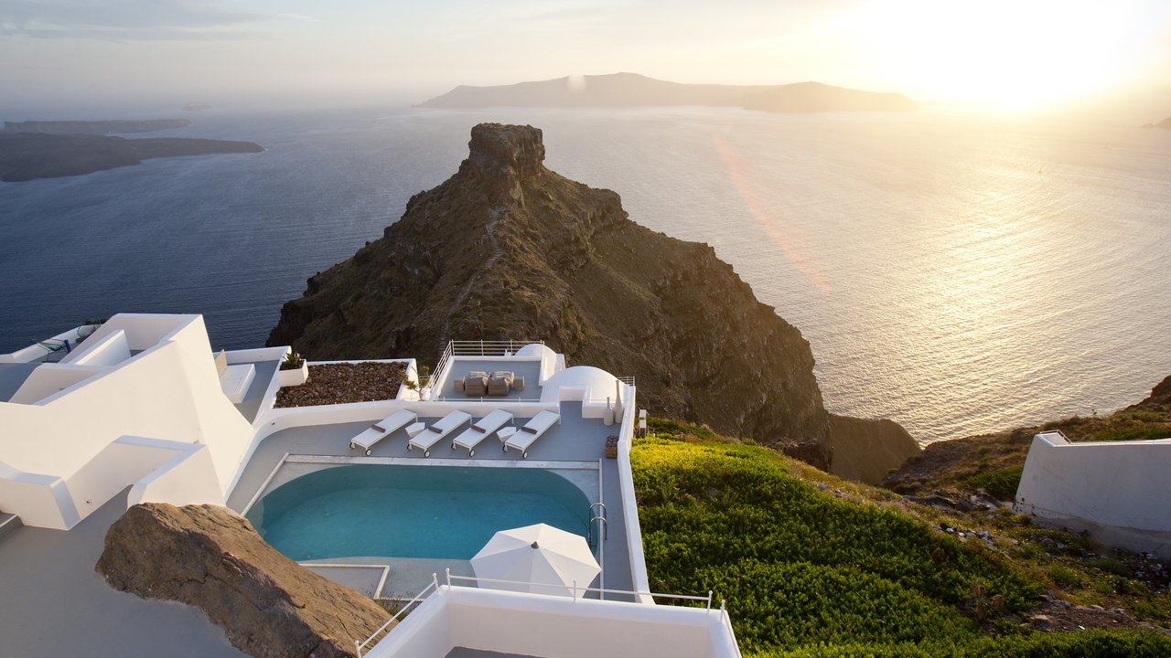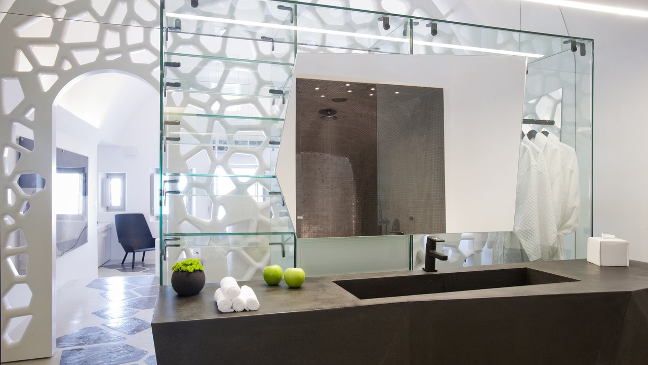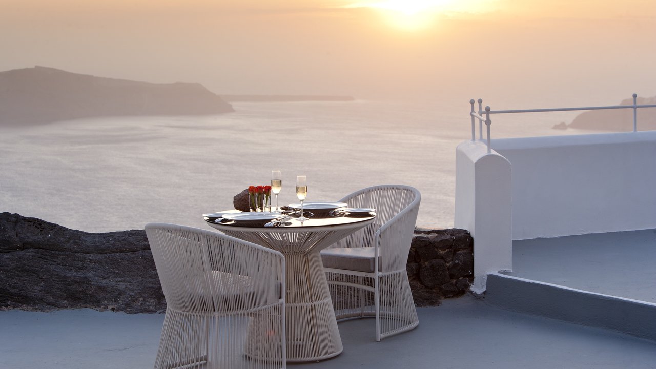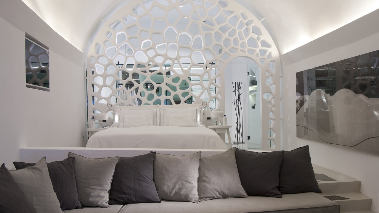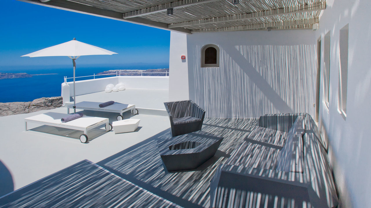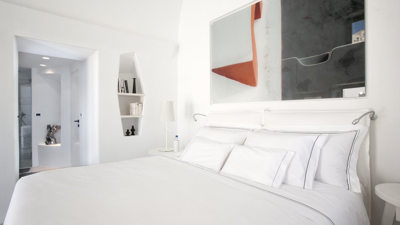 1 VIP suite and 1 master-suite, both with king size bed, en-suite bathroom with shower, A/C, Wi-Fi, SAT TV, full-length mirror, hairdryer, safe box, view to caldera, sea and sunset