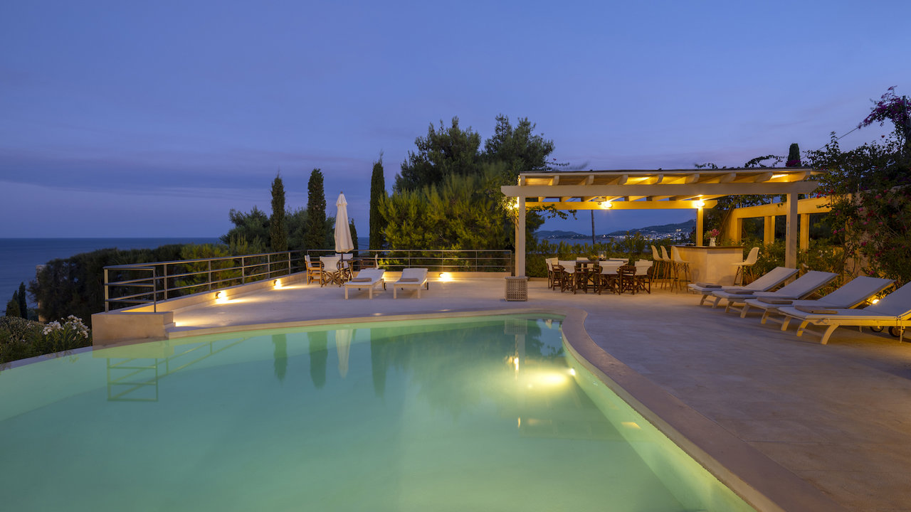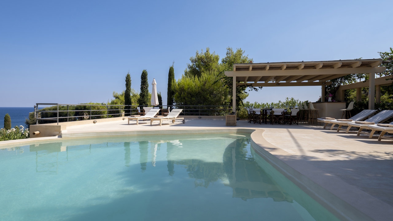 Villa Alina stands out as an exquisitely crafted property comprising 8+1 bedrooms, which include luxurious guest suites and a cozy staff room for added convenience. The allure of this villa is further heightened by its expansive garden featuring a verdant lawn, a generous terrace perfect for al fresco dining, a pristine pool for relaxation, ample lounging areas for soaking up the sun, an inviting outdoor bar space, and a designated BBQ spot ideal for hosting gatherings. All these amenities come together harmoniously to offer residents an unparalleled experience, complemented by breathtaking panoramic views of the sea.