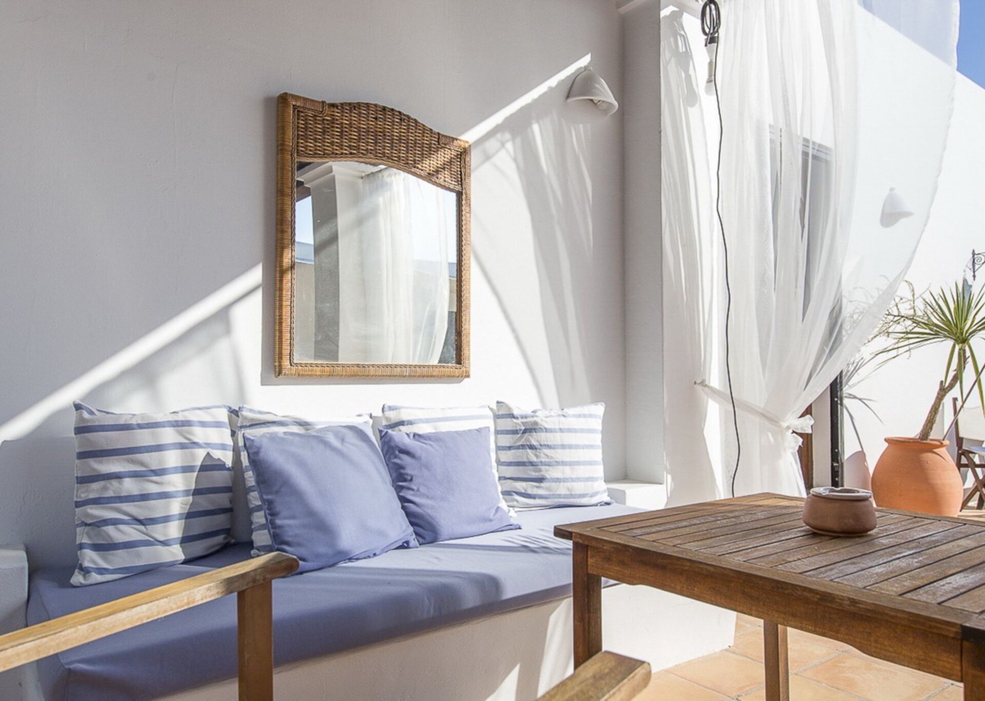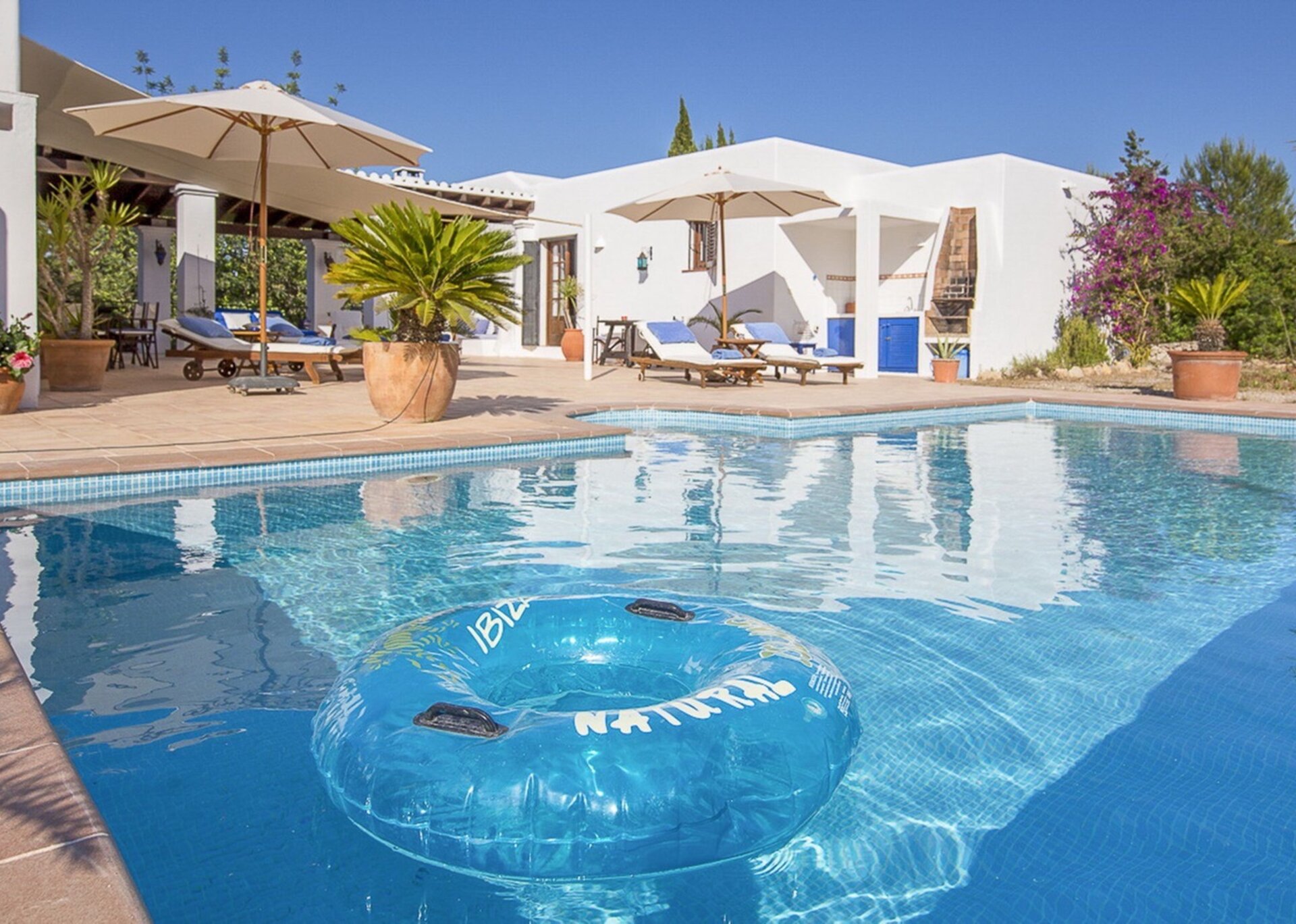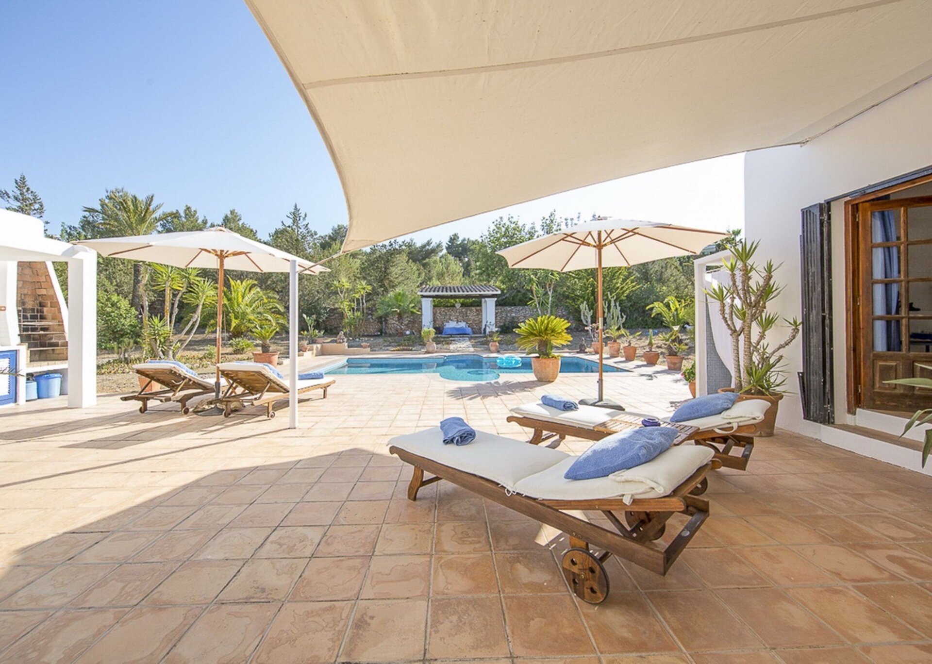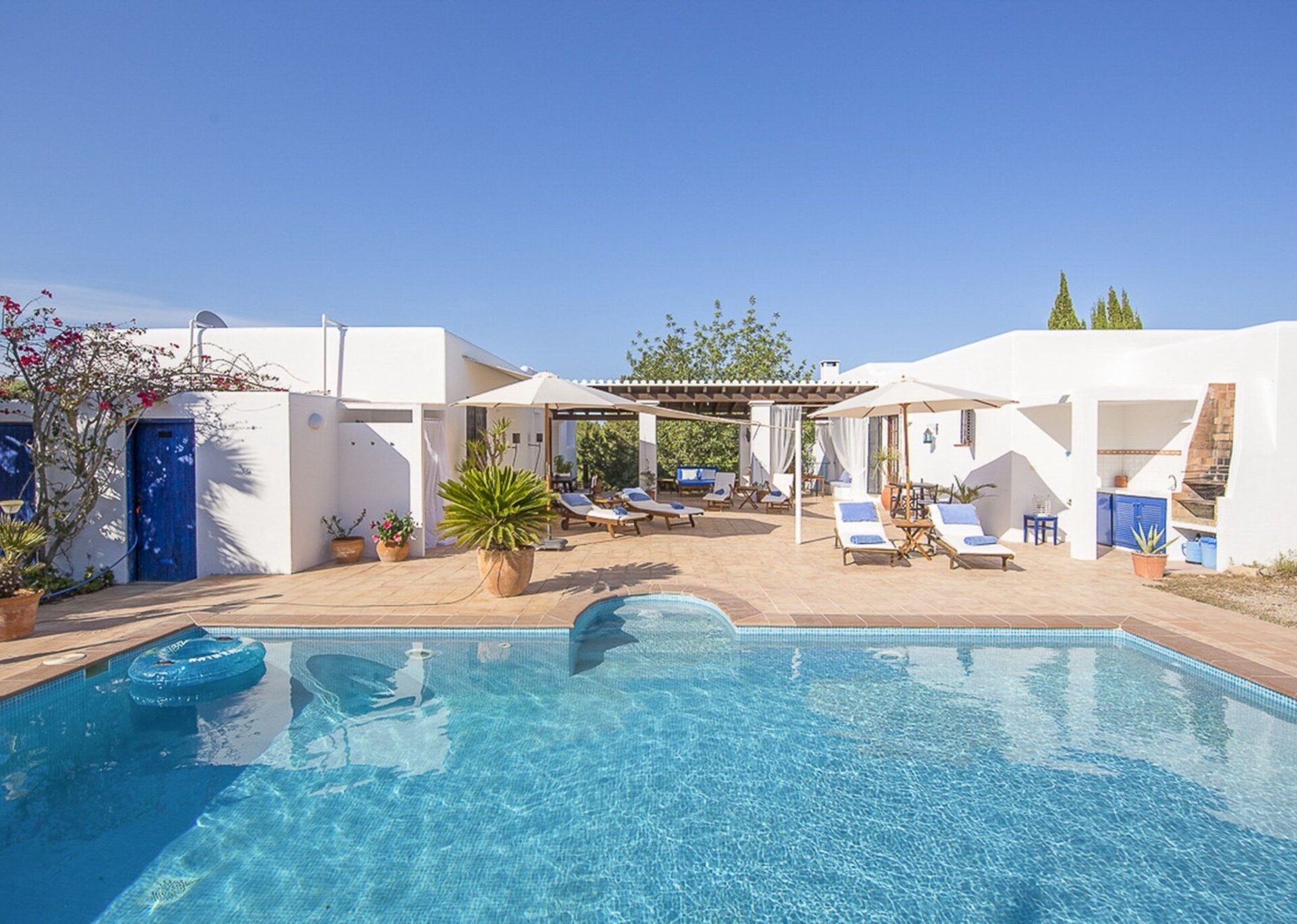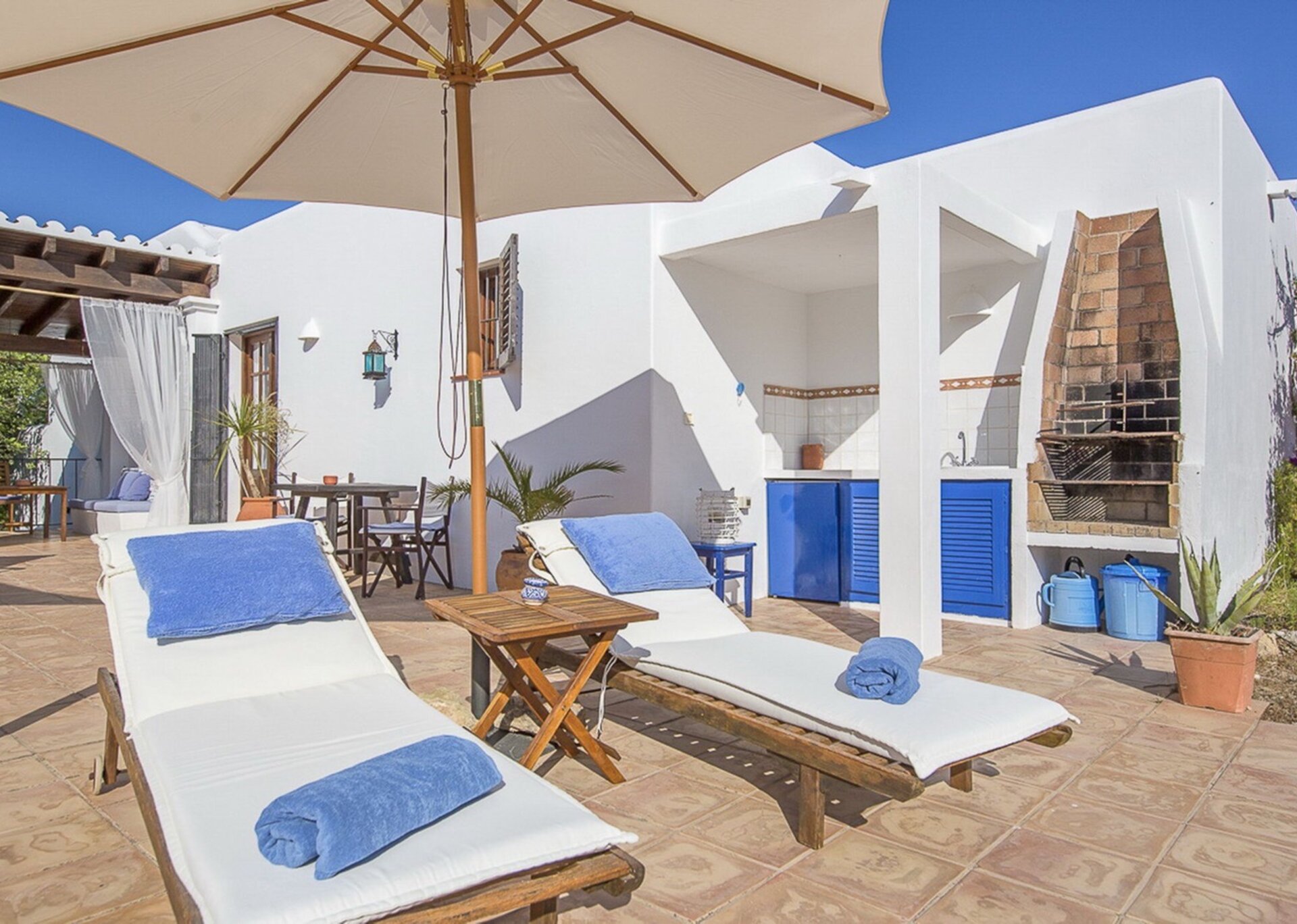 This villa is beautifully furnished with meticulous attention to detail. The building on the left, facing the pool, features a double bedroom, a bathroom with double sinks, a bathtub, and a shower. It also includes a living room with a sofa bed suitable for a maximum of 2 children, as well as a private terrace. On the right side, also facing the pool, you will find a double bedroom with an en-suite bathroom that includes a sink and shower. Additionally, there is a dining/living room, an open American kitchen, and a private terrace.