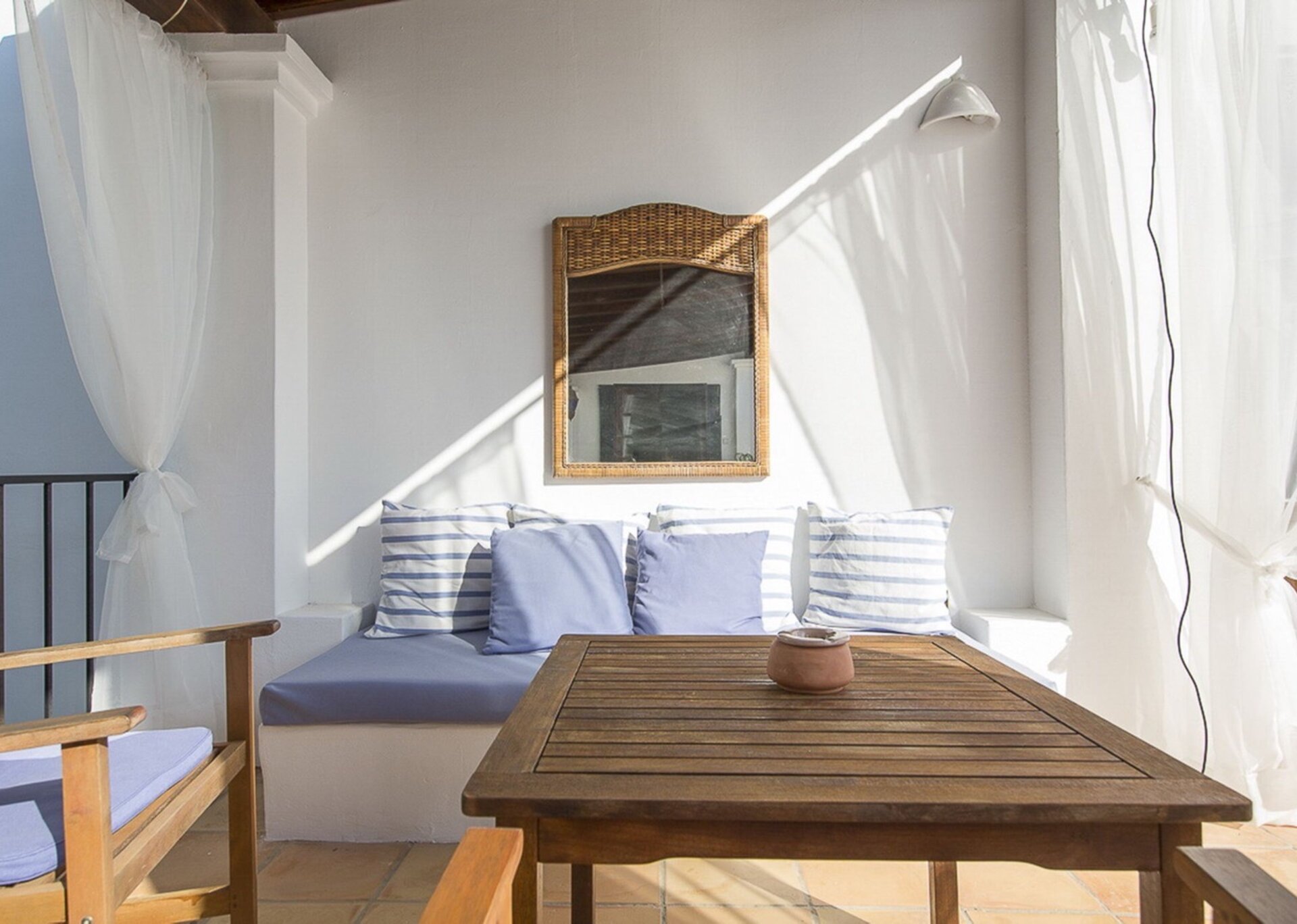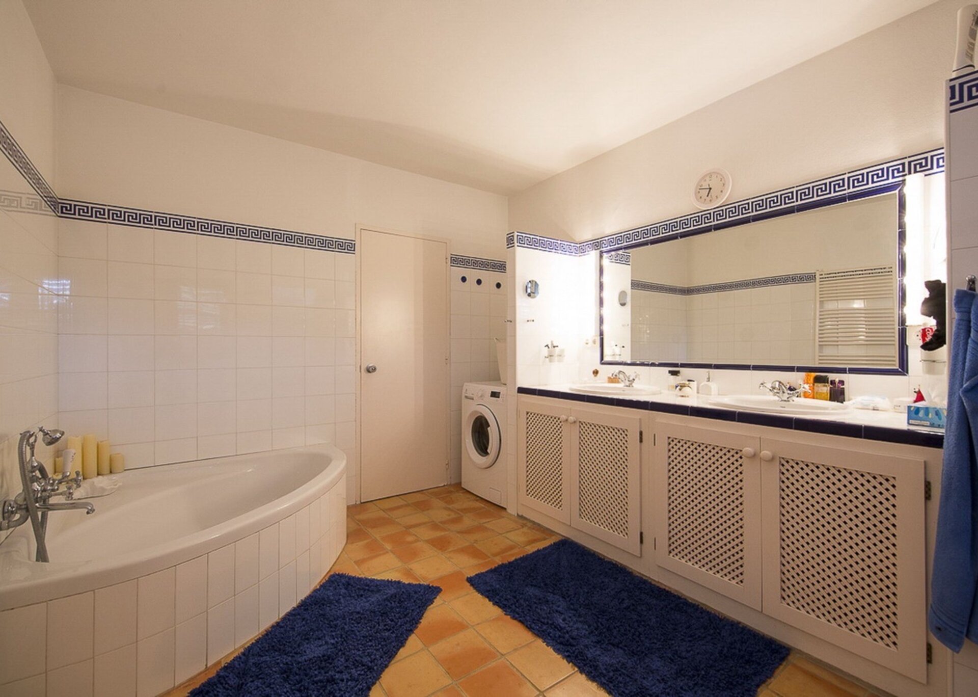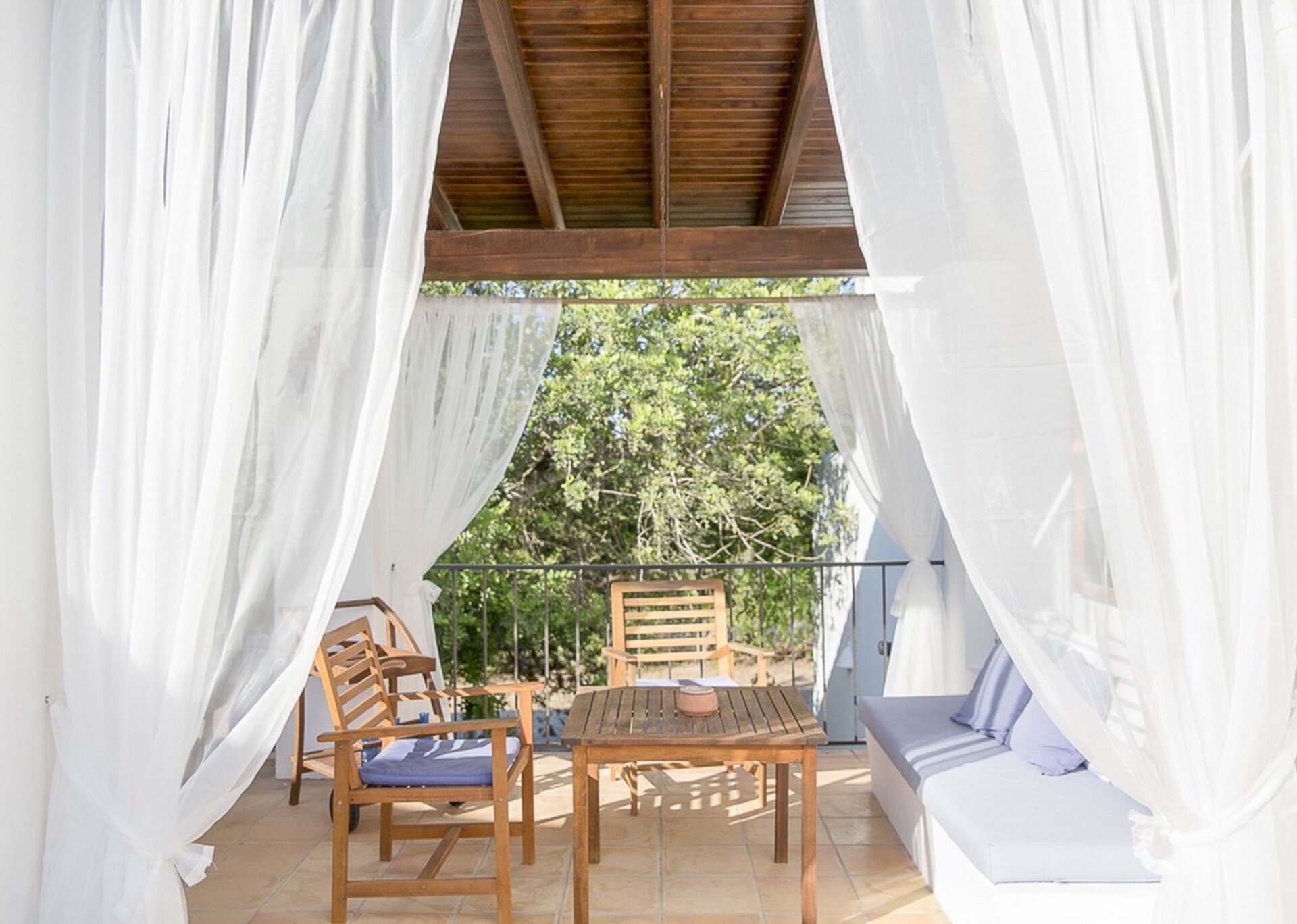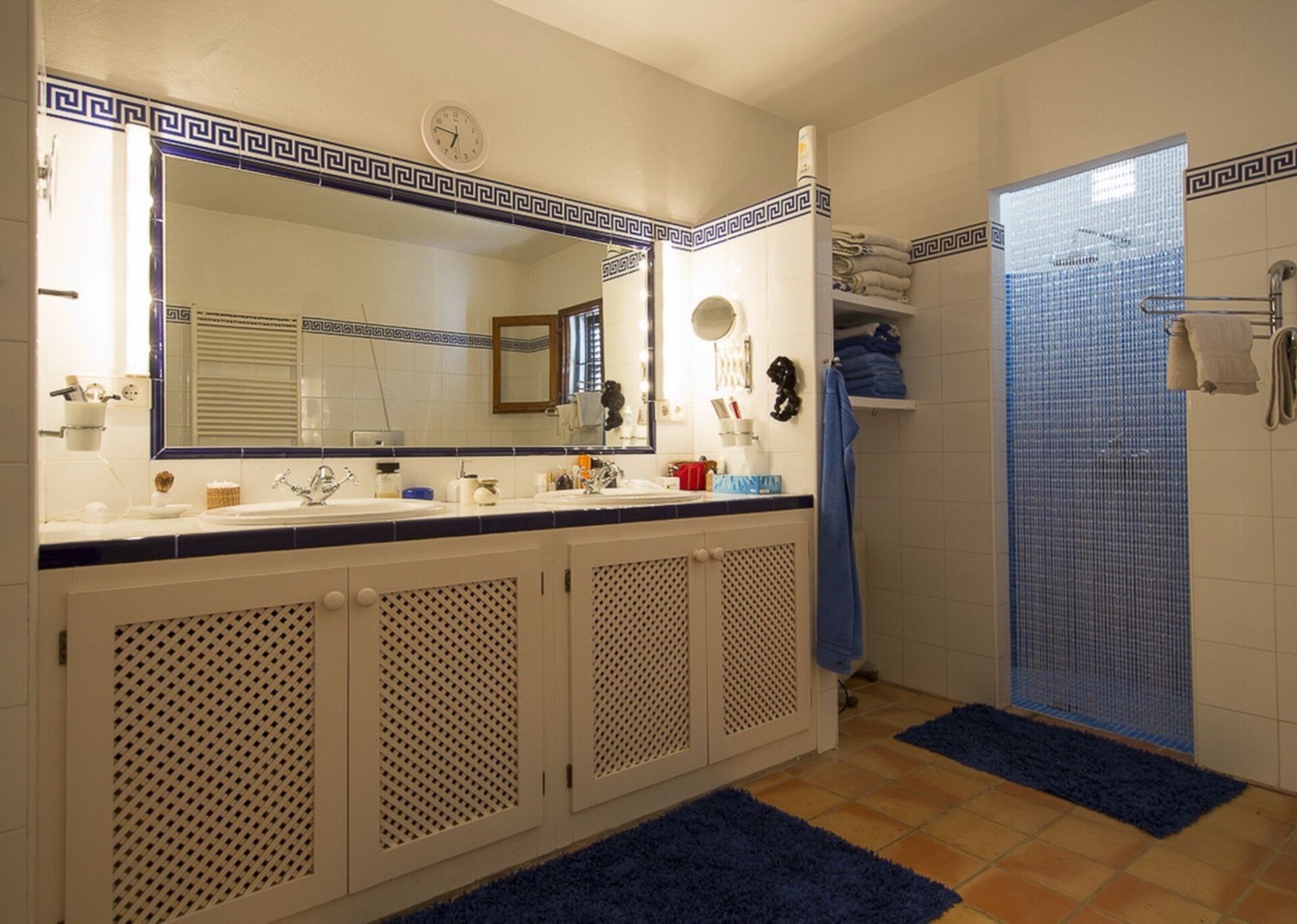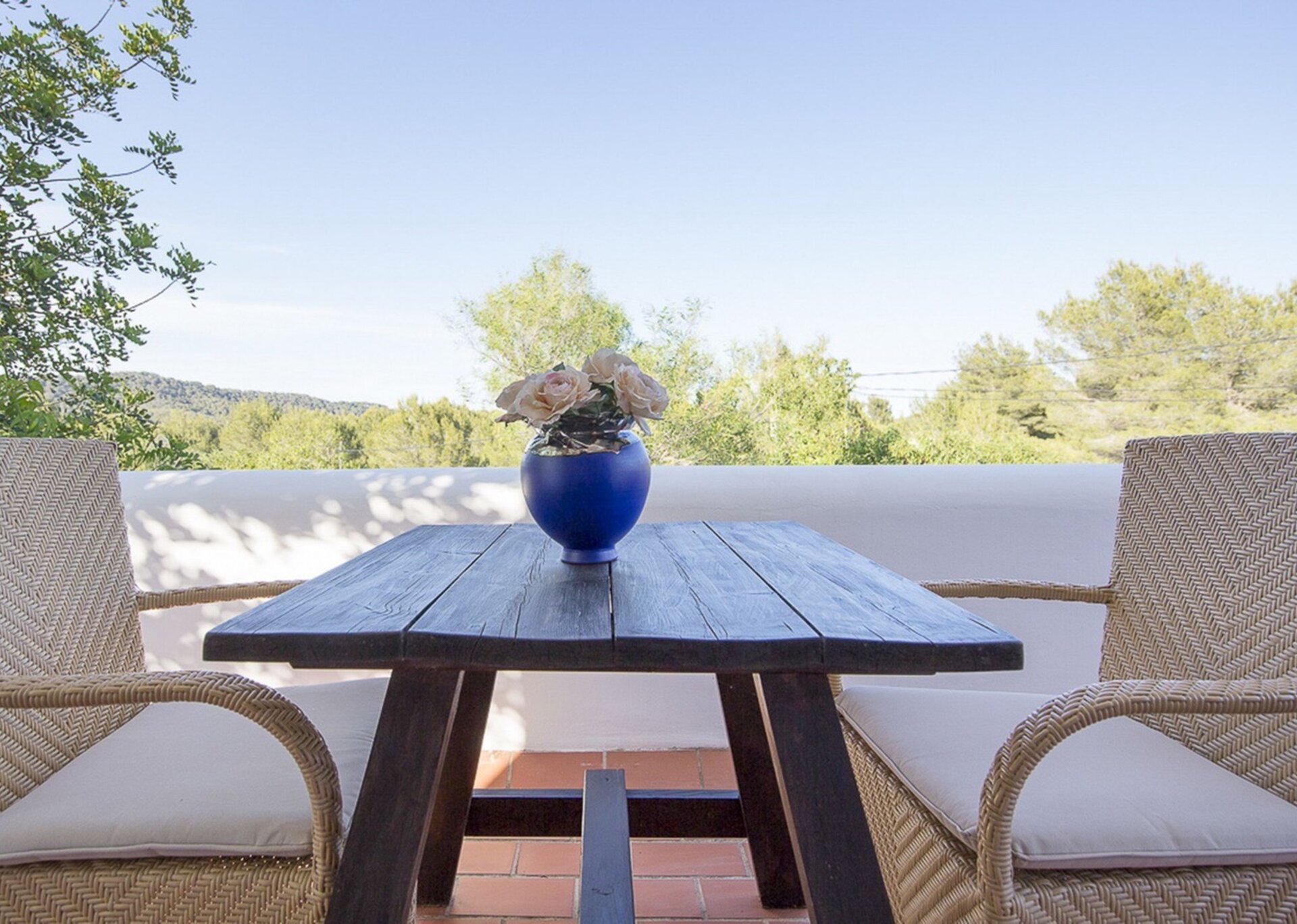 This villa is beautifully furnished with meticulous attention to detail. The building on the left, facing the pool, features a double bedroom, a bathroom with double sinks, a bathtub, and a shower. It also includes a living room with a sofa bed suitable for a maximum of 2 children, as well as a private terrace. On the right side, also facing the pool, you will find a double bedroom with an en-suite bathroom that includes a sink and shower. Additionally, there is a dining/living room, an open American kitchen, and a private terrace.