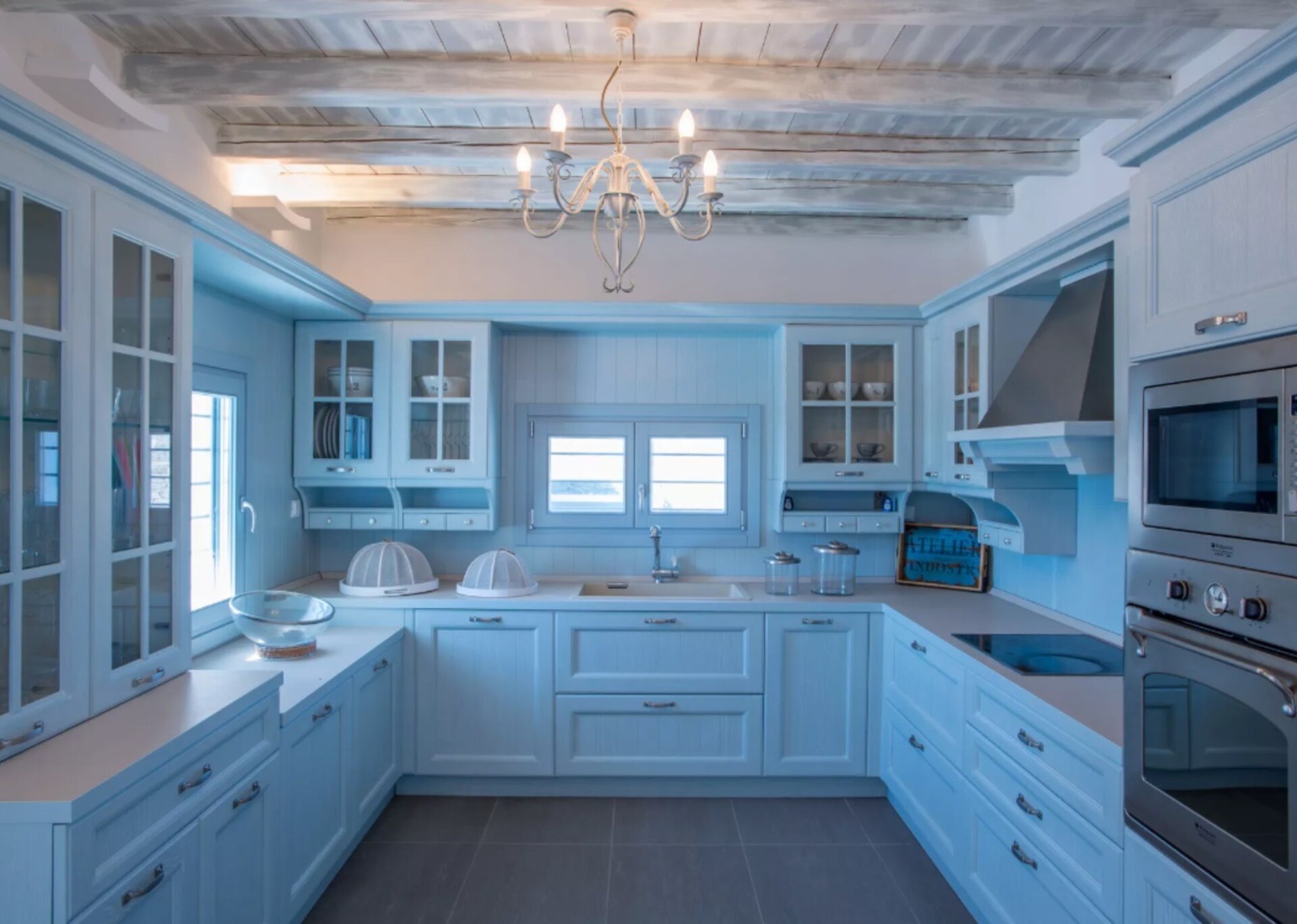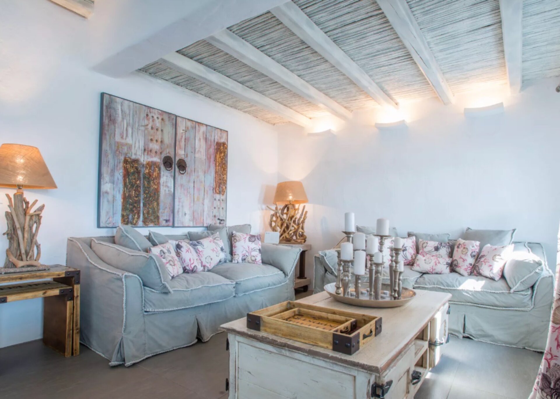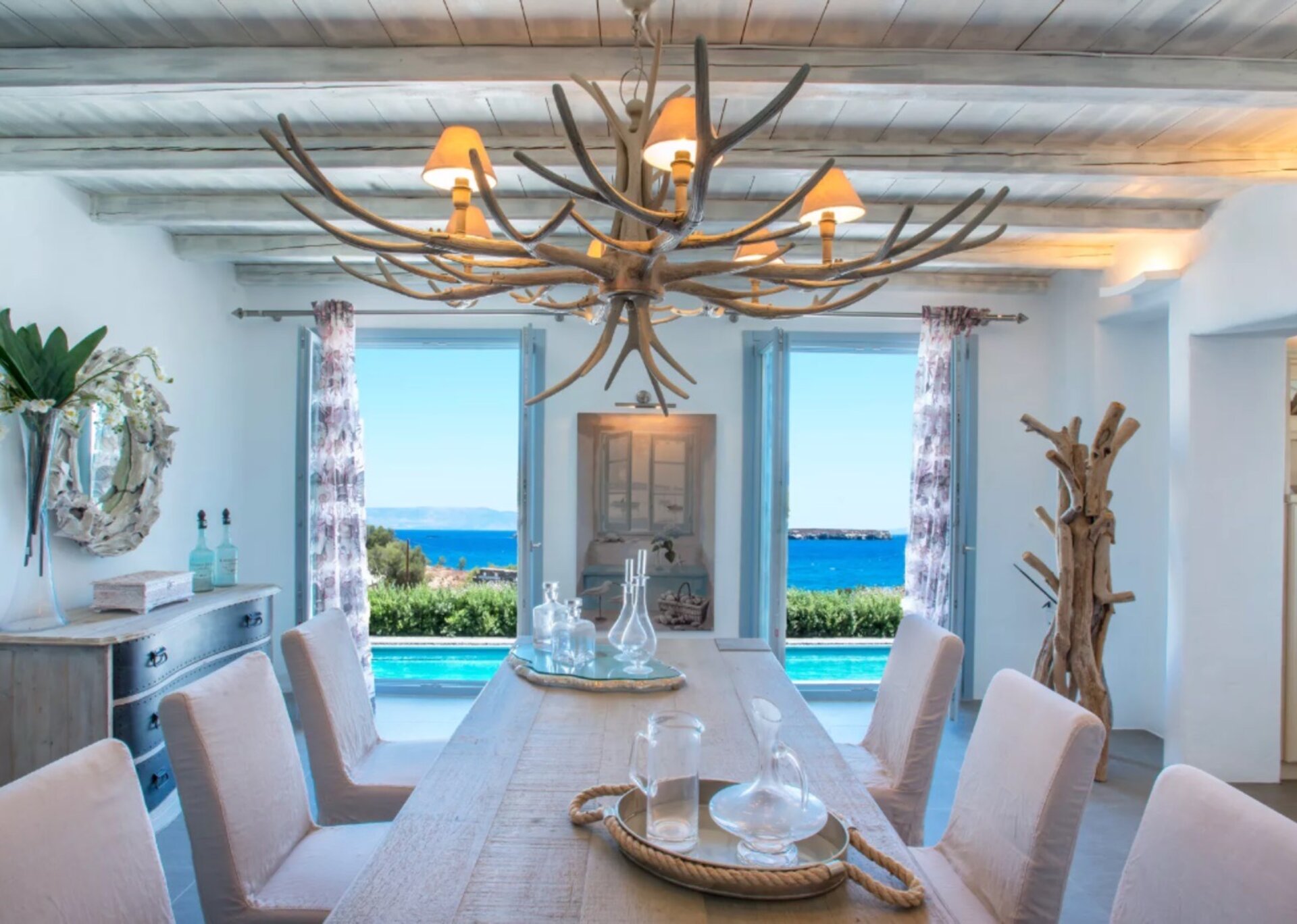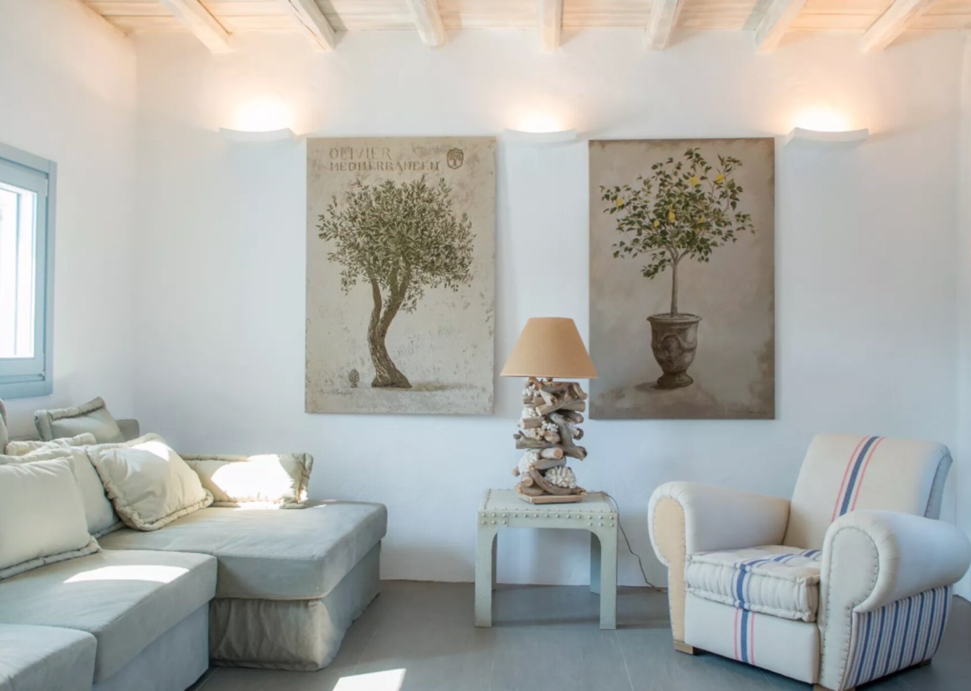 From its upper-level bedroom balconies, one can enjoy the breathtaking sunset views of the Aegean Sea. A ceramic-tiled patio, located at pool level, offers the ideal setting for al-fresco dining. Located in fashionable Golden Beach area, the villa offers quiet and relaxed surroundings.
