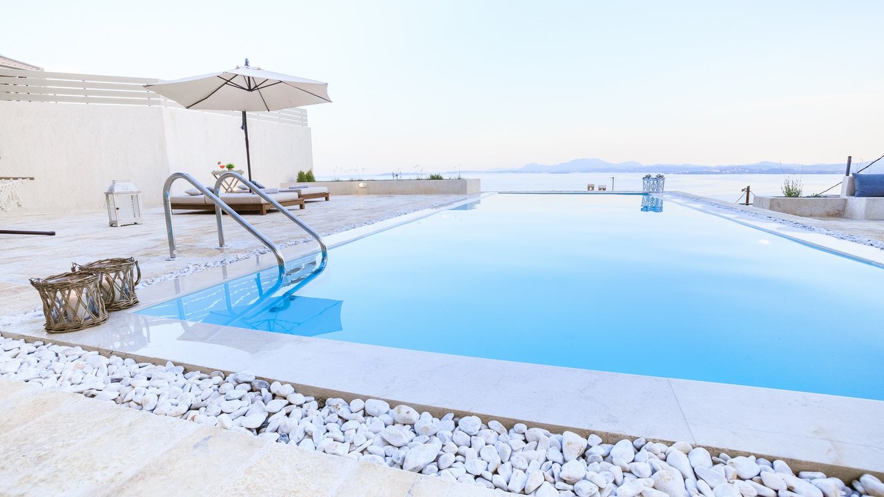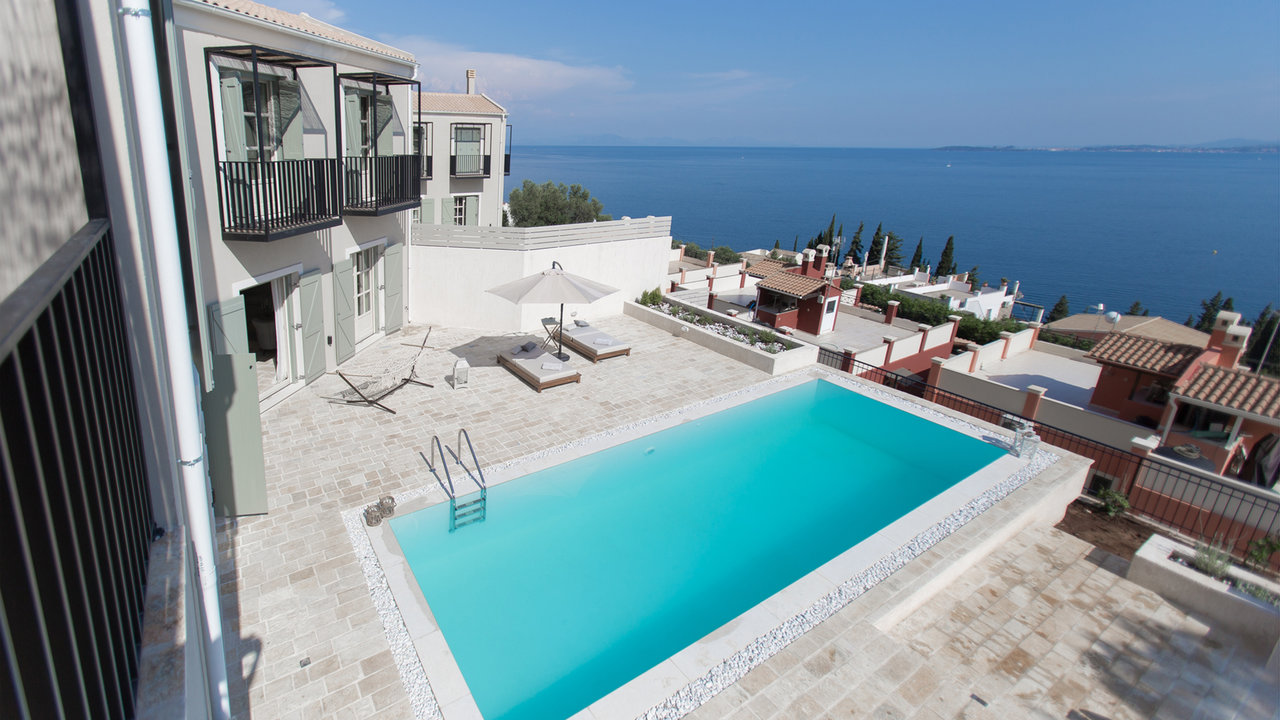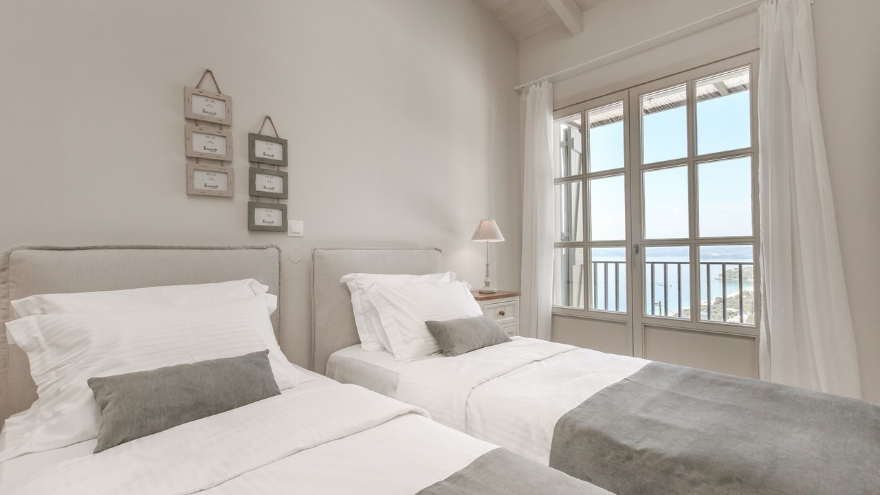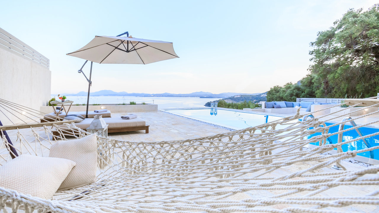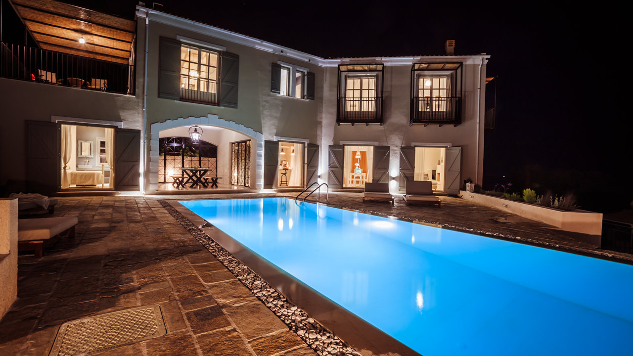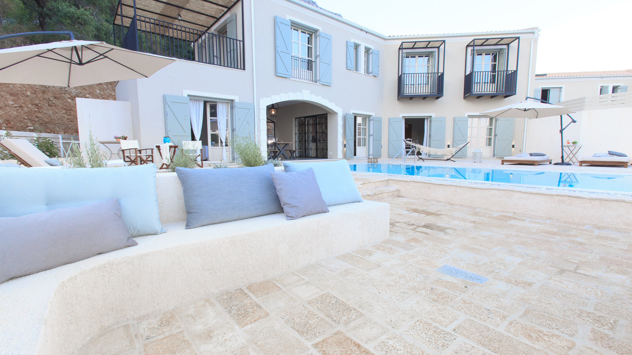 This tastefully designed villa accommodates up to 8 guests in the 4 bedrooms with en-suite bathrooms and the breathtaking sea views overlooking the Ionian Sea.