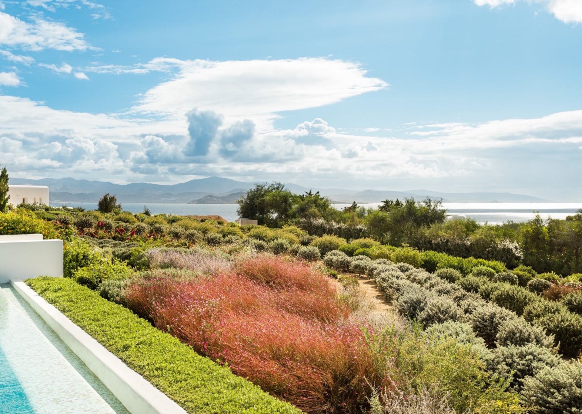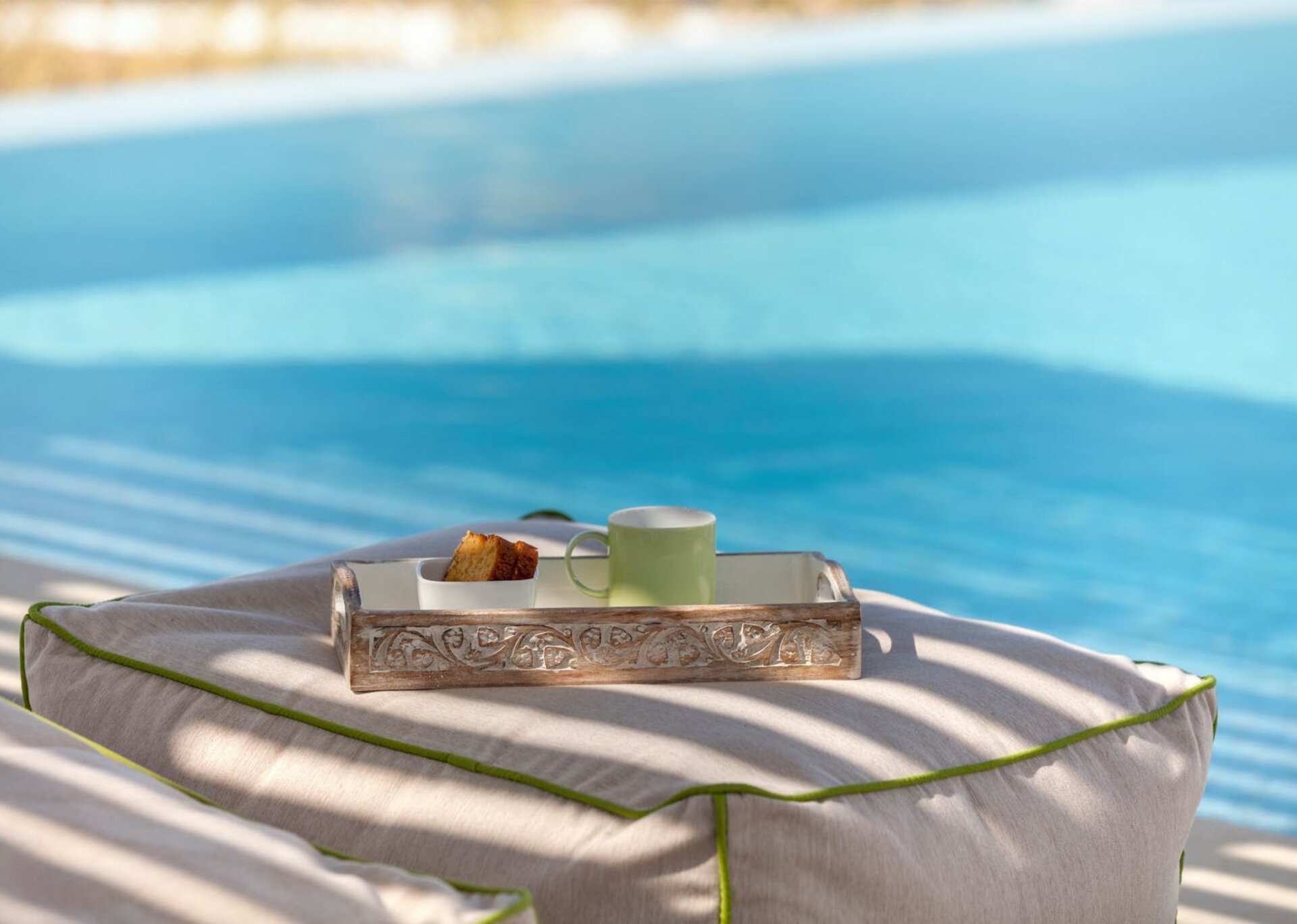 Take a few disconnected steps and immerse yourself in the large infinity pool while being encompassed by a beautiful Mediterranean garden that exudes a blend of vitality and peace. The infinity pool offers an ideal and peaceful spot for floating through the warm sunshine and sipping on cocktails. Simply put, it's a paradise to be enjoyed.