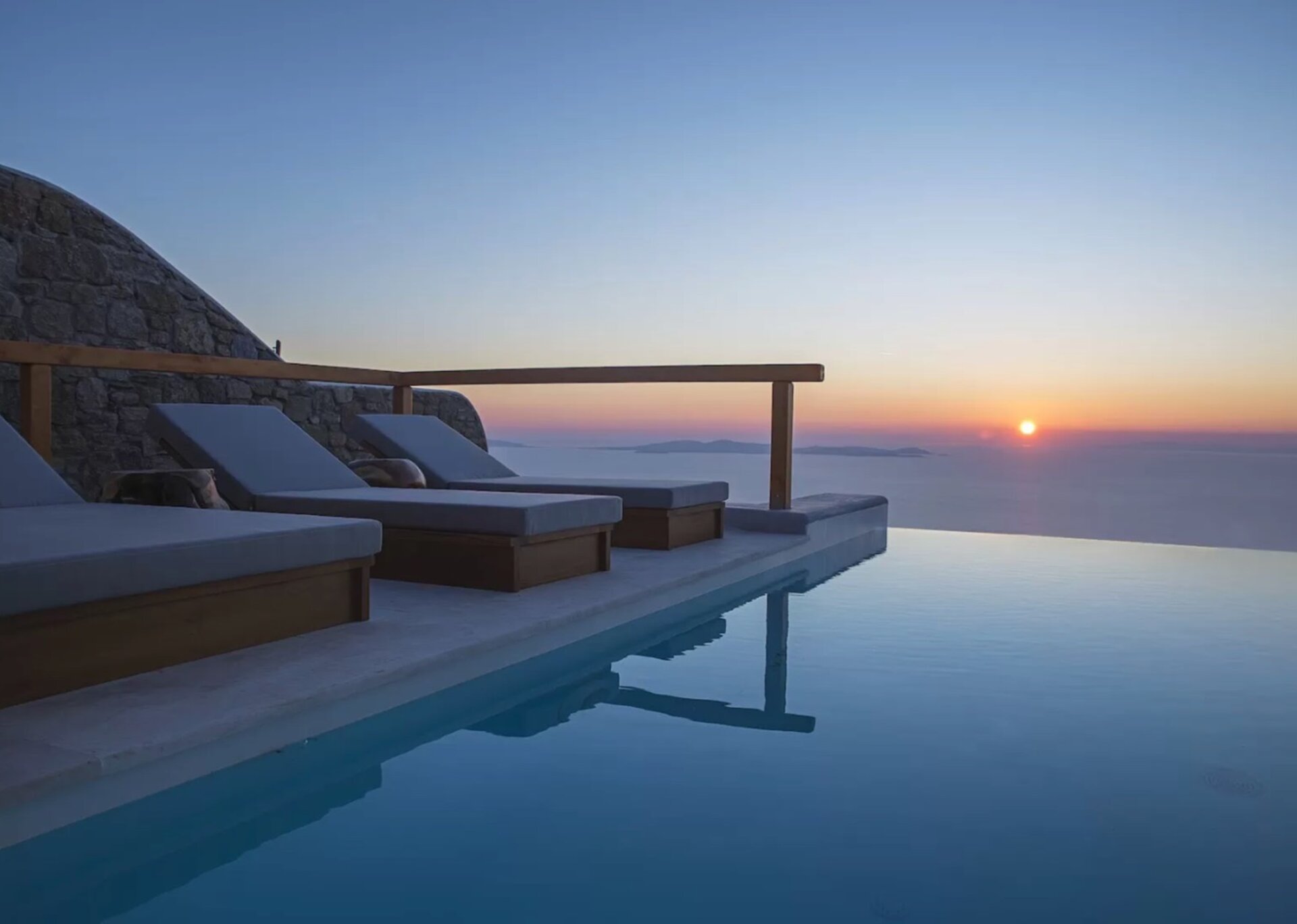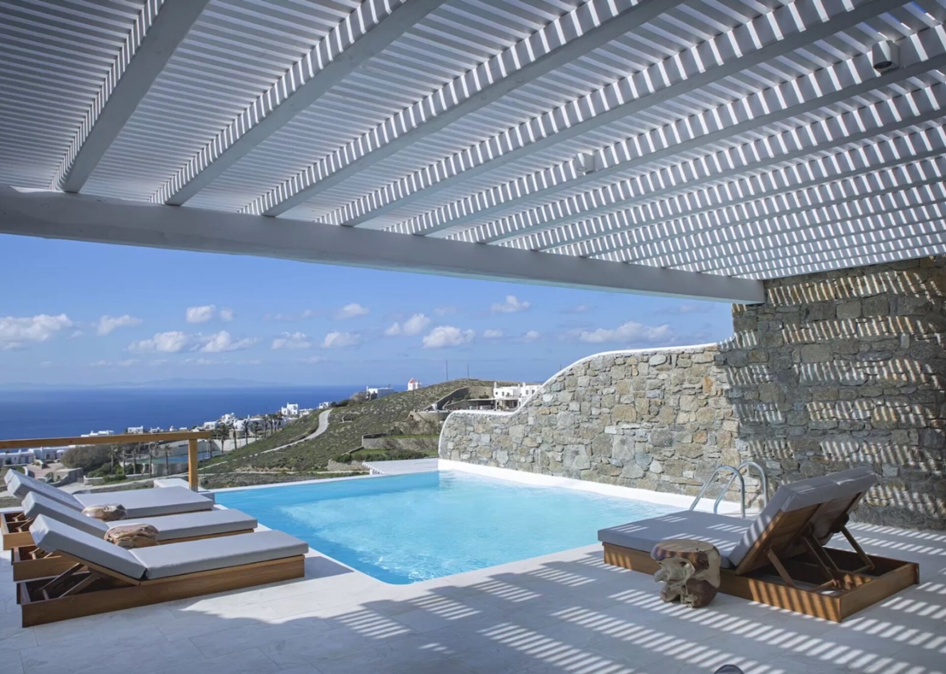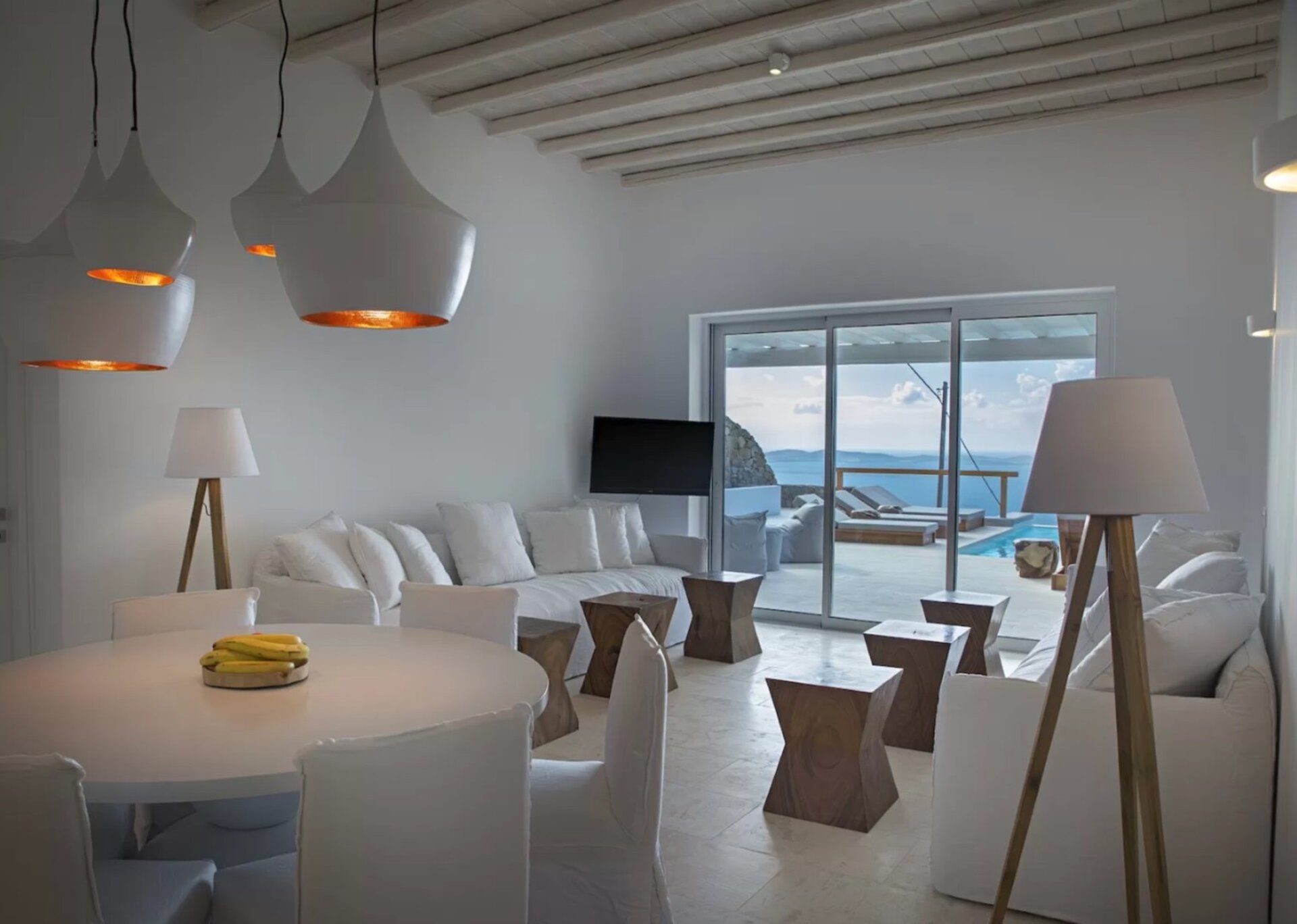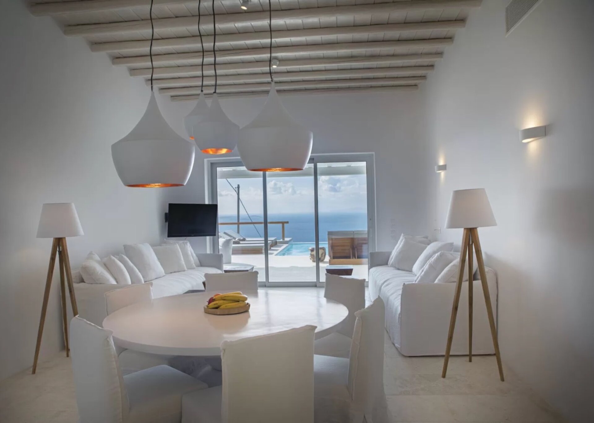 The Villa Amandine offers an ideal location for couples, families, or large groups who are looking for a luxurious and elegant vacation rental on the stunning island of Mykonos.