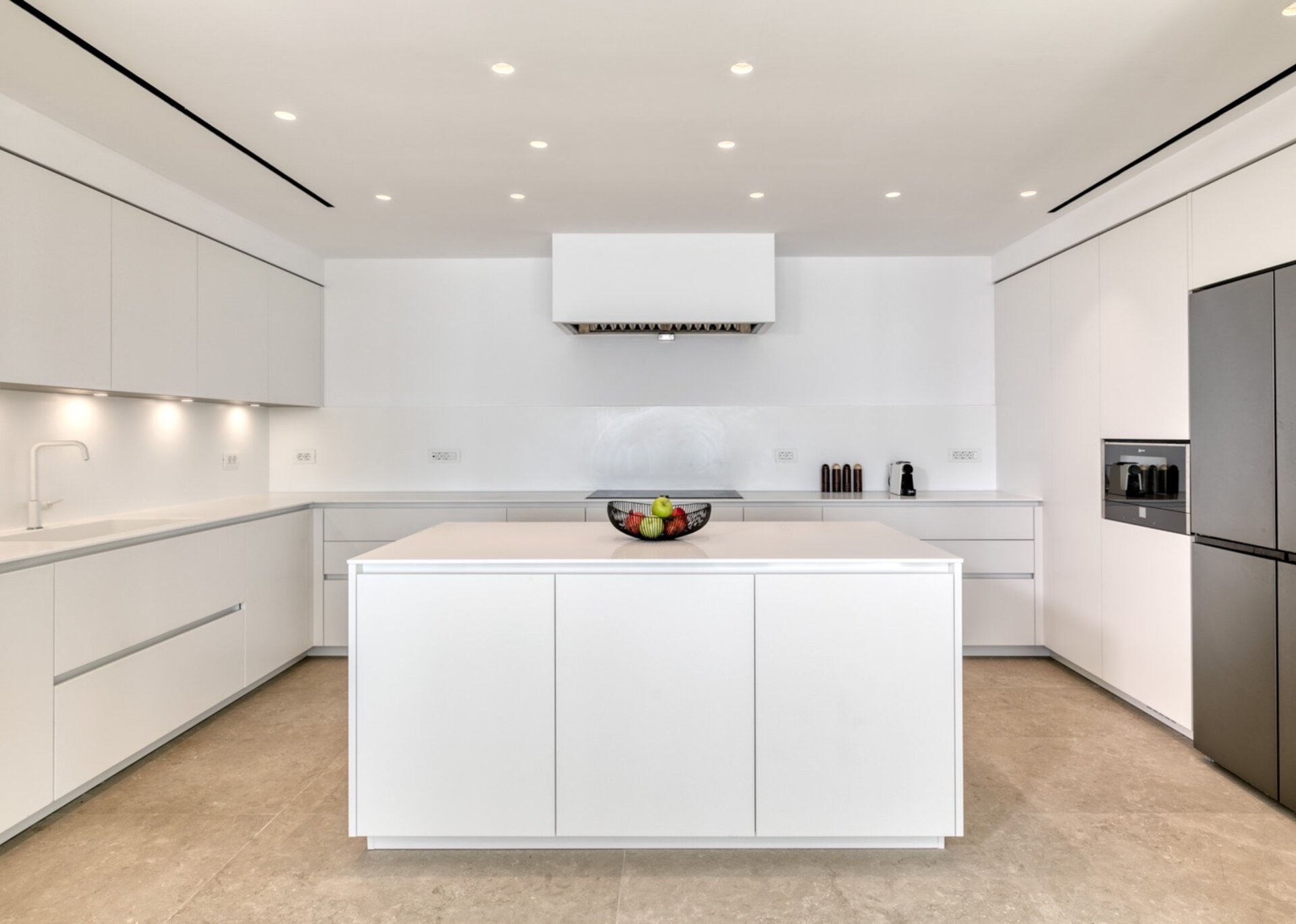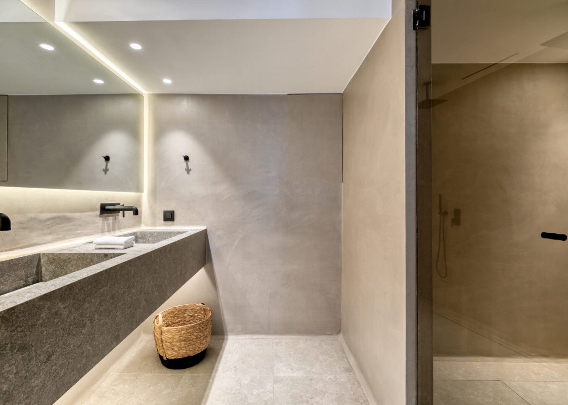 The inner area of the property is elegantly decorated and furnished with high end luxury pieces. The mood is sumptuous. There are comfortable sofas in the living room with flat screen smart TV to relax, a fully equipped kitchen and indoor dining spot to enjoy a meal with your guests. Furthermore, fitness equipment is available (dumbbells, slam ball, fitness mat, balance board, latex band,resistance bands, AB mat).