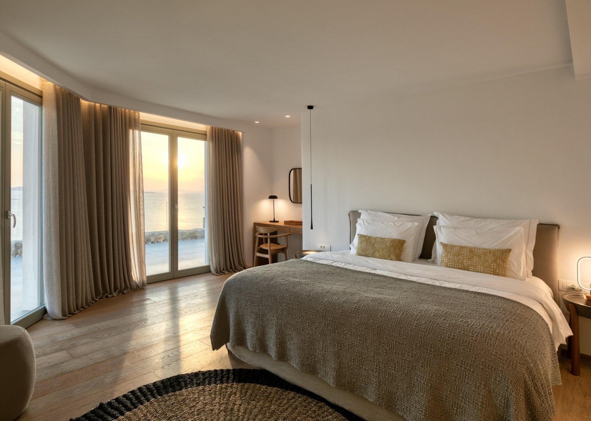1 bedroom with king size bed, A/C, en-suite bathroom with shower, closet, hairdryer, safe box, access to balcony, sea view