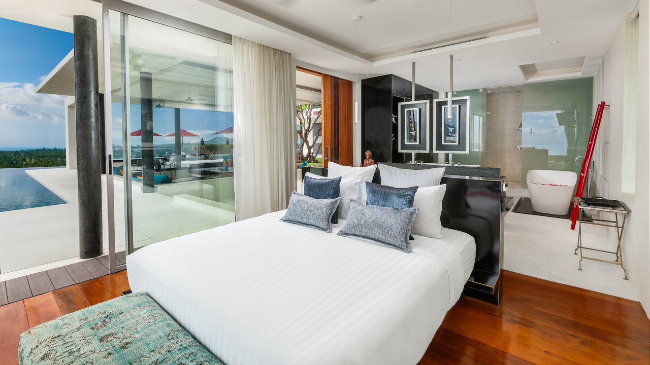 One of the villa’s highlights is its infinity pool that offers spectacular views of the beaches below. The poolside terrace is also furnished with a plush day bed, which guests can sunbathe on or read a book. The villa also boasts an outdoor, uncover lounge, which is the perfect space for guests to congregate and relax together. No matter where guests choose to relax, they can also take advantage of the villa’s complimentary WiFi.
