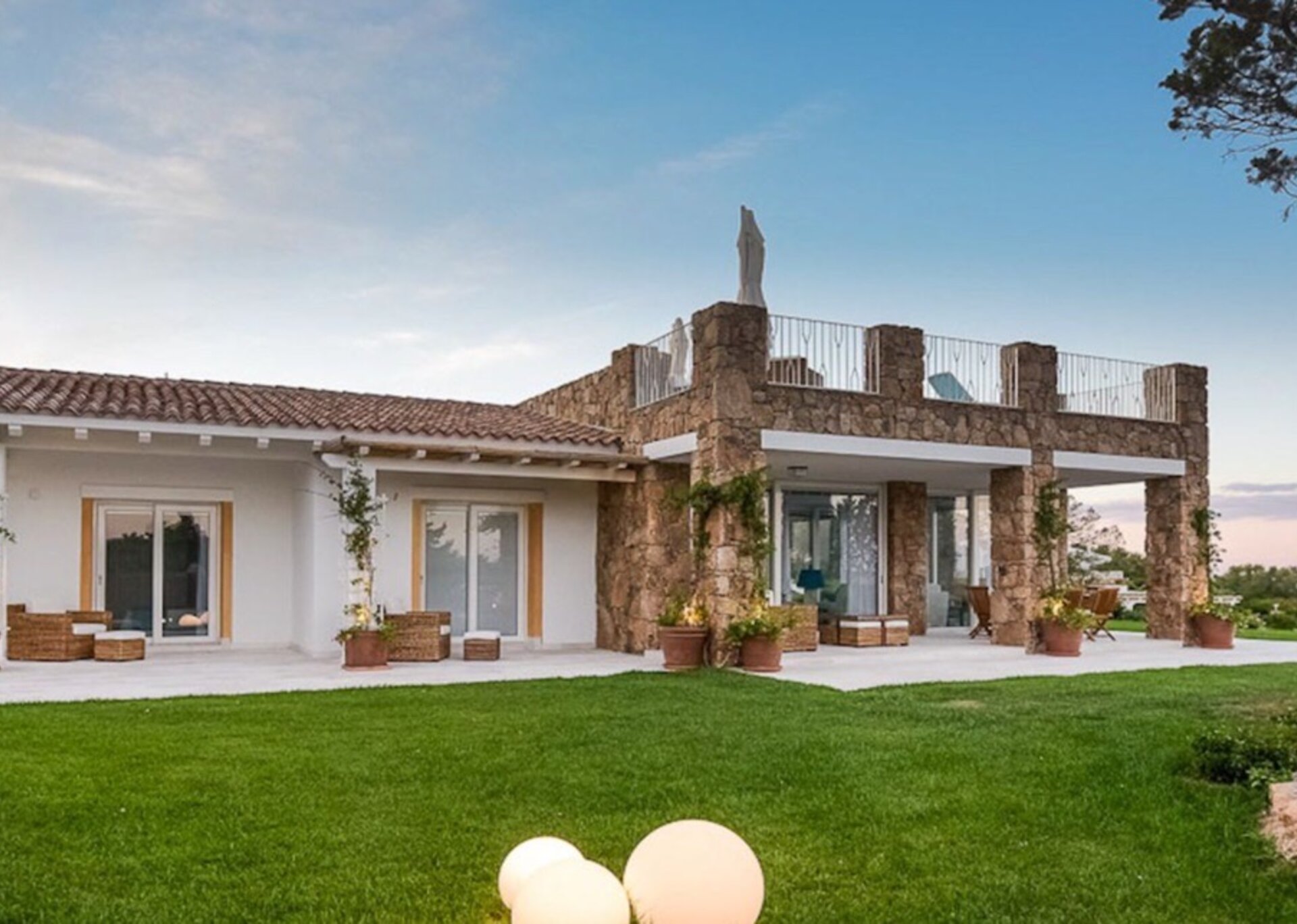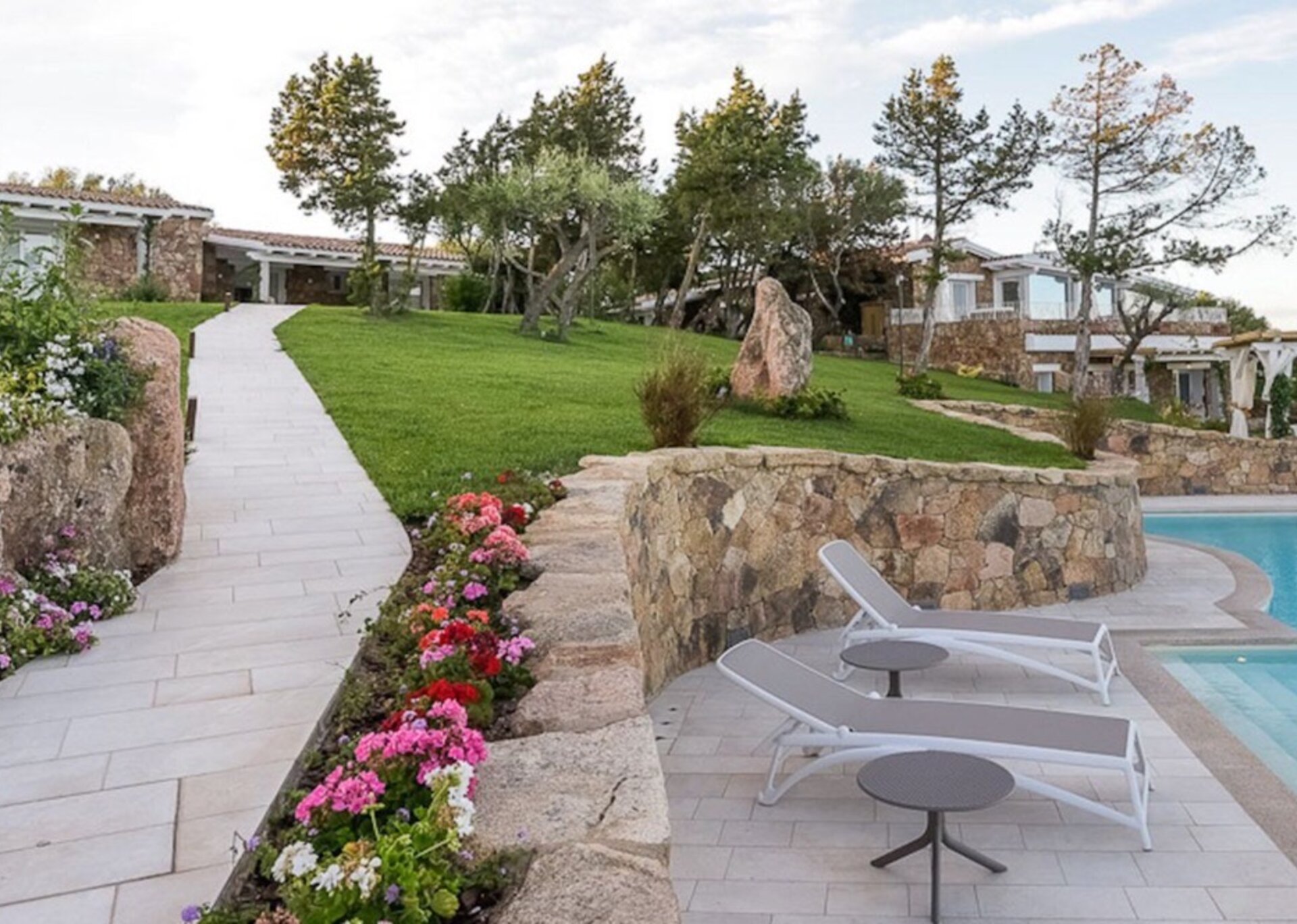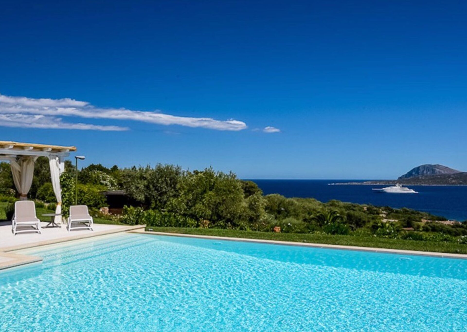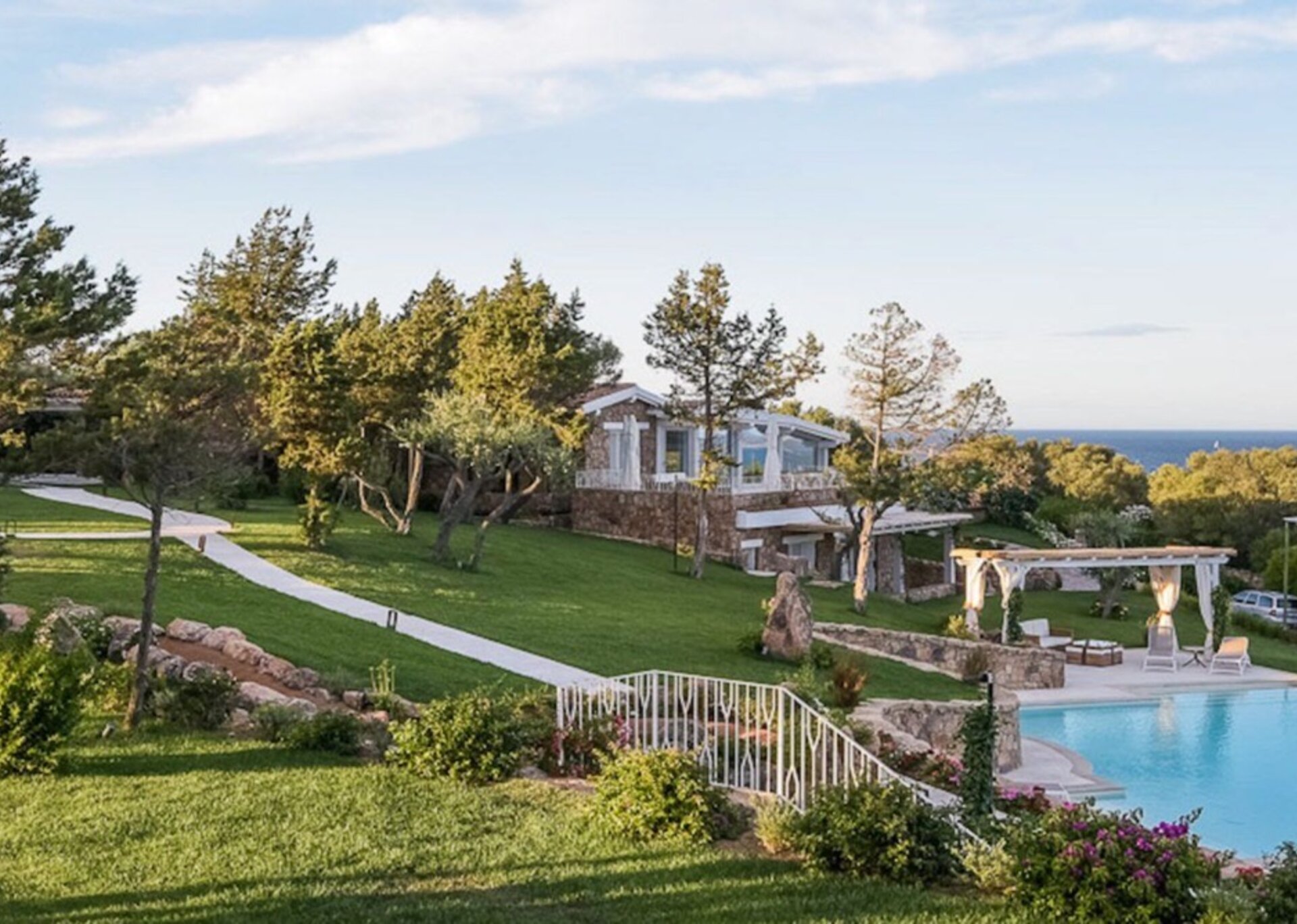 Villa Anna is located in the exclusive resort of Punta Lada in Porto Rotondo, about 250 meters from the sea. The complex enjoys an elevated position that allows you to admire the beautiful view of the entire gulf promontory, and to mitigate the hot Sardinian summers thanks to the gentle breeze due to the height. The property lays on an area of about 6,000 sqm of beautifully planted park, which includes a large main villa, a secondary villa, an annexe, a swimming pool, two jacuzzis, terraces, patios and several relax areas. The renovation work only saw the use of high quality materials, with the aim of achieving a luxurious Mediterranean property. The project has deliberately privileged independence and privacy as a primary concept, which is easily reflected by the total autonomy enjoyed by not just every property body, but every single room.