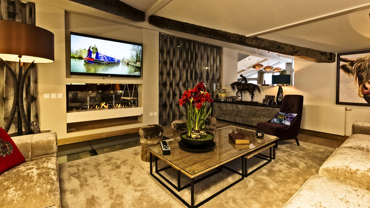 A fully equipped open plan kitchen adjoins the stunning dining area. The lounge has plenty of plush seating from which to relax in front of the gas fire, lit at a click of a button, or in front of the plasma TV screen.