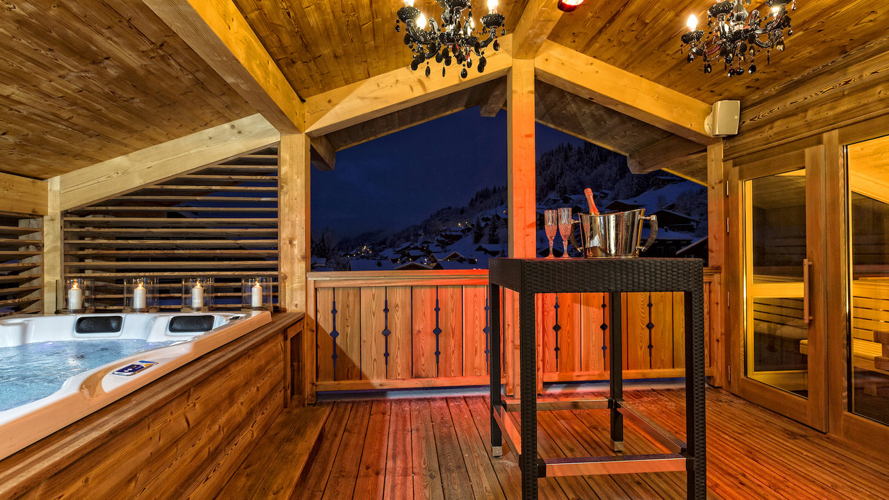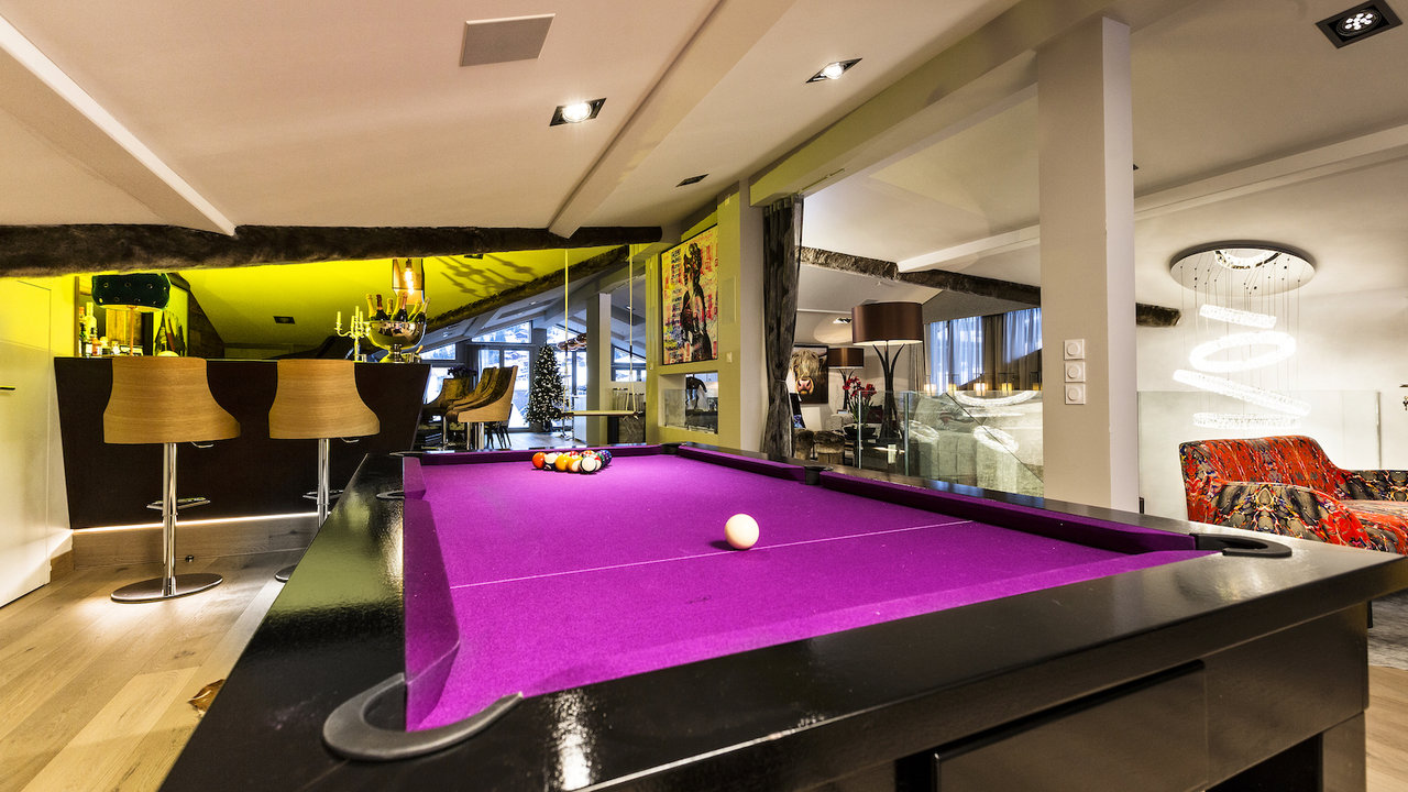 There is a superb large entertaining area with stocked bar, pool table, swing, grand piano and up-to-date music system, with drinks fridges that can be filled with your Après Ski favourites. To soothe and recharge tired limbs after a long day skiing the vast terrain of the Portes du Soleil, you have a sauna with a window looking onto the village and six-seater hot tub can be found on the large private balcony.