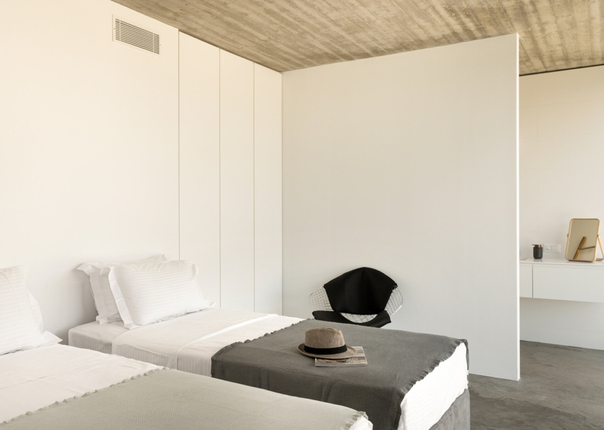 * Bedroom with 2 single beds 90x200 and en suite bathroom with shower. No windows/no view.