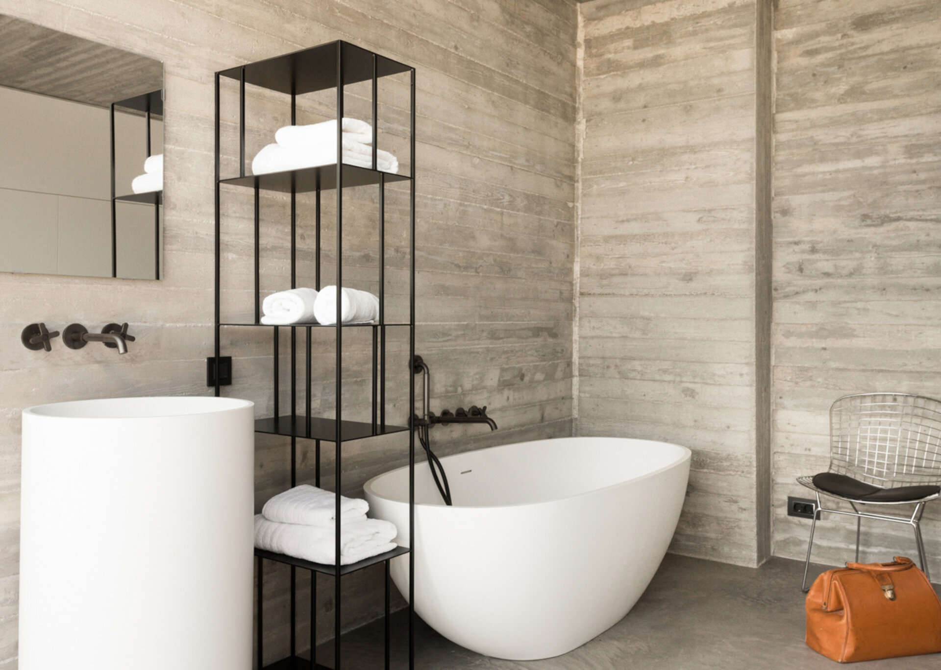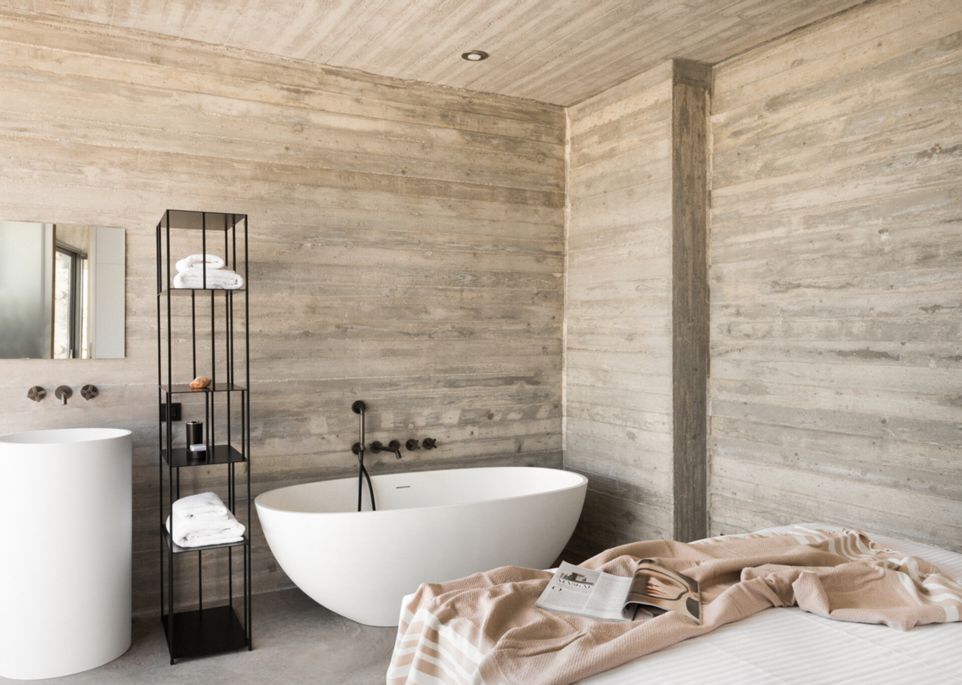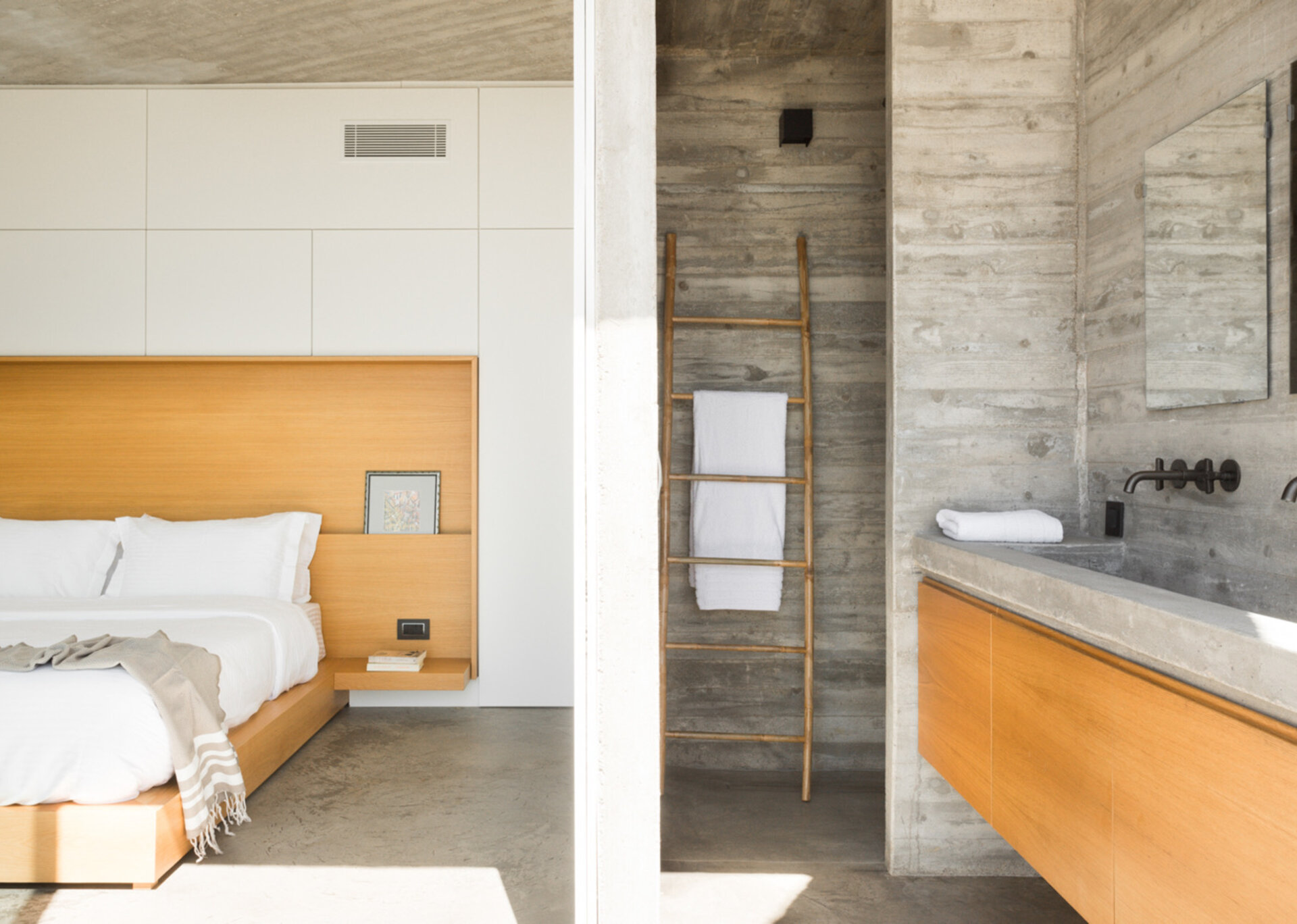 This contemporary villa showcases an open-concept layout with three bedrooms on the main level. The master suite features sweeping ocean vistas, a queen-sized bed, and a generous balcony. The en suite bathroom comprises a walk-in shower, vanity, and a closet with ample storage. The additional bedrooms provide comfort and versatility, with one room boasting a queen-sized bed and a bathtub, and the other offering twin beds that can convert into a king, both overlooking the gardens. Each bedroom is equipped with blackout curtains for uninterrupted sleep.