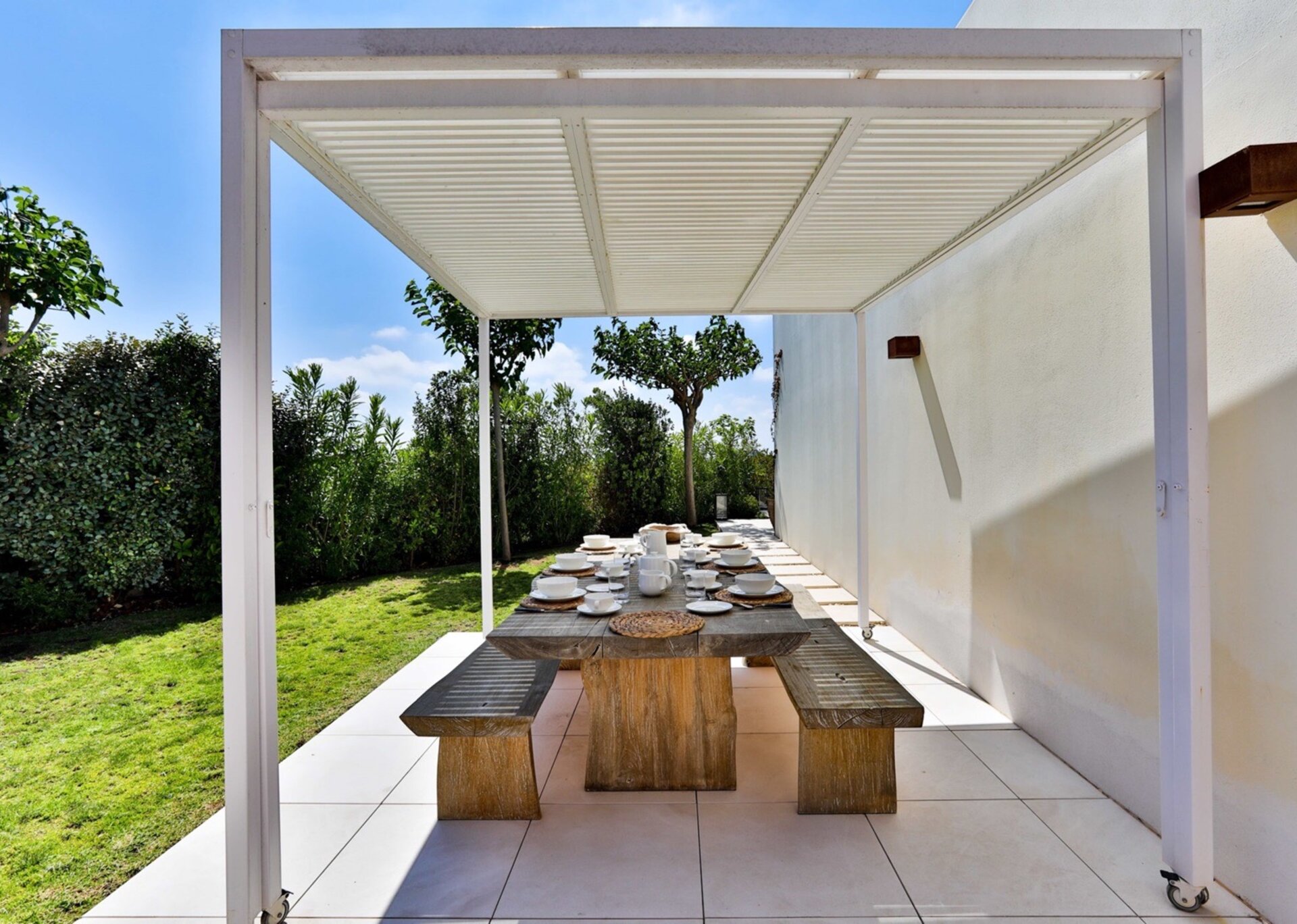 Meticulously designed for utmost comfort and security, Villa Argana features 24-hour surveillance and a bespoke concierge service. The villa's exterior showcases remarkable finishes and meticulously manicured gardens, the result of a sustainable landscape project by the esteemed designer Felipe Durán. The combination of simplicity and beauty creates a harmonious oasis.