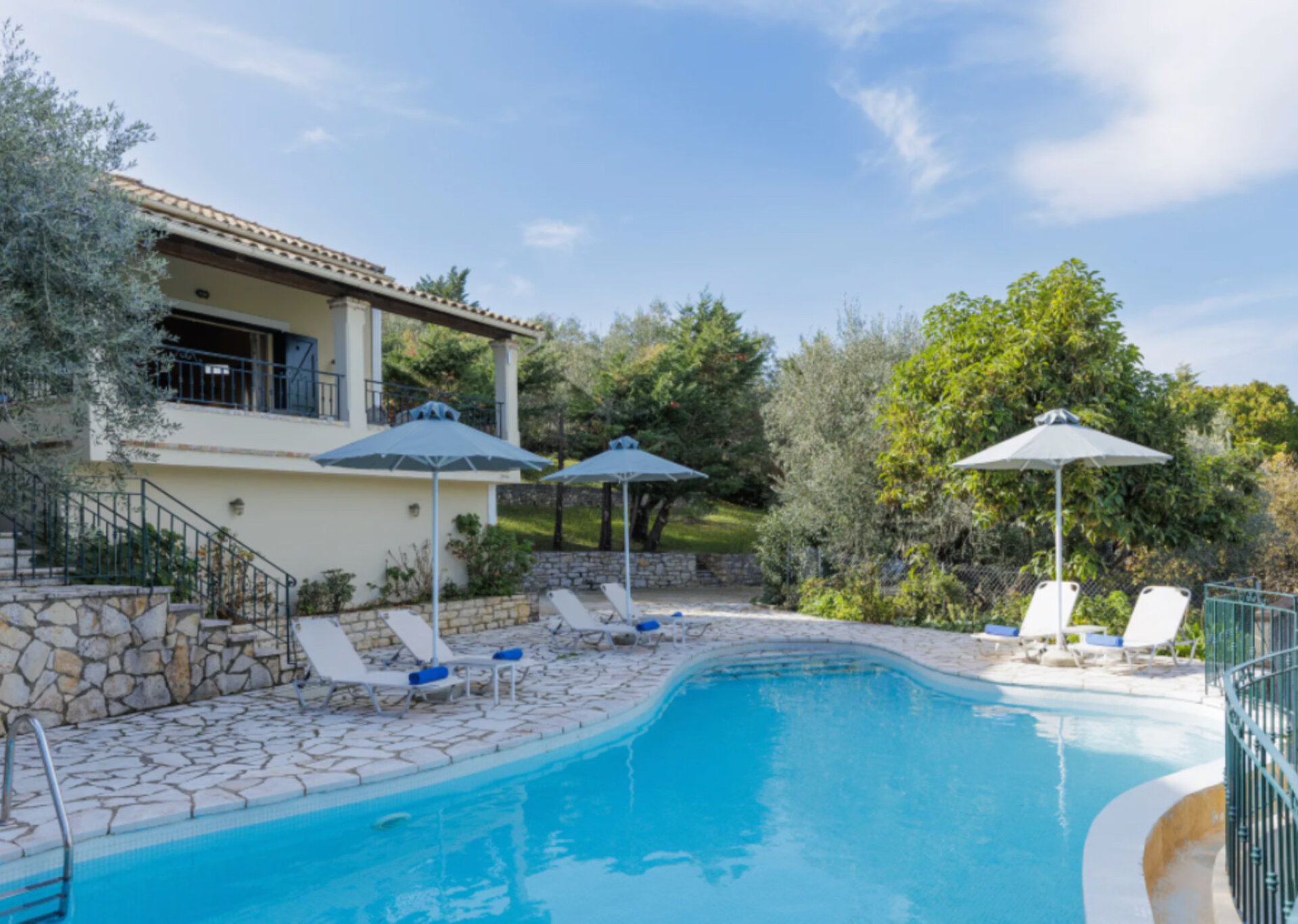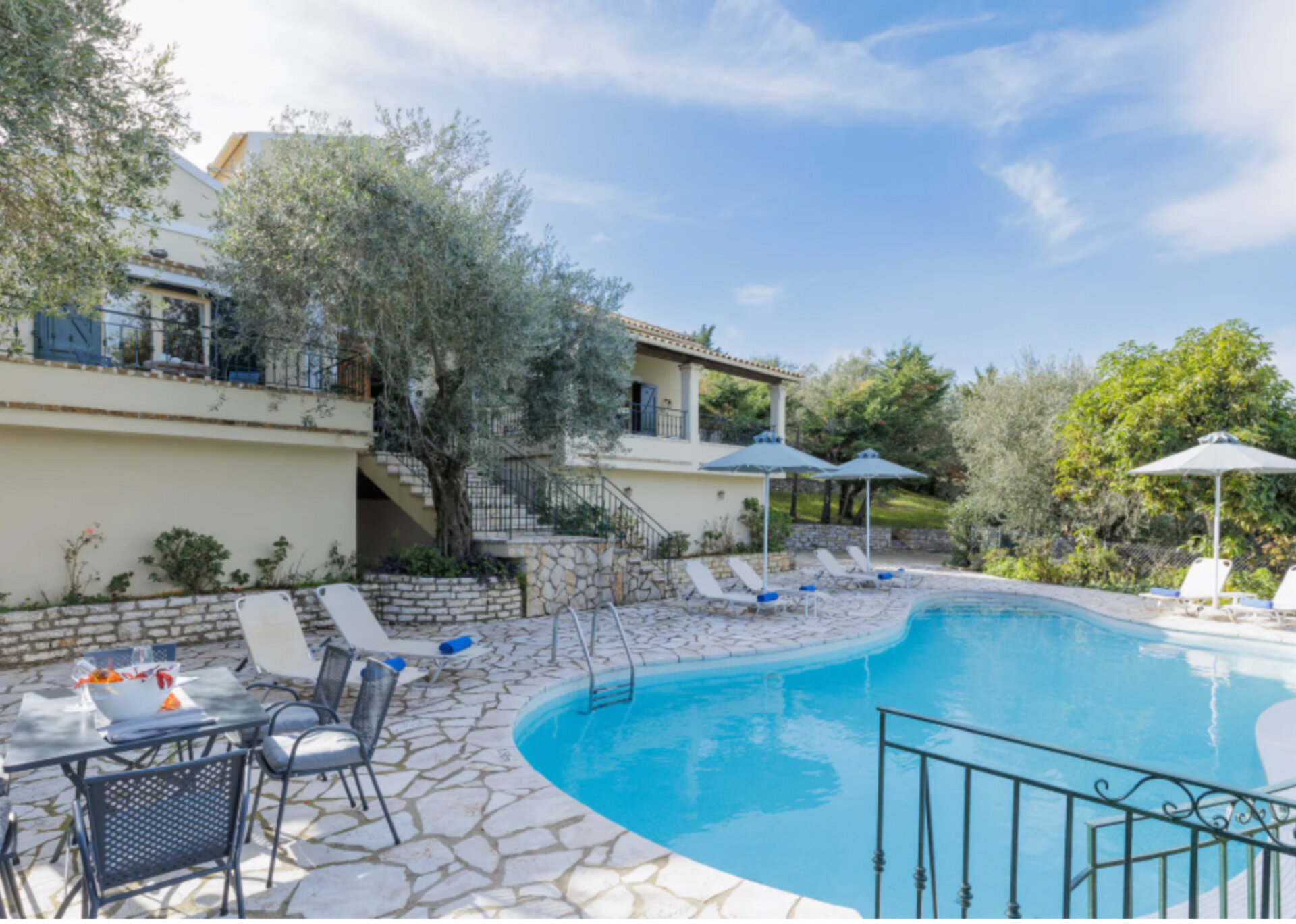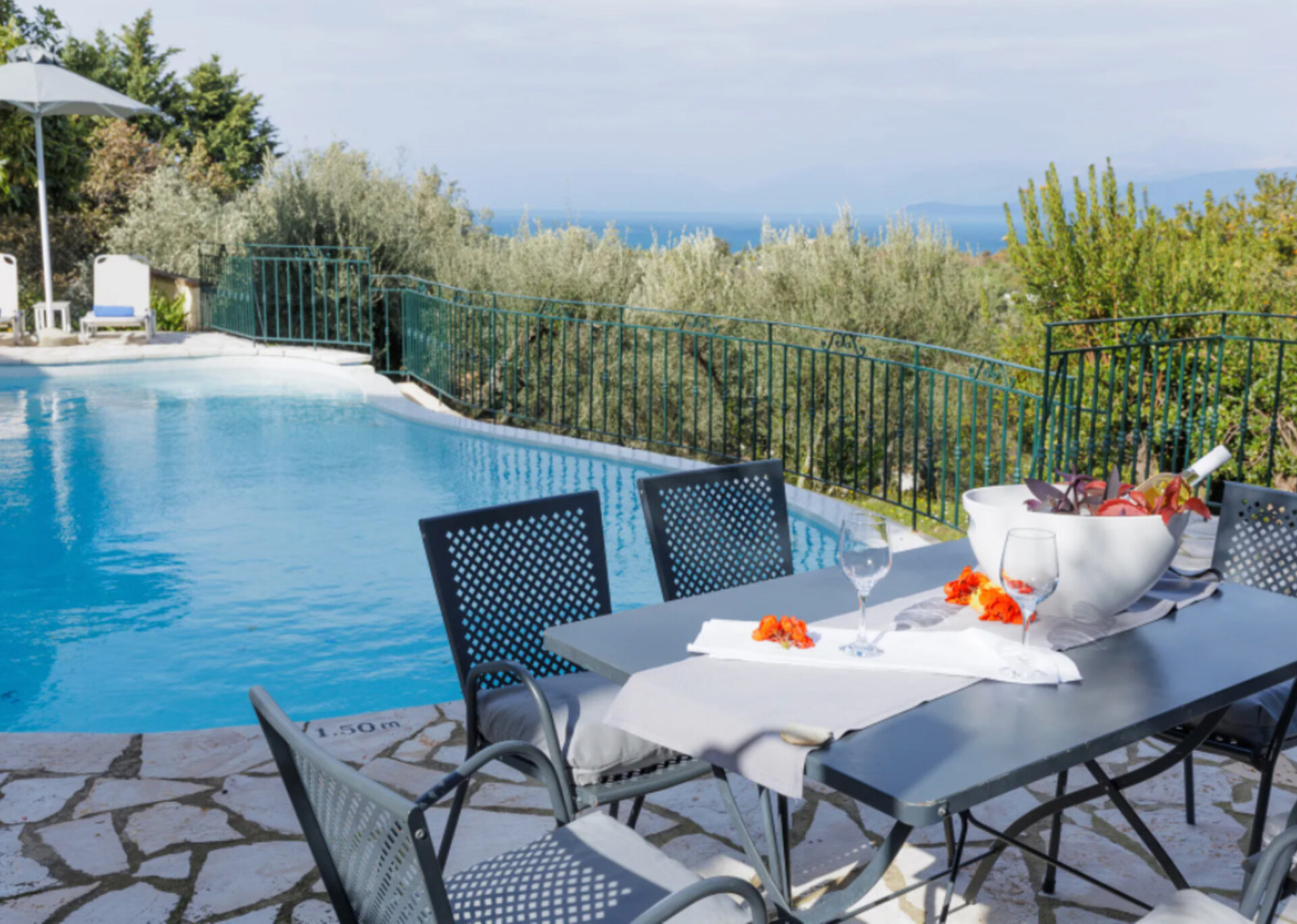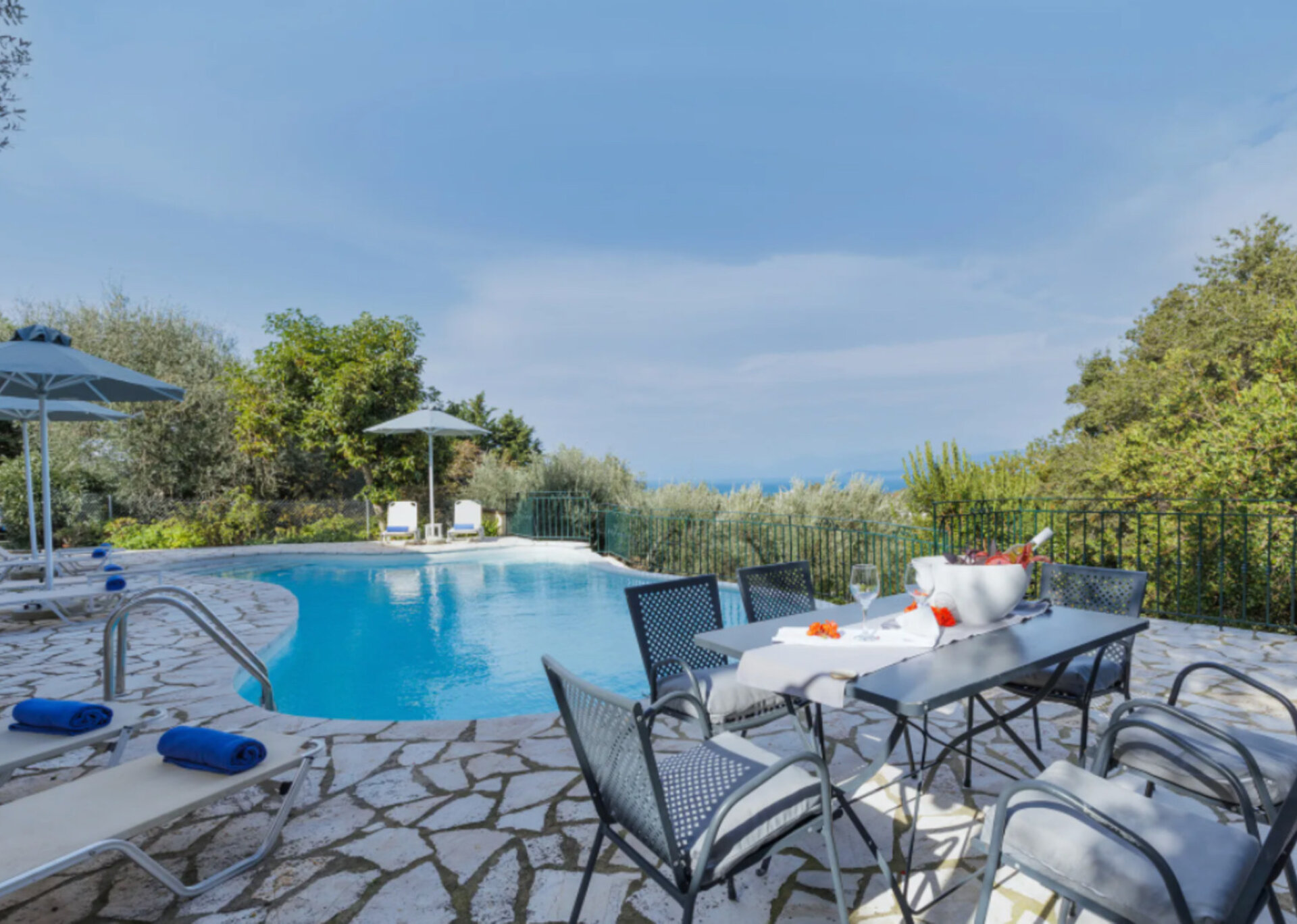 Villa Ariella in Corfu is nestled in a tranquil and secluded spot, offering a serene escape above the picturesque bay of Avlaki. With its elevated position, Villa Ariella boasts breathtaking panoramic views of the lush olive groves and rolling hillside that gently slope down to meet the sparkling sea. Just a short drive away, guests can easily access the sandy beach, where charming Greek tavernas await, providing a delightful dining experience with stunning vistas of the expansive open water.