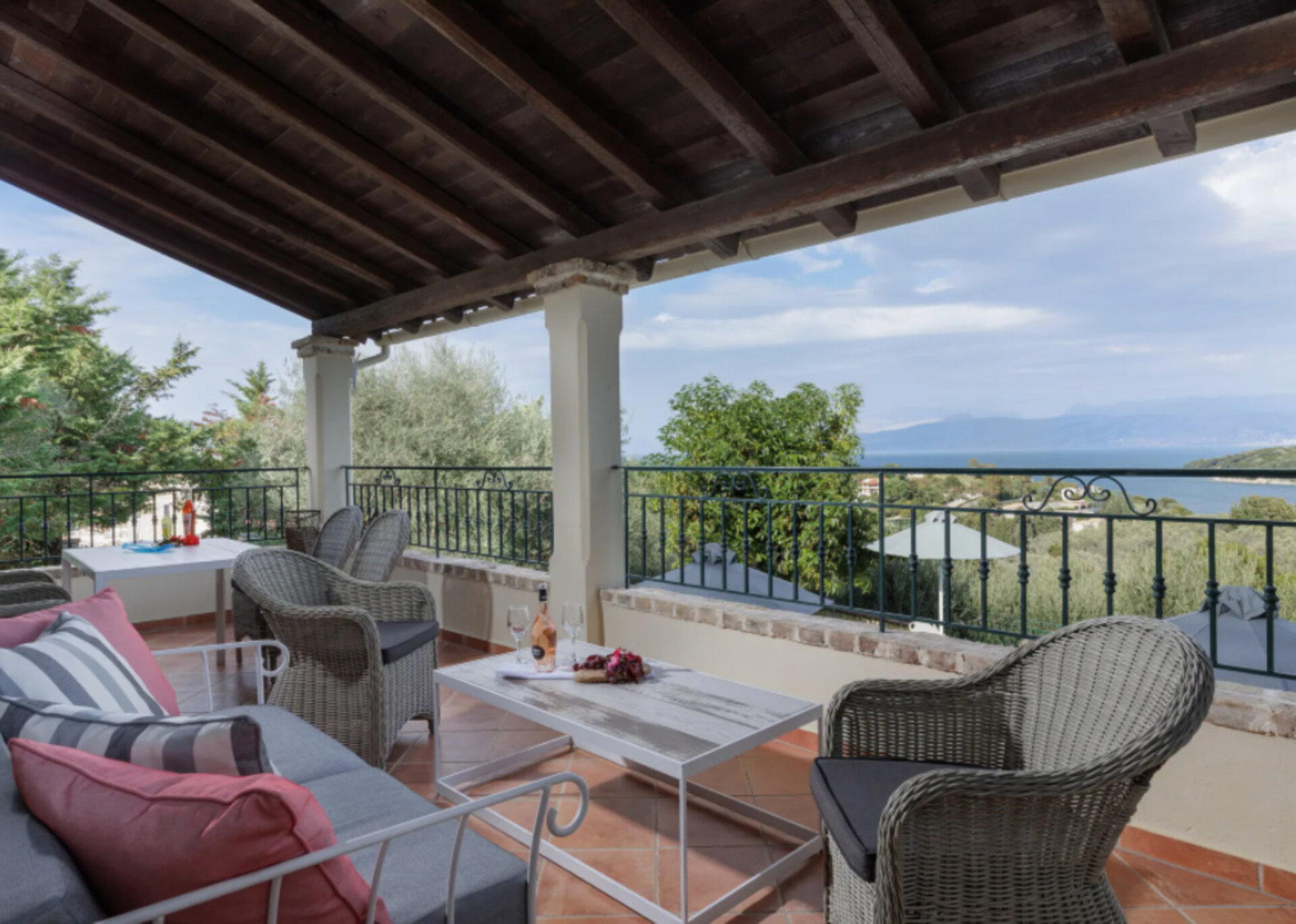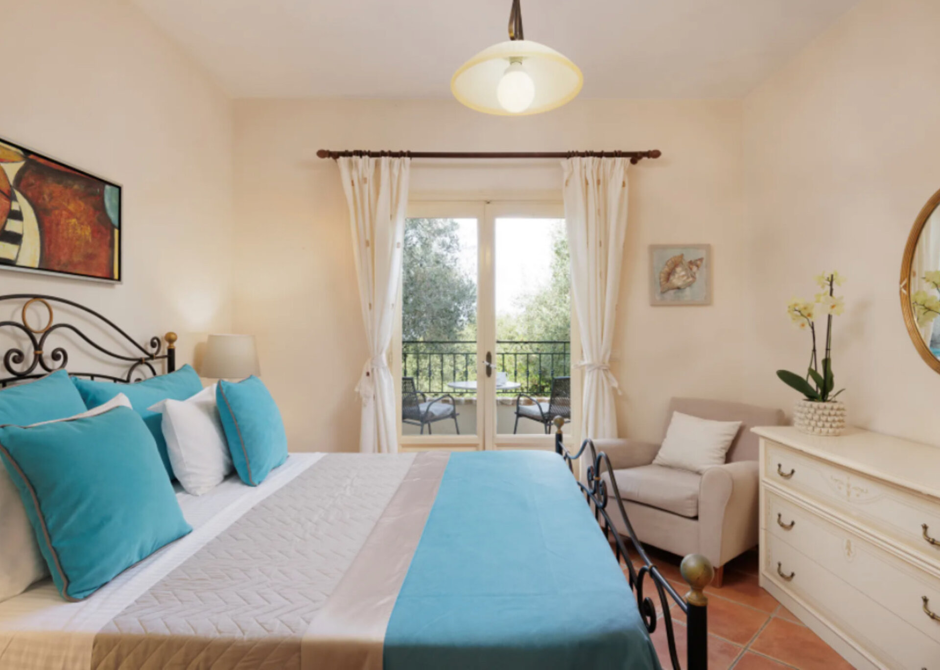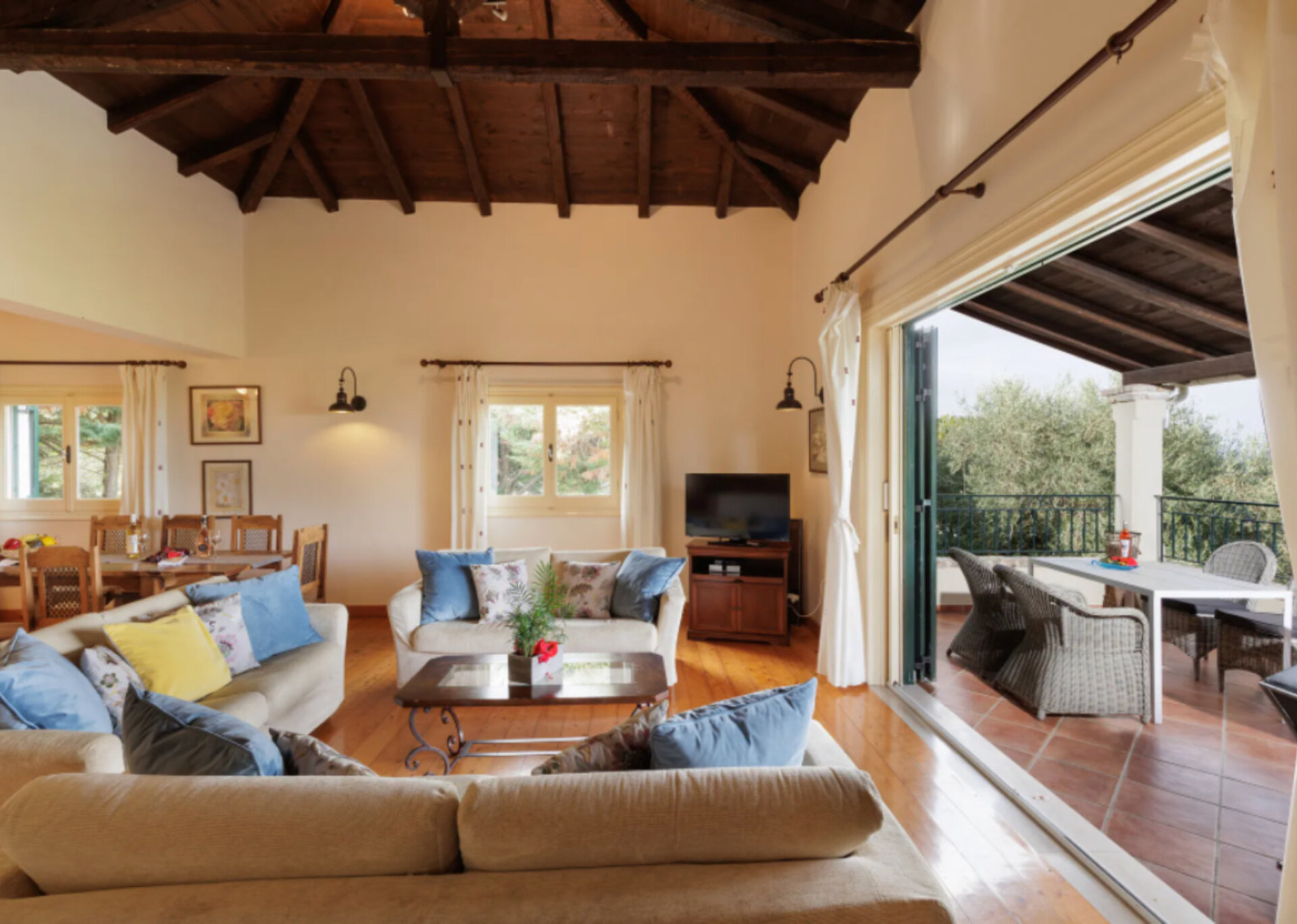 Villa Ariella in Corfu is nestled in a tranquil and secluded spot, offering a serene escape above the picturesque bay of Avlaki. With its elevated position, Villa Ariella boasts breathtaking panoramic views of the lush olive groves and rolling hillside that gently slope down to meet the sparkling sea. Just a short drive away, guests can easily access the sandy beach, where charming Greek tavernas await, providing a delightful dining experience with stunning vistas of the expansive open water.