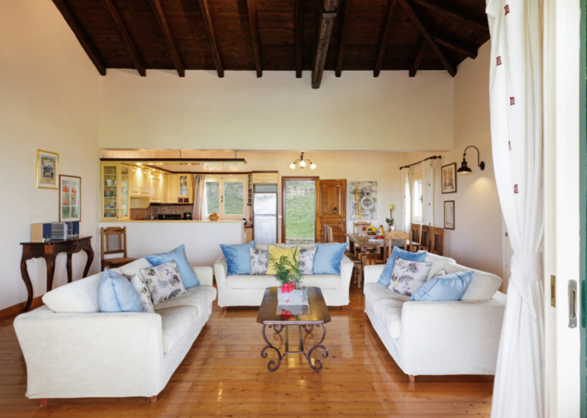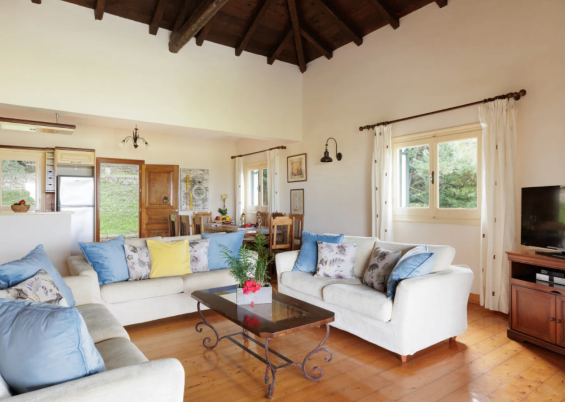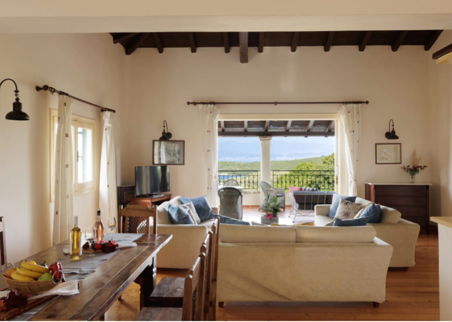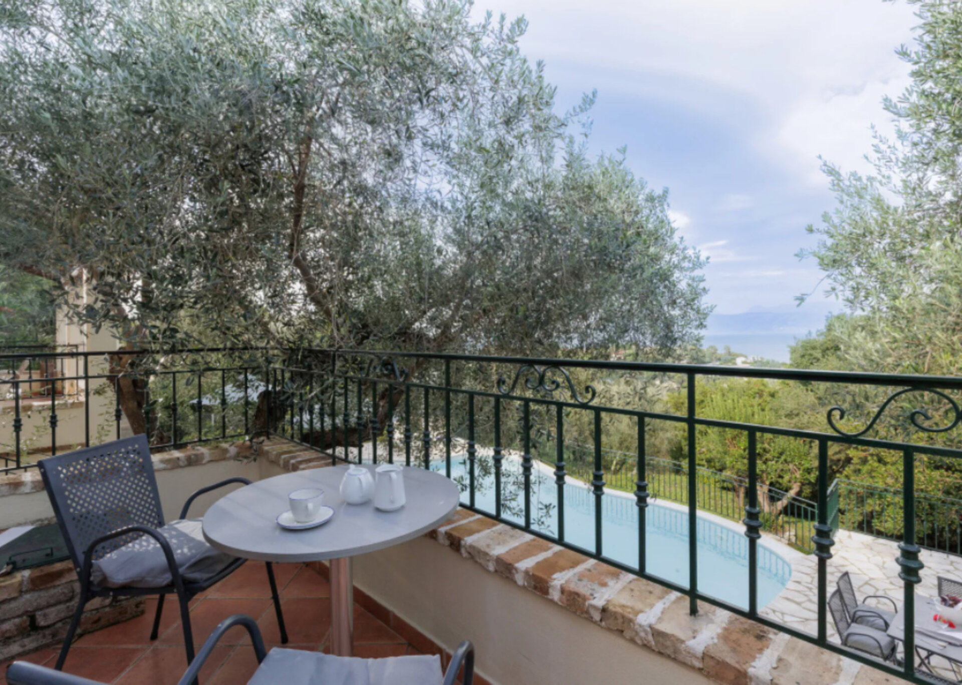 Villa Ariella in Corfu is nestled in a tranquil and secluded spot, offering a serene escape above the picturesque bay of Avlaki. With its elevated position, Villa Ariella boasts breathtaking panoramic views of the lush olive groves and rolling hillside that gently slope down to meet the sparkling sea. Just a short drive away, guests can easily access the sandy beach, where charming Greek tavernas await, providing a delightful dining experience with stunning vistas of the expansive open water.
