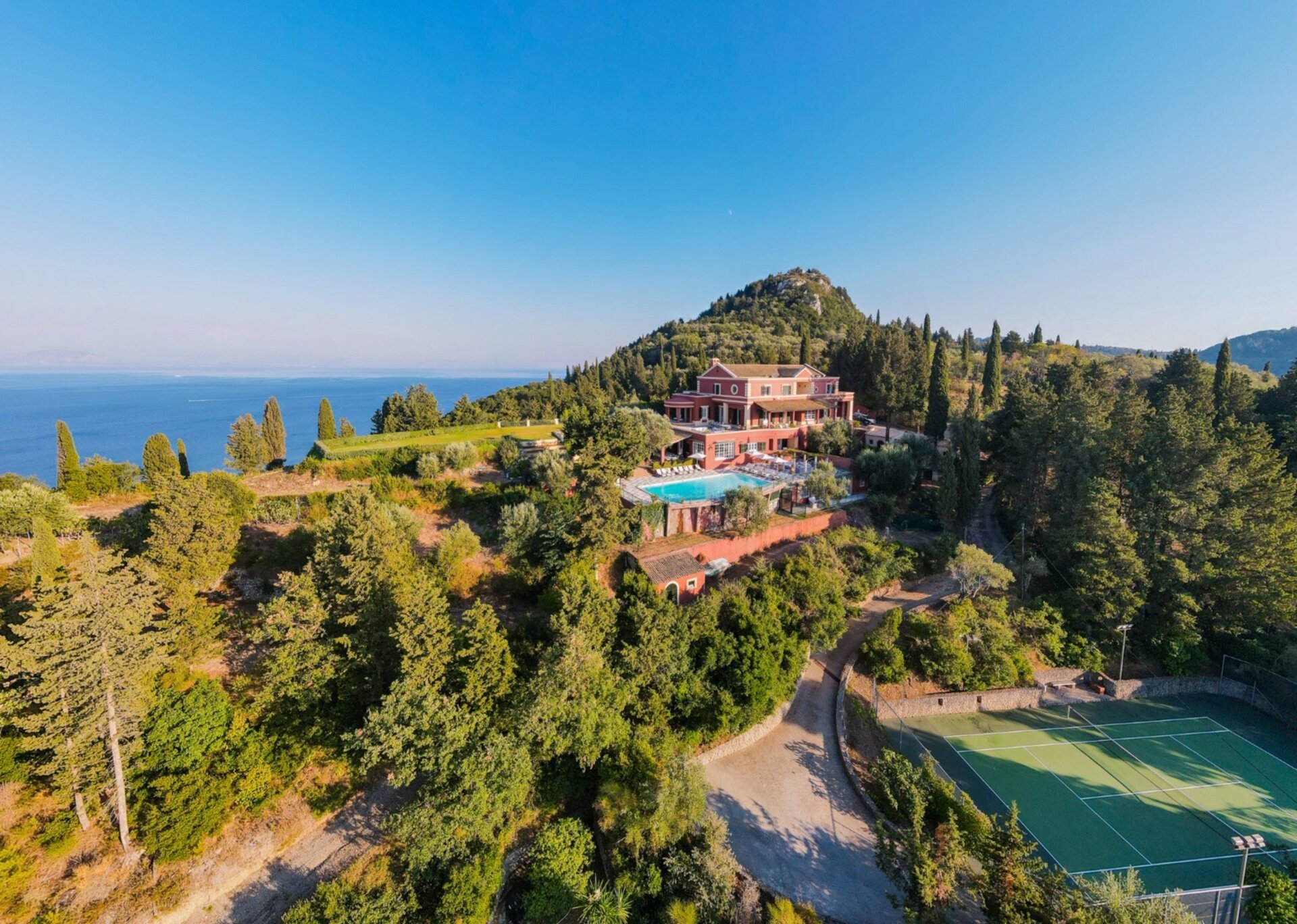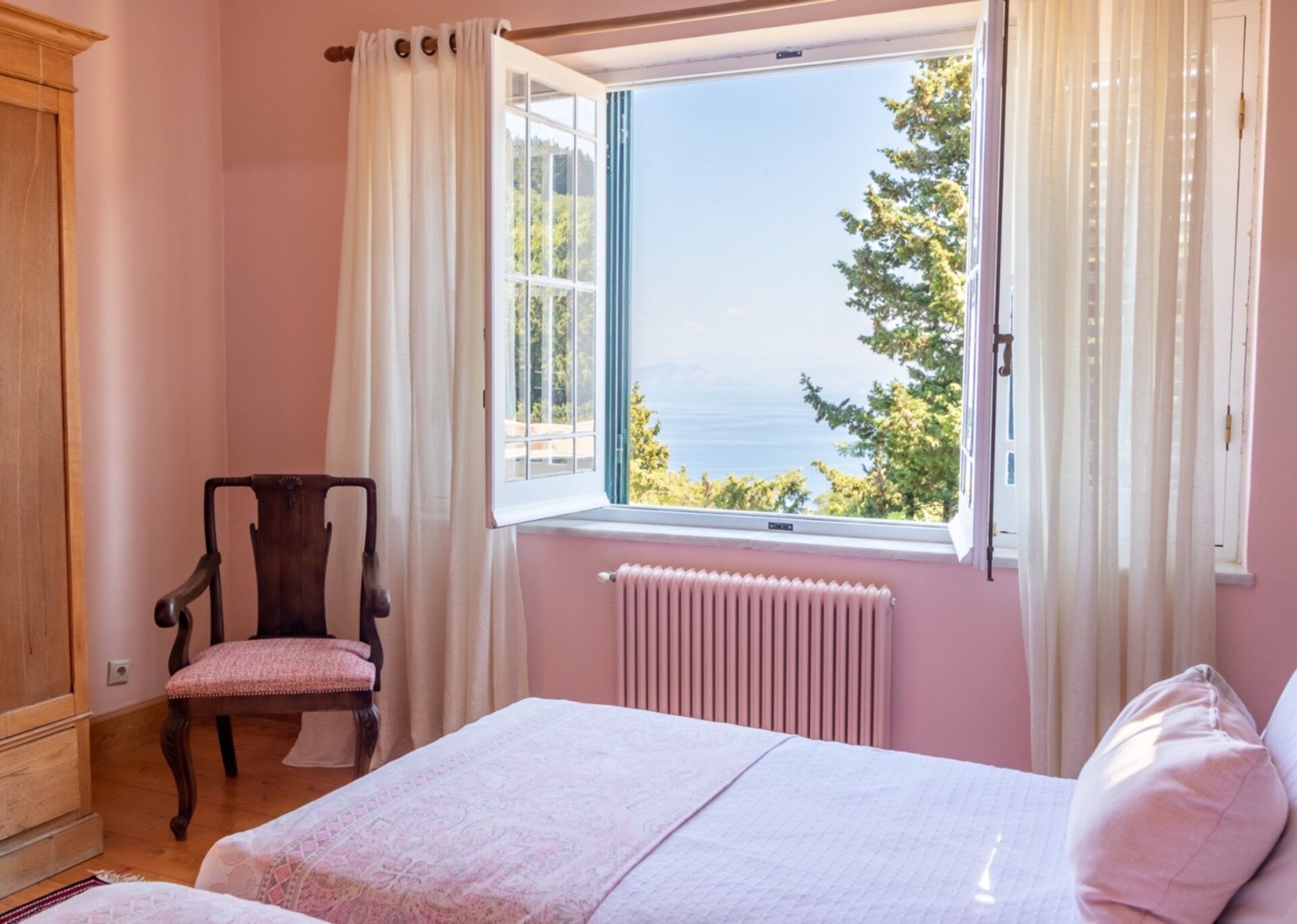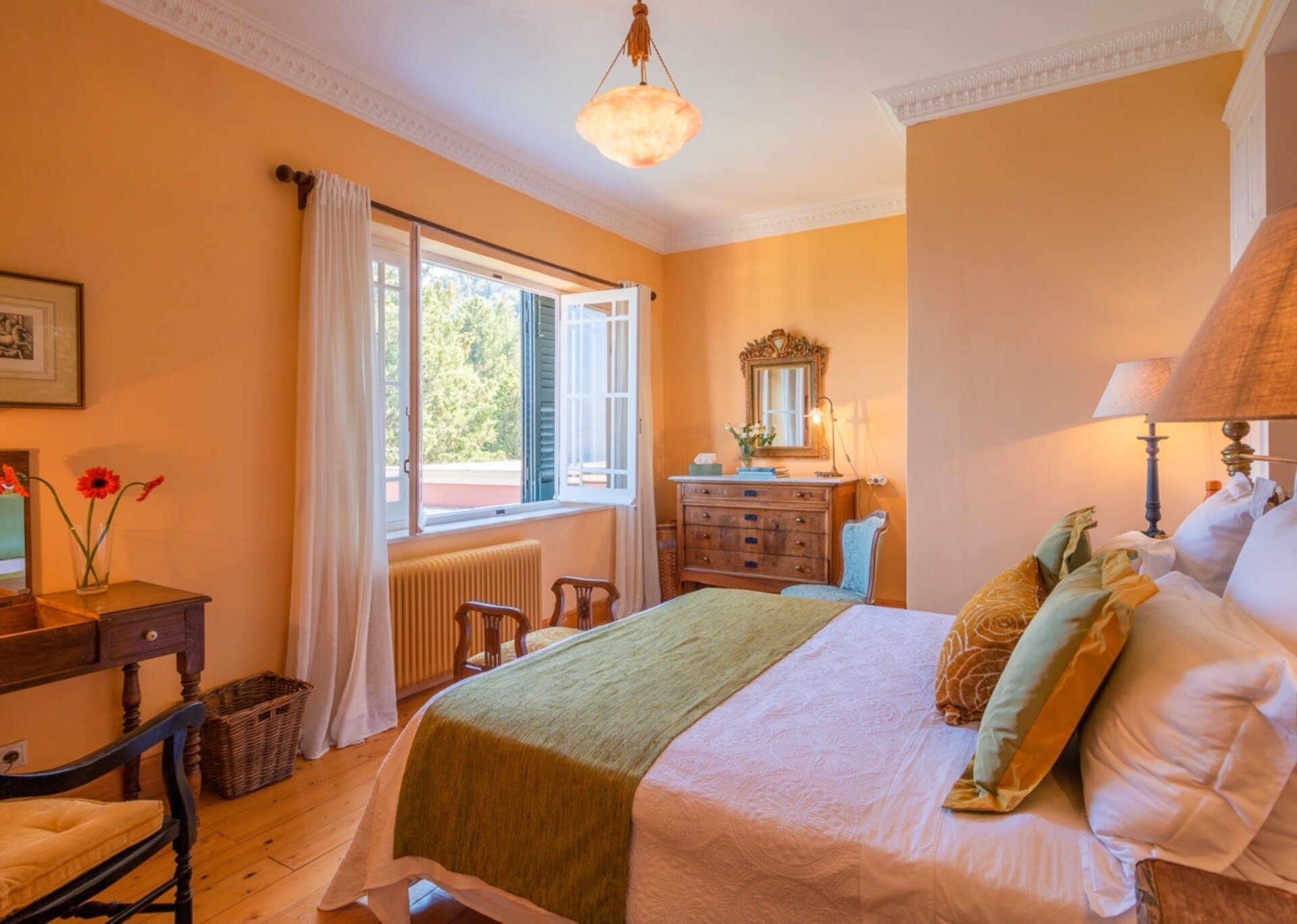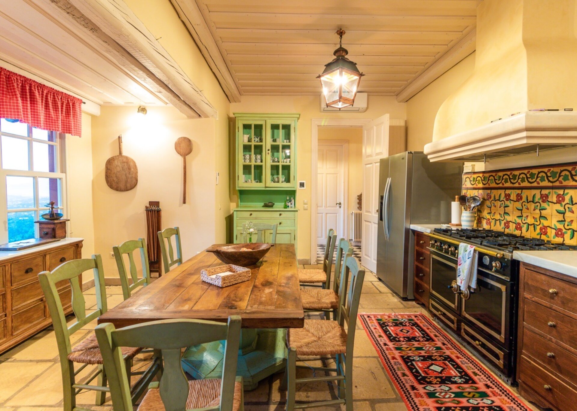 The guesthouse offers two additional ensuite double bedrooms, a sitting room with a kitchen area, and a private terrace with enchanting views of Gastouri and the surrounding countryside.