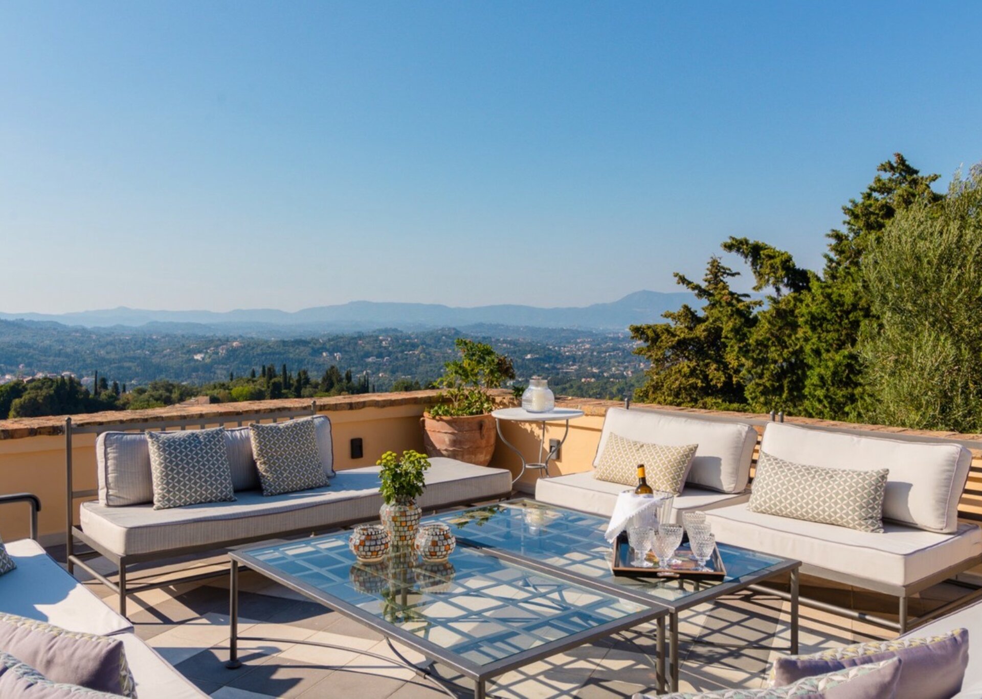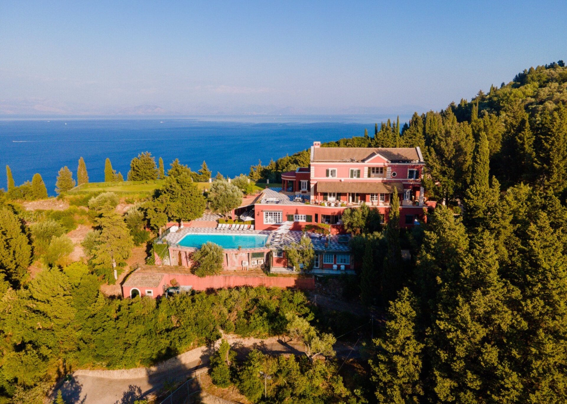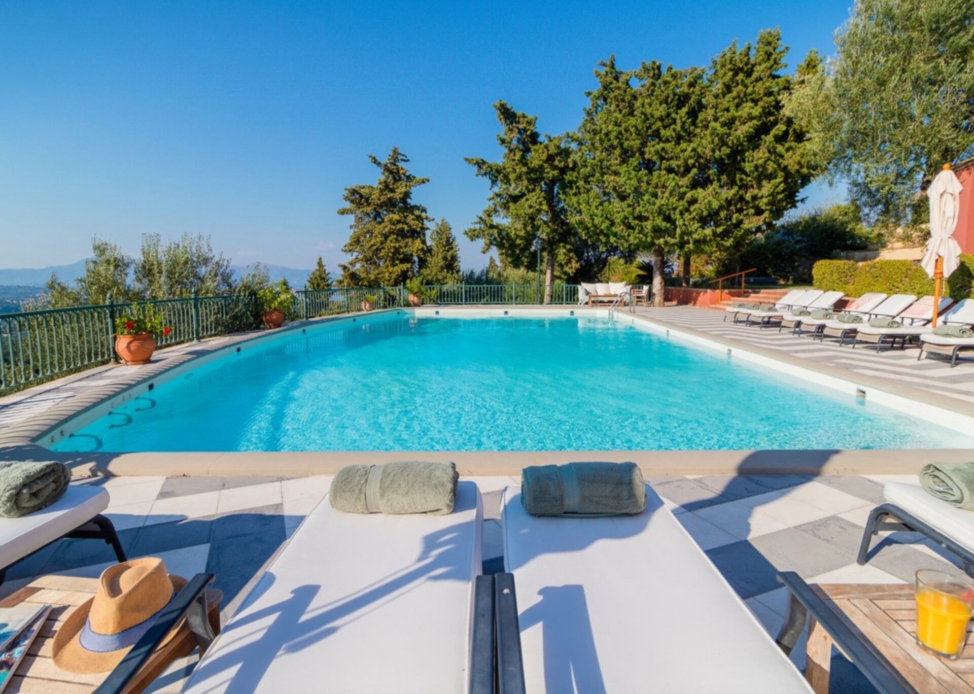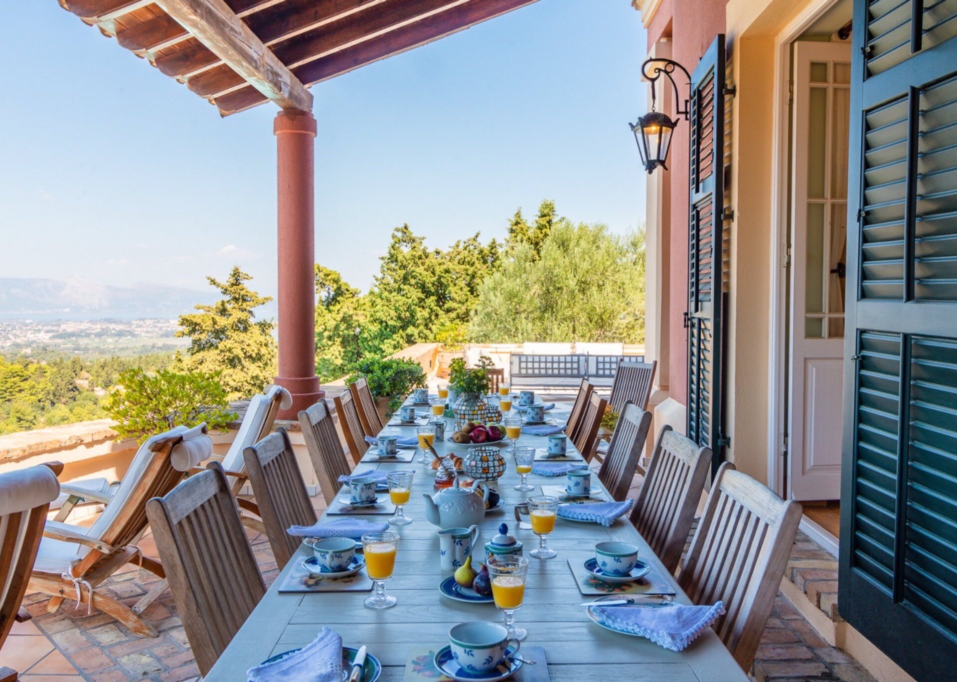 The guesthouse offers two additional ensuite double bedrooms, a sitting room with a kitchen area, and a private terrace with enchanting views of Gastouri and the surrounding countryside.