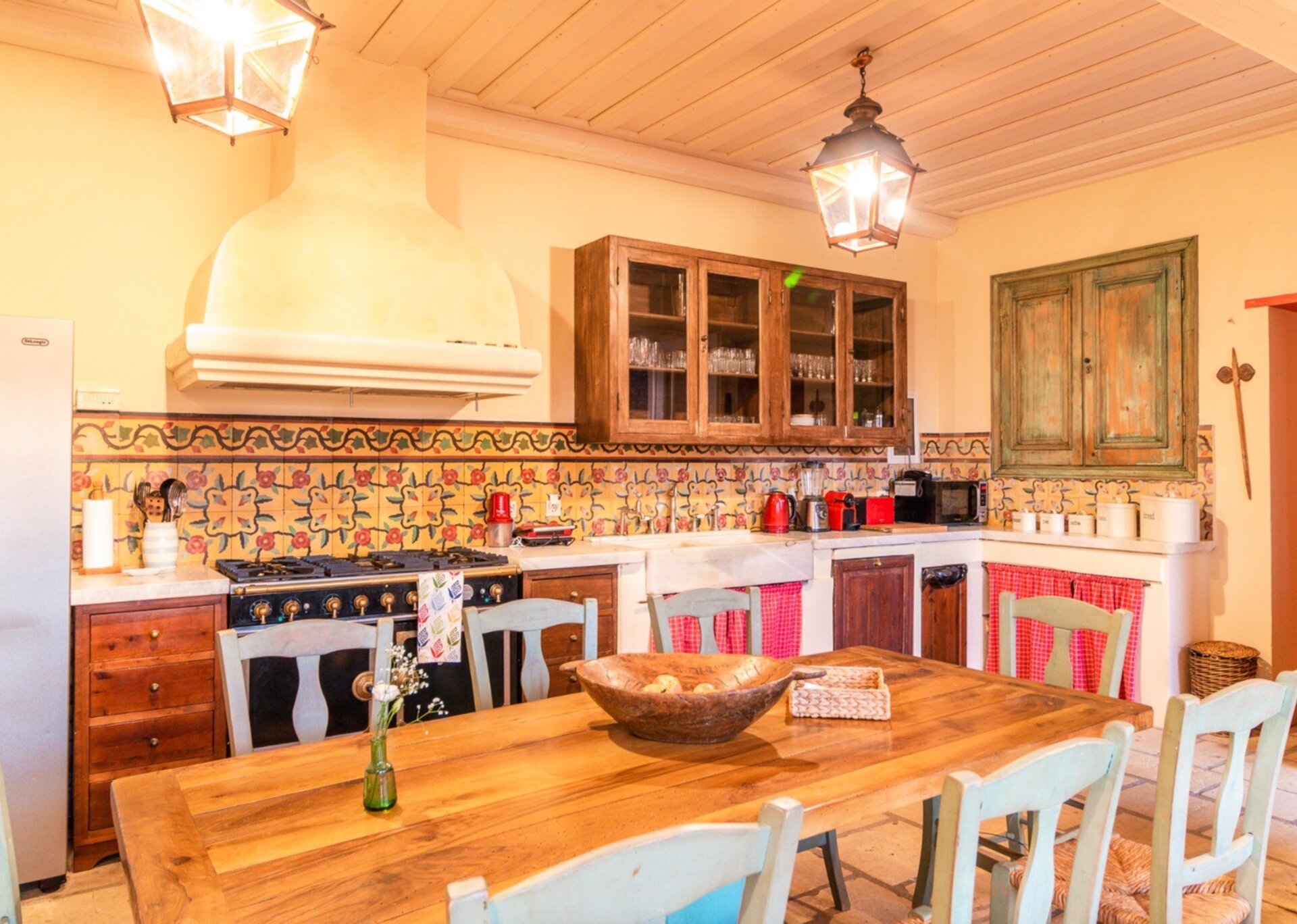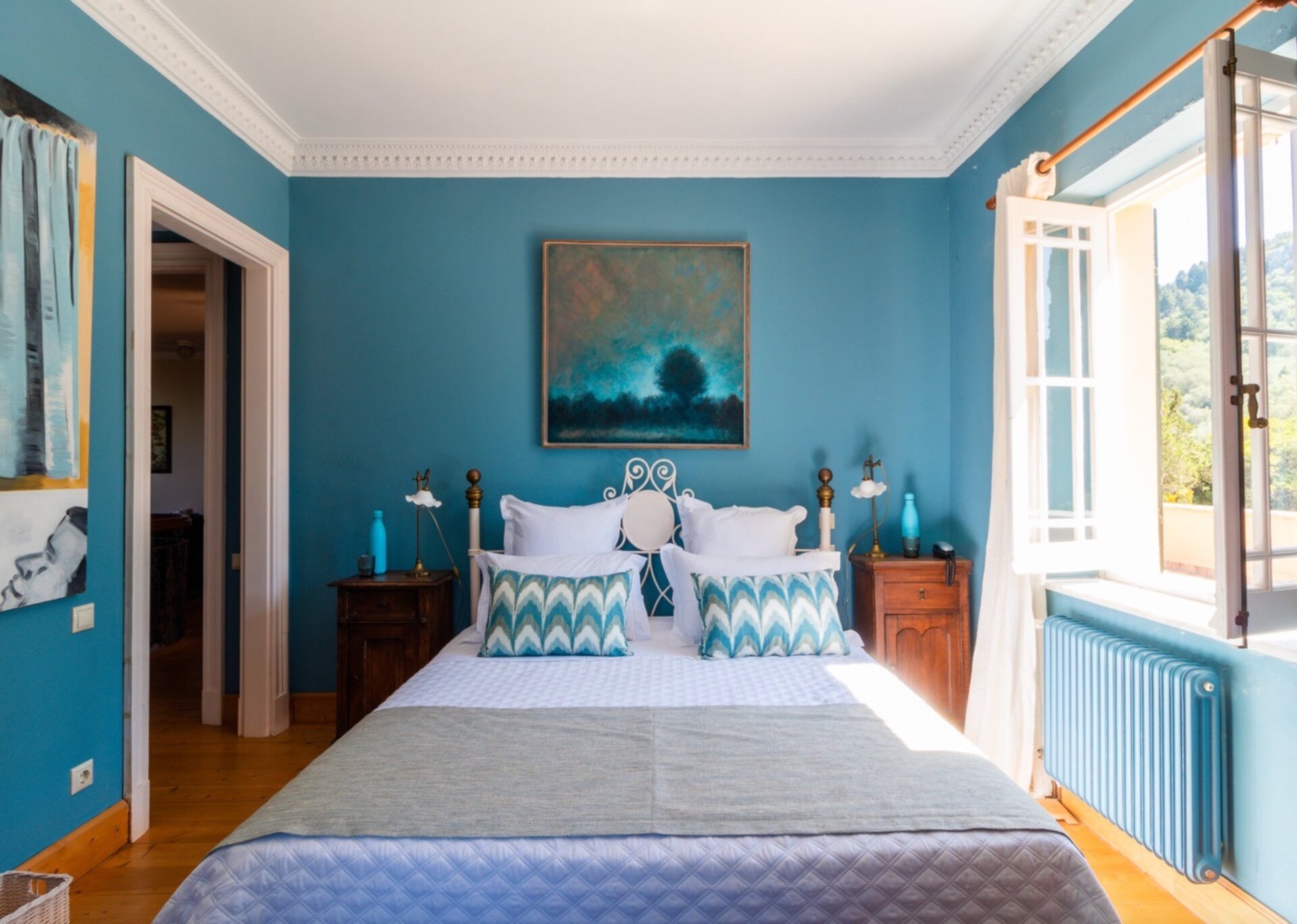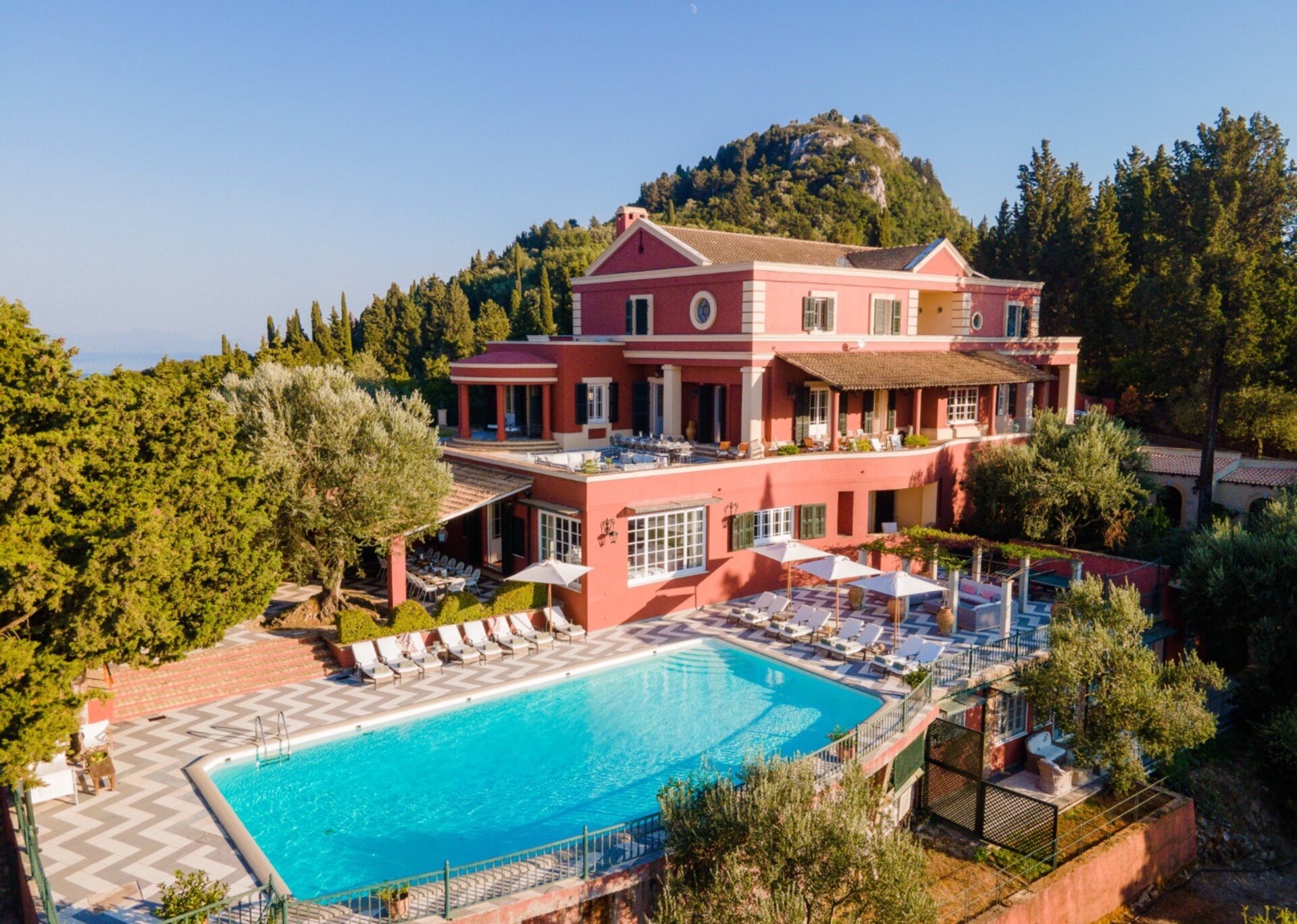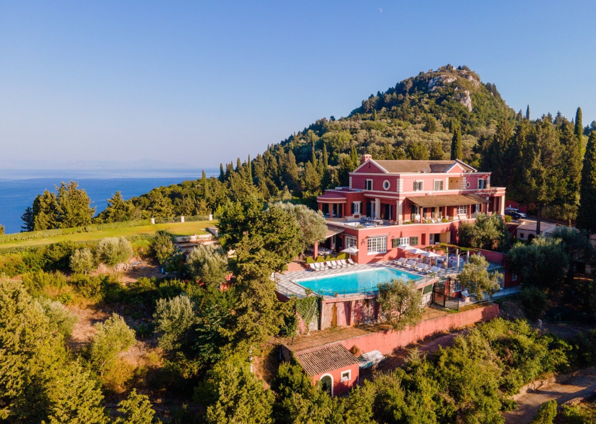 The guesthouse offers two additional ensuite double bedrooms, a sitting room with a kitchen area, and a private terrace with enchanting views of Gastouri and the surrounding countryside.