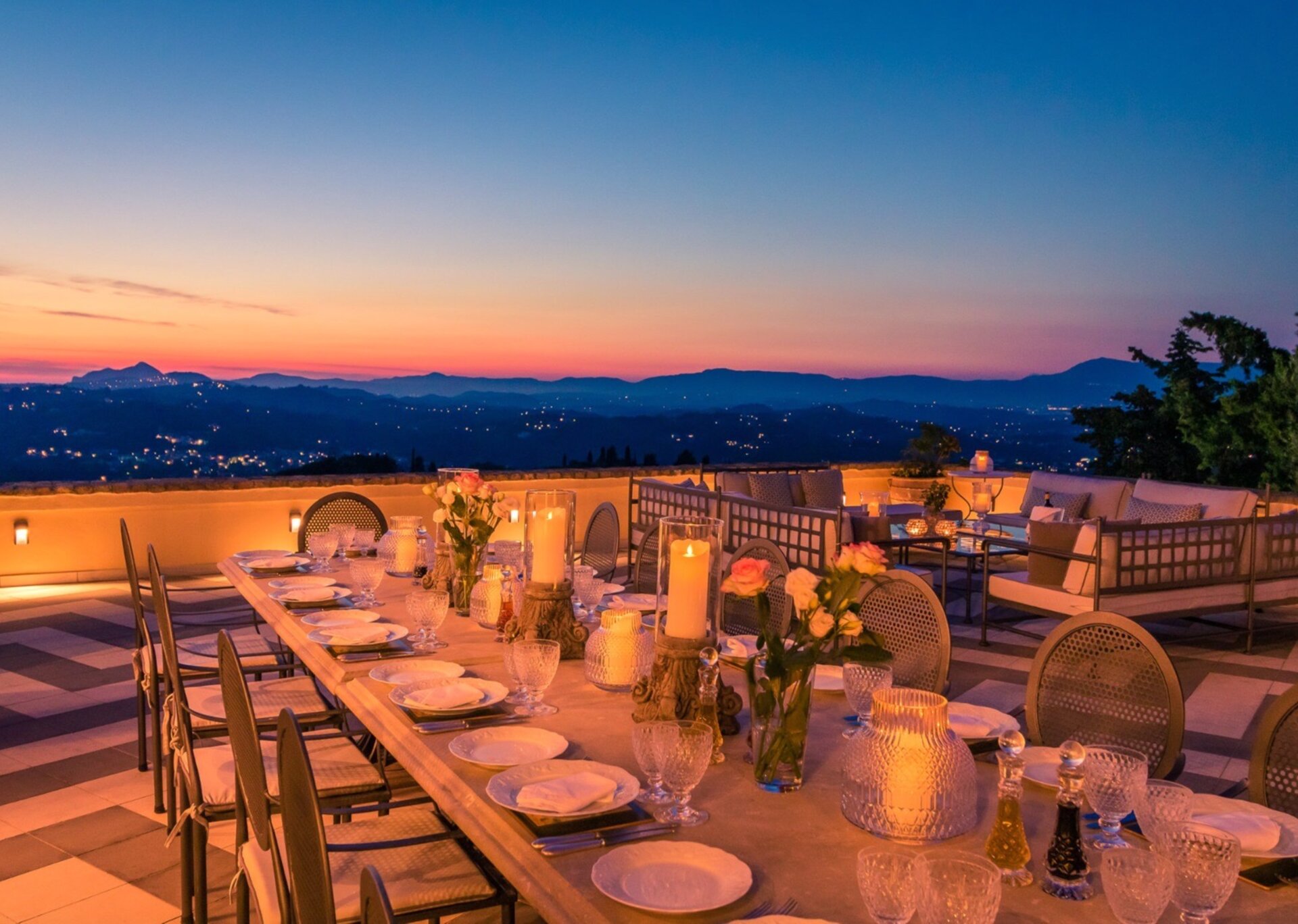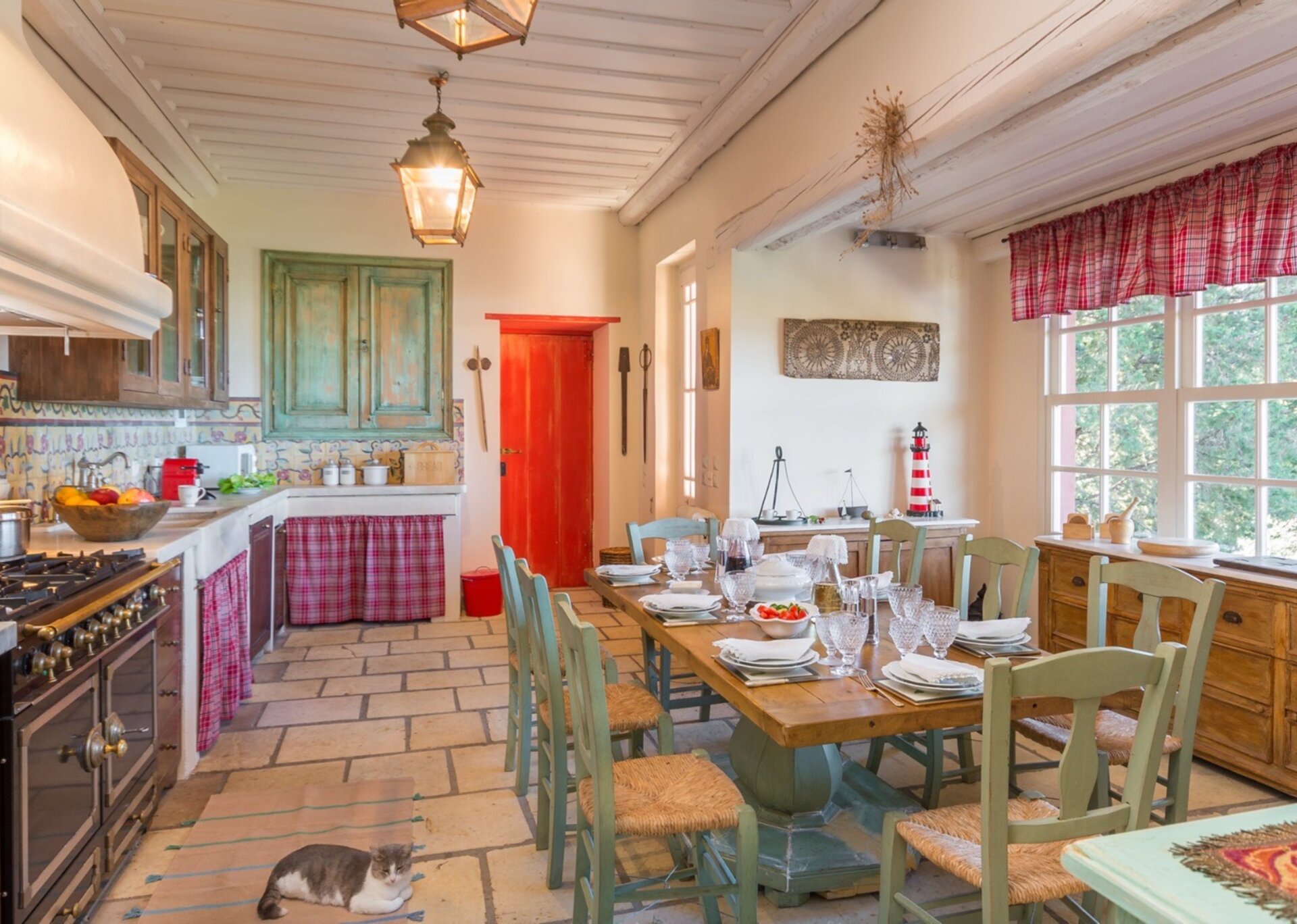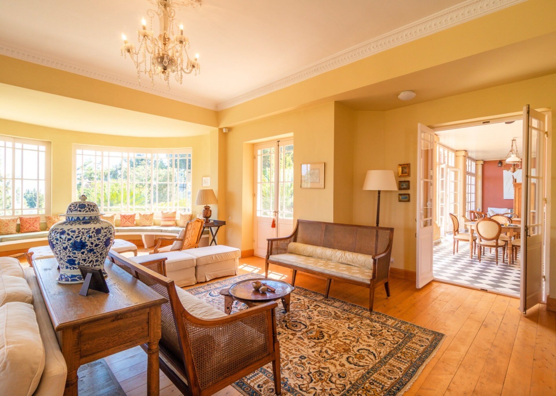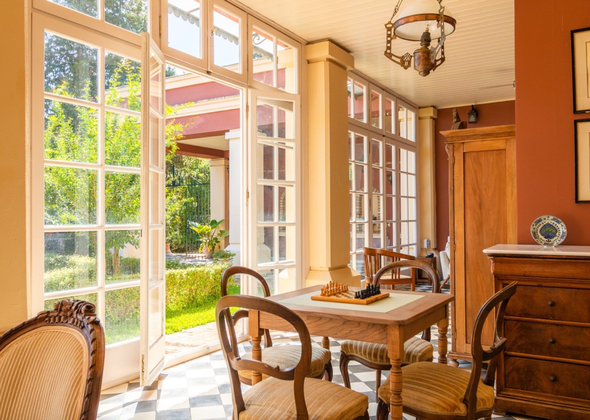 On the ground floor, you'll find a generously spacious drawing room adorned with an impressive marble fireplace, an elegant octagonal dining room, and a delightful card and sitting room, all showcasing remarkable artwork from the family's collection. The expansive terrace, accessible from the drawing and dining rooms, offers breathtaking views, inviting you to relish in sunset drinks amidst the tranquil evening breeze and savor dinner under the starlit sky.