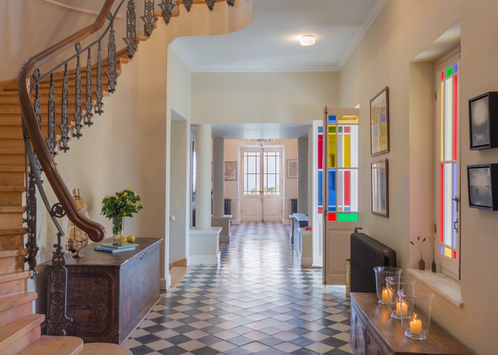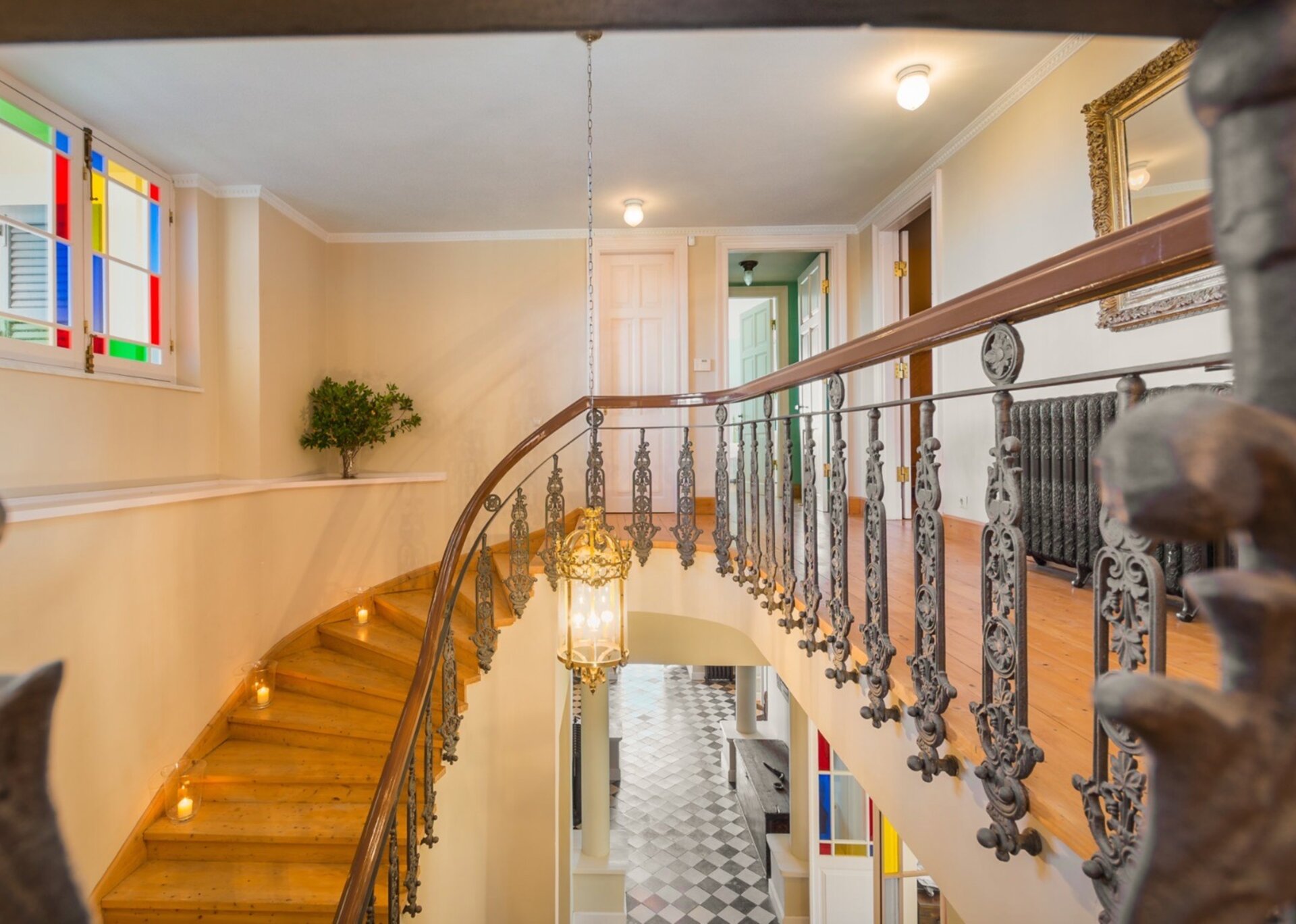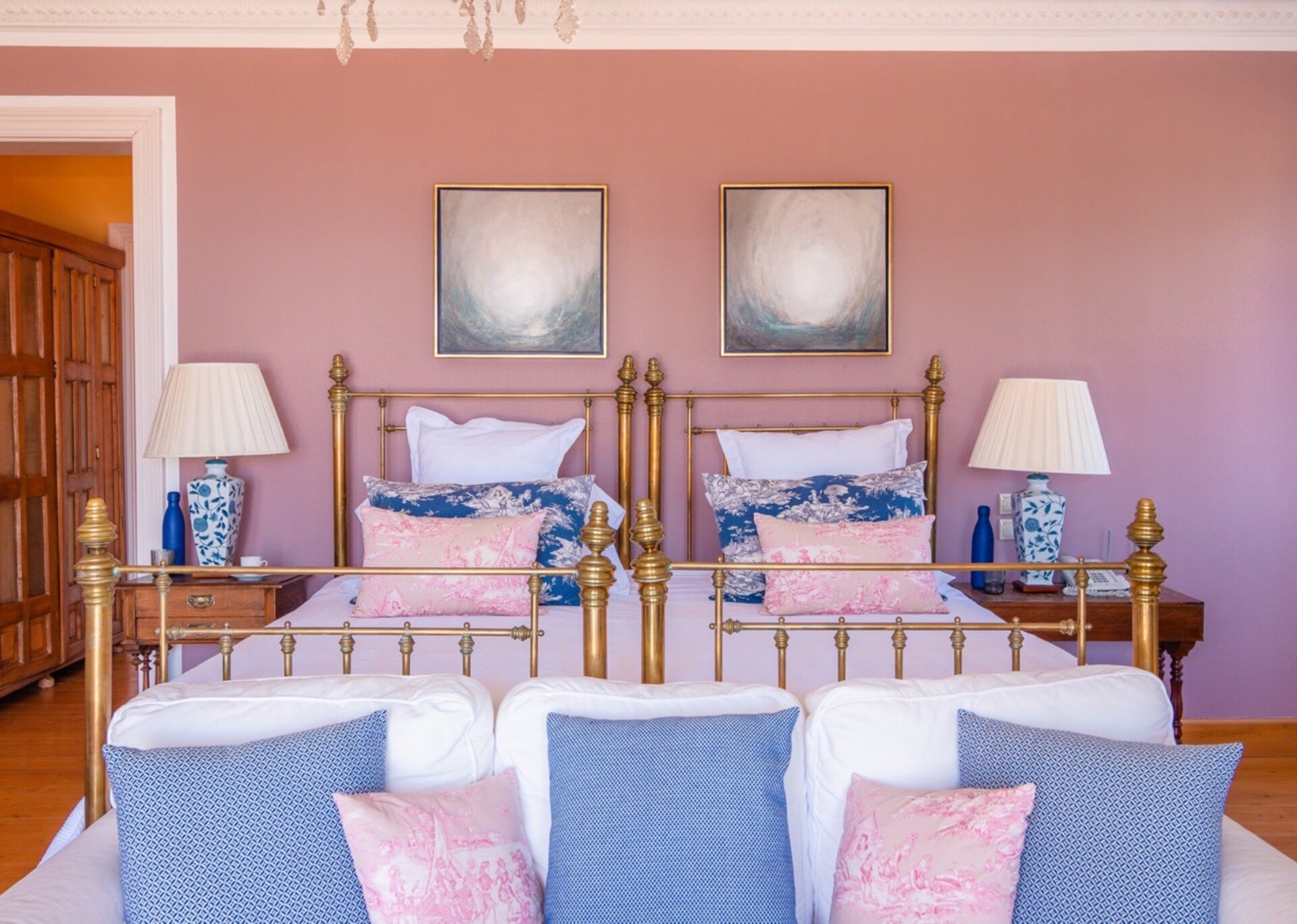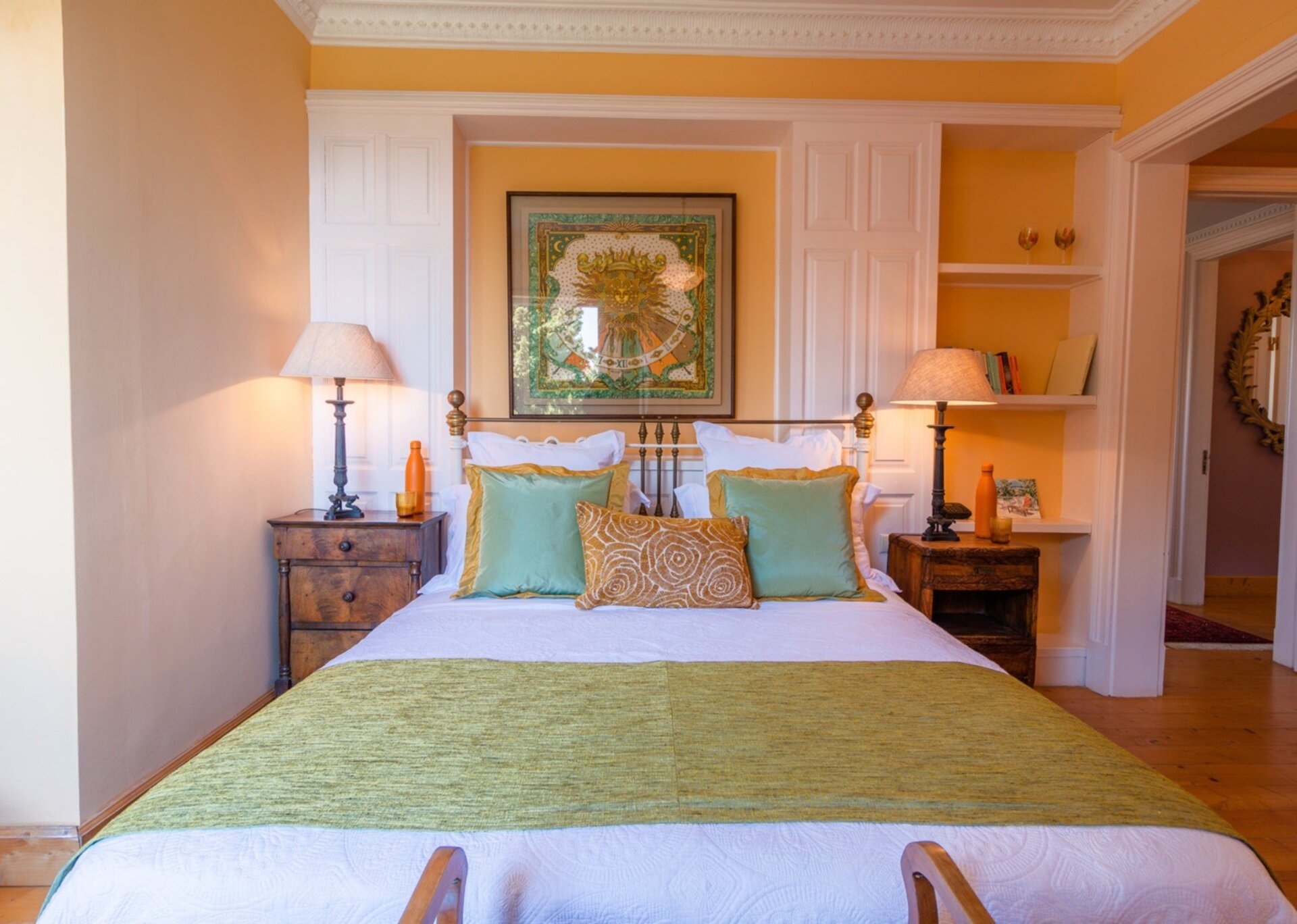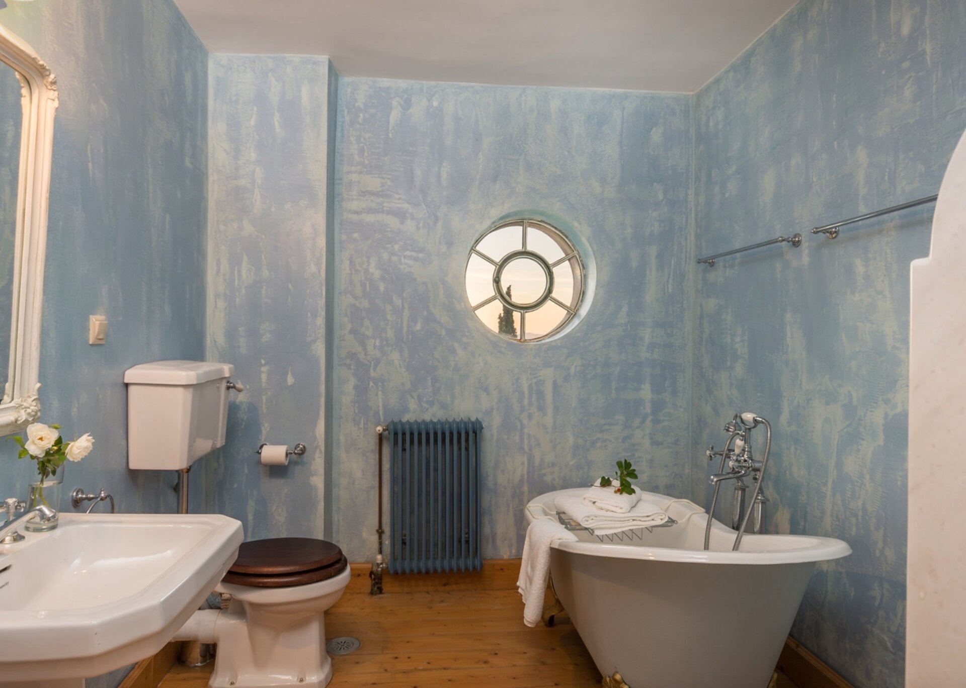 On the ground floor, you'll find a generously spacious drawing room adorned with an impressive marble fireplace, an elegant octagonal dining room, and a delightful card and sitting room, all showcasing remarkable artwork from the family's collection. The expansive terrace, accessible from the drawing and dining rooms, offers breathtaking views, inviting you to relish in sunset drinks amidst the tranquil evening breeze and savor dinner under the starlit sky.