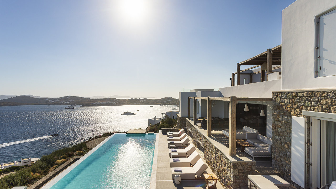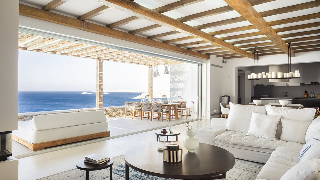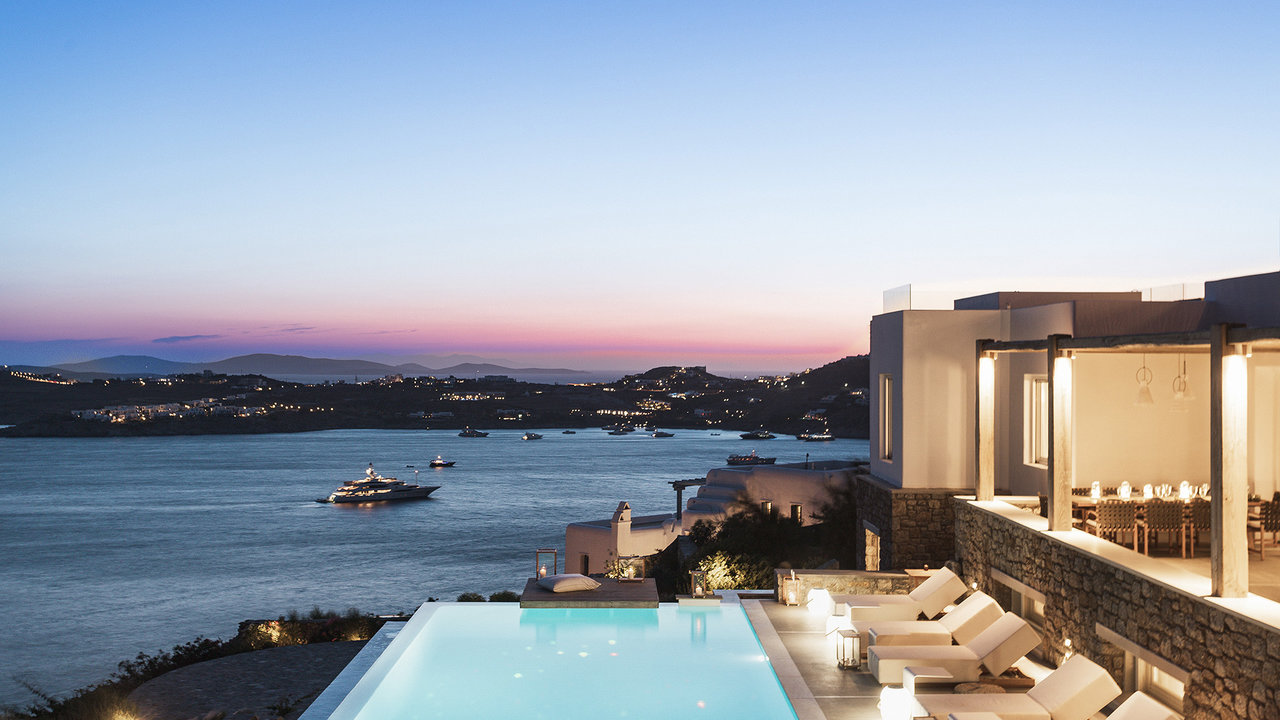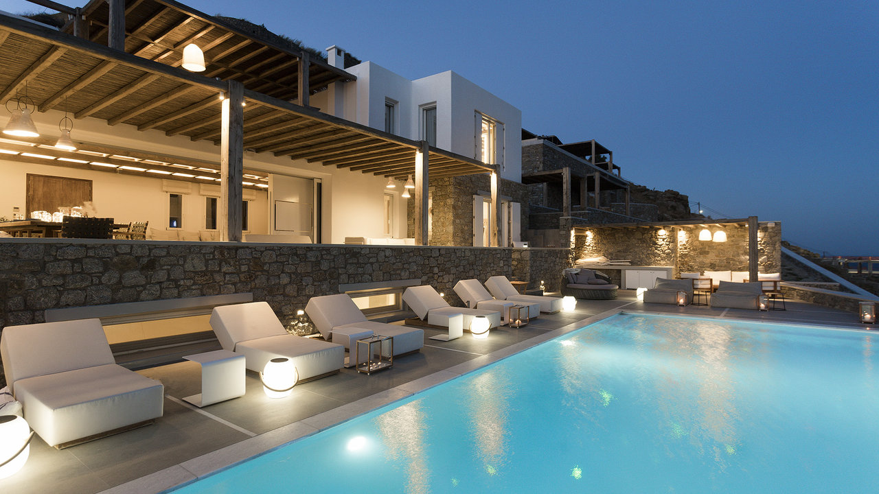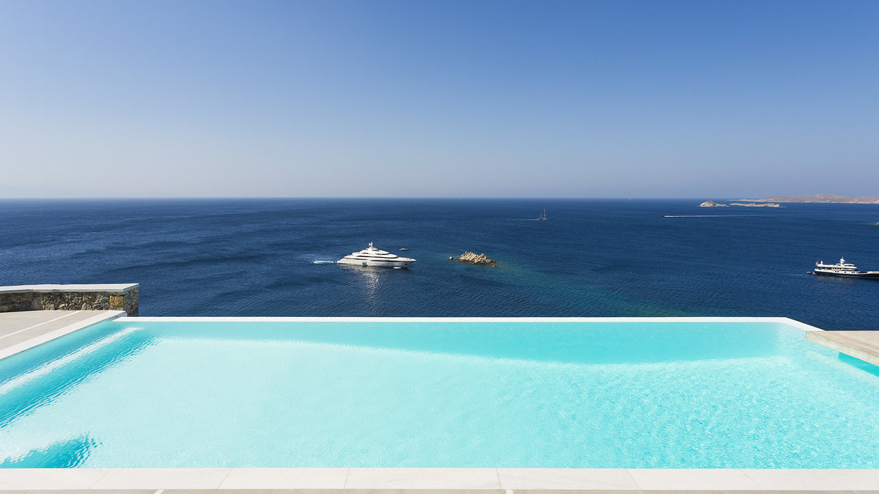 Generously featuring six lavish bedrooms with en suite designer bathrooms featuring amenities like steam showers and oversized tubs, the villa offers the most modern luxury facilities to match every taste and need. An exuberant living room and dining area with panoramic view to the Aegean, a fully equipped chef's kitchen with supreme amenities, gym , and the stylish hand crafted furniture complete the utopian hideaway.