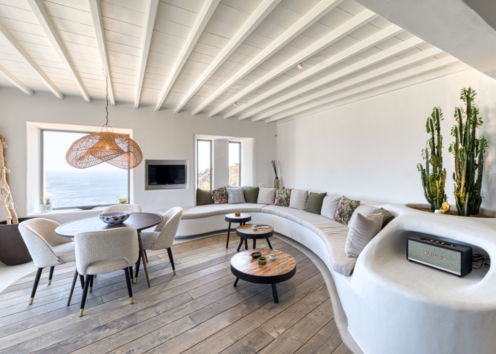 Asana, can easily accommodate 6 guests in 3 spacious bedrooms with en-suited bathrooms. The interior area is elegantly decorated and minimally designed, without any unnecessary details. There is a cozy open plan living room, that overlooks the unobstructed azure view of the sea and an wonderful indoor dining area to enjoy a meal with your family and friends.