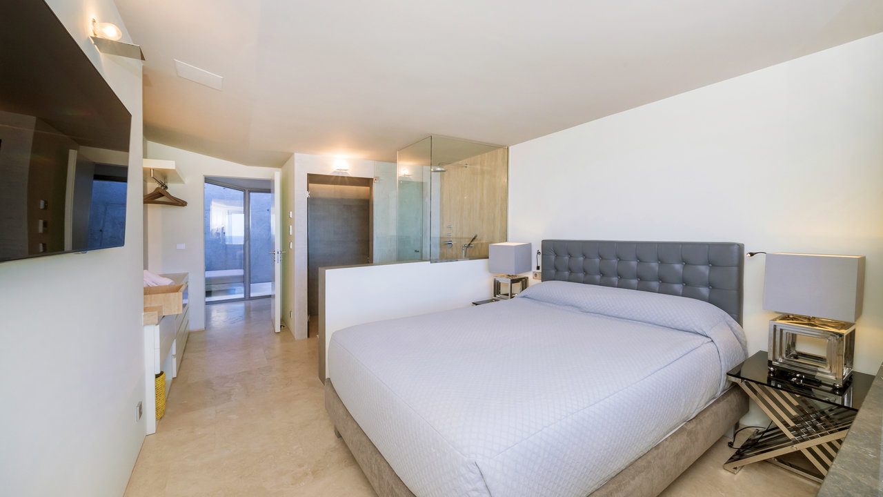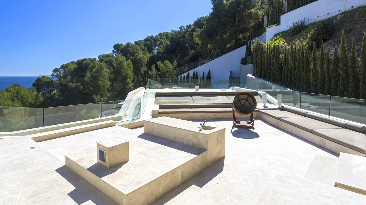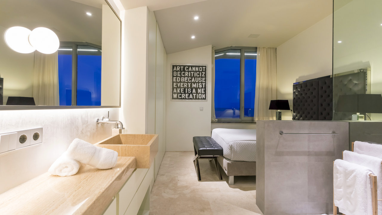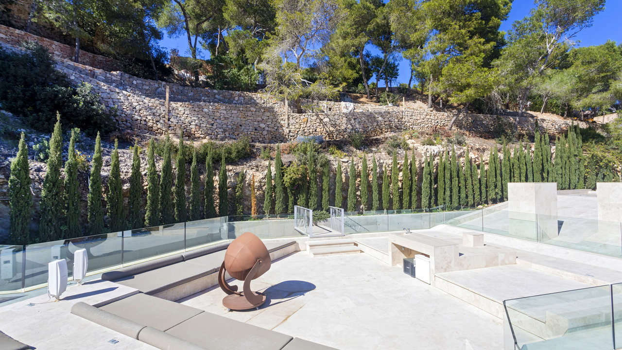 Villa Aster is located just a few kilometres away from Ibiza Town, standing on the hillside of the exclusive residential area of Roca Llisa nestled in the lush green countryside. The luxurious property features outstanding architecture with an impressive minimalist linear design.