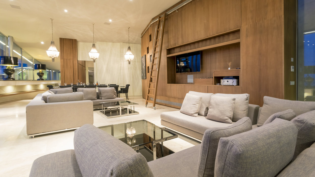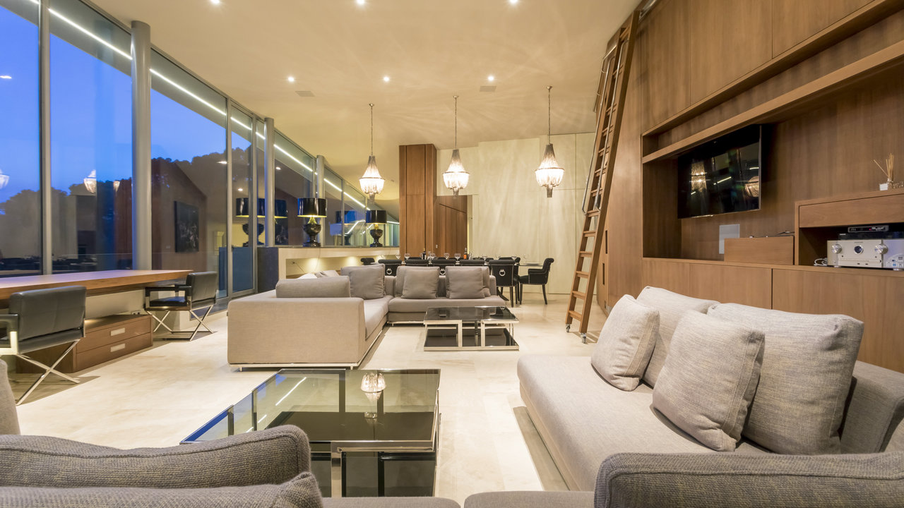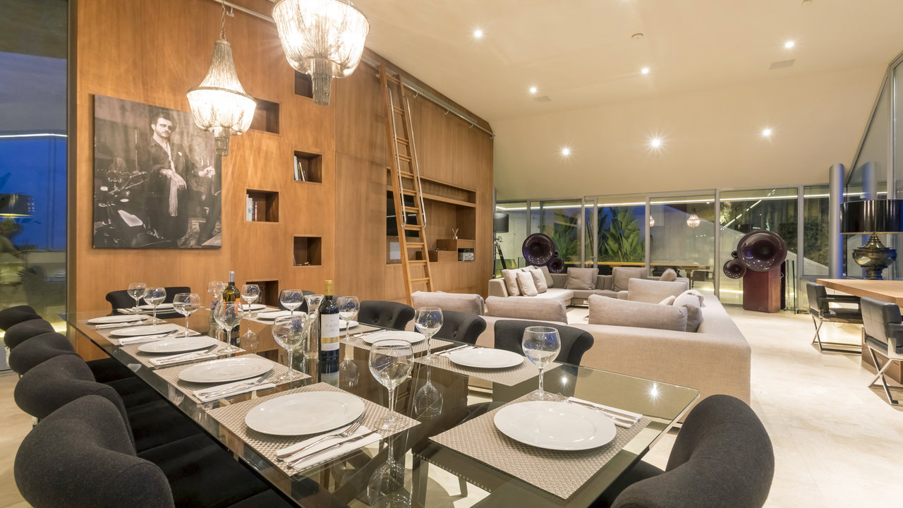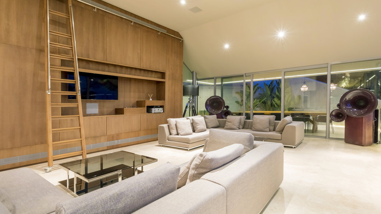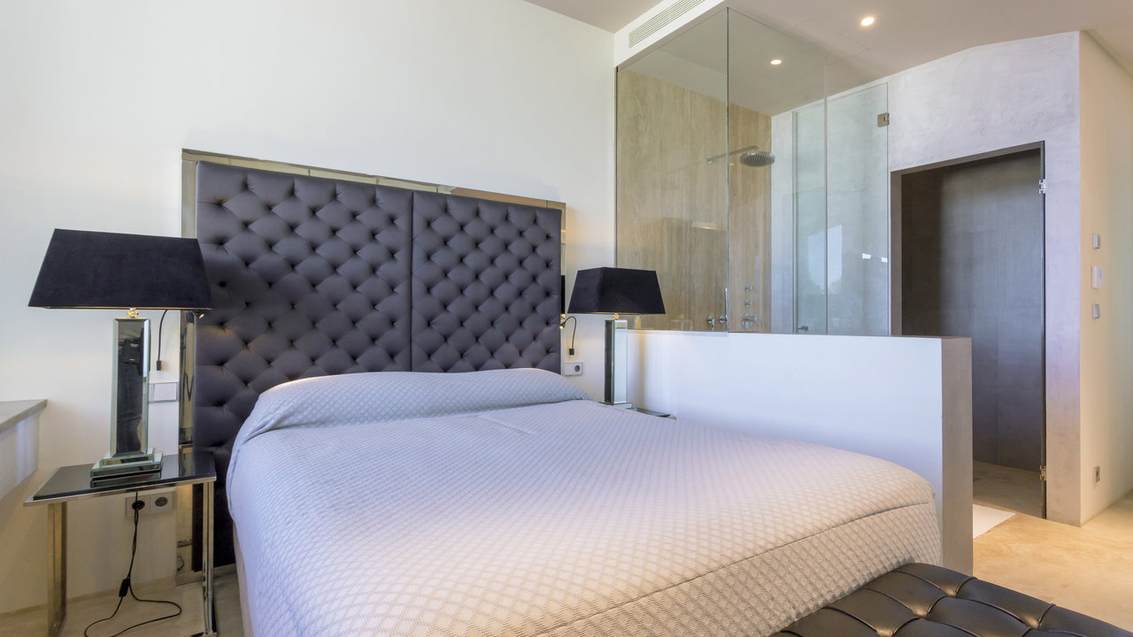 Villa Aster is located just a few kilometres away from Ibiza Town, standing on the hillside of the exclusive residential area of Roca Llisa nestled in the lush green countryside. The luxurious property features outstanding architecture with an impressive minimalist linear design.