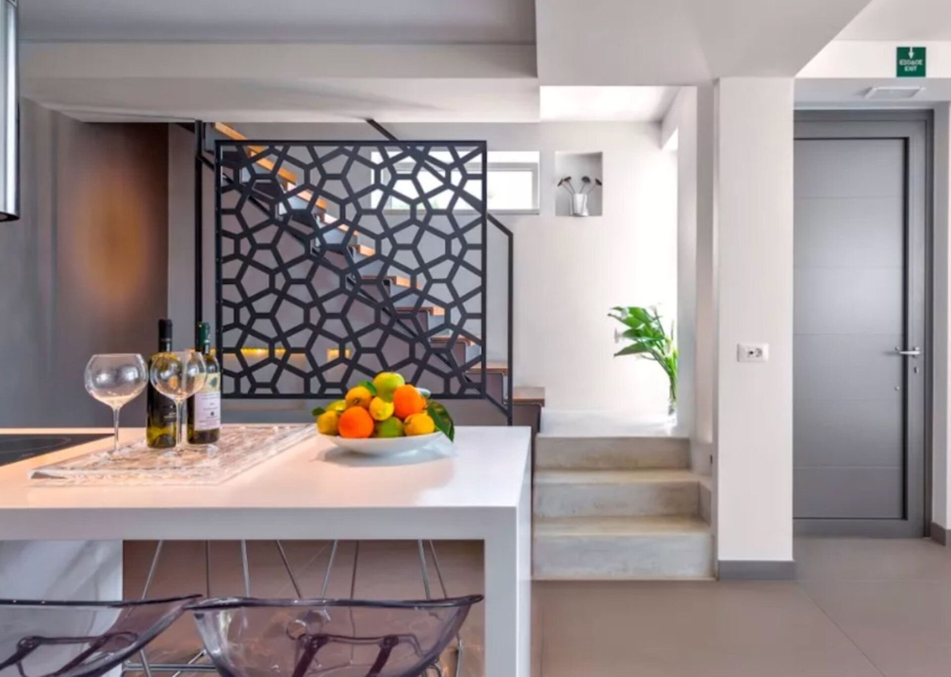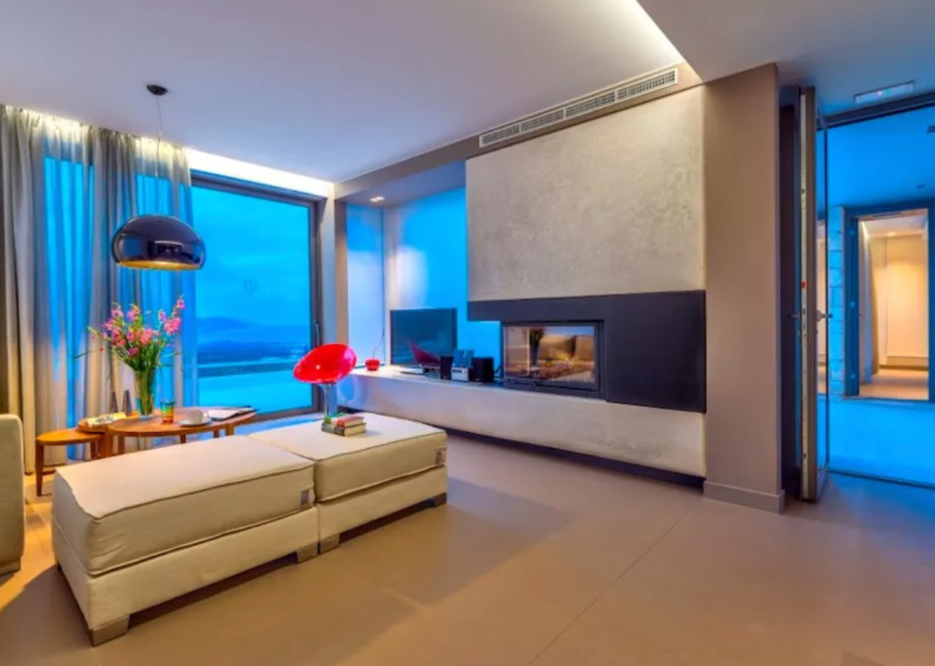 Welcome to Aura, an exquisite luxury rental villa in Chania. This stunning residence offers a spacious living space that spans across two floors. With large "picture" windows throughout, the villa is bathed in natural sunlight, revealing breathtaking panoramic views from every room.