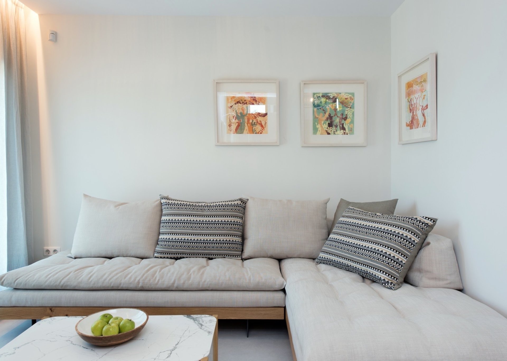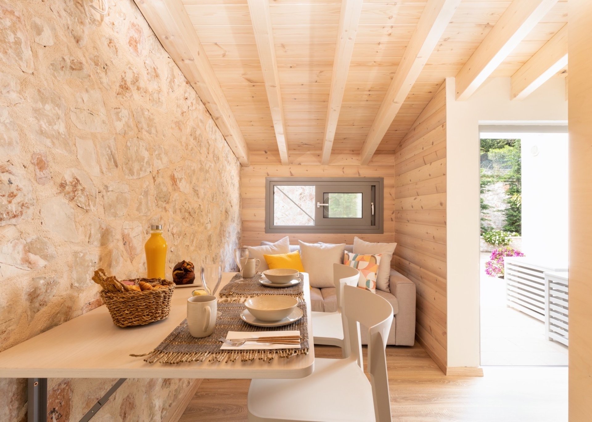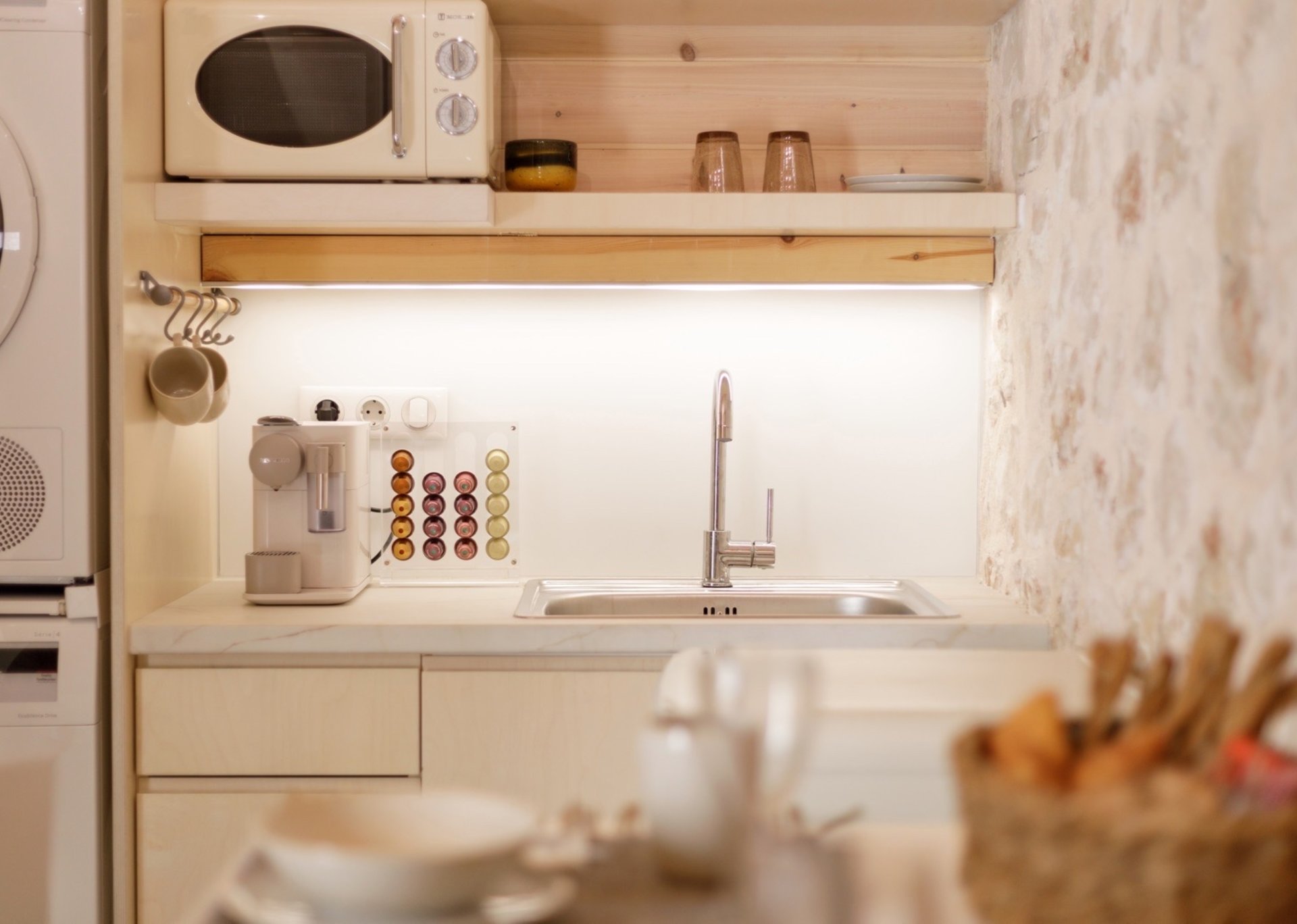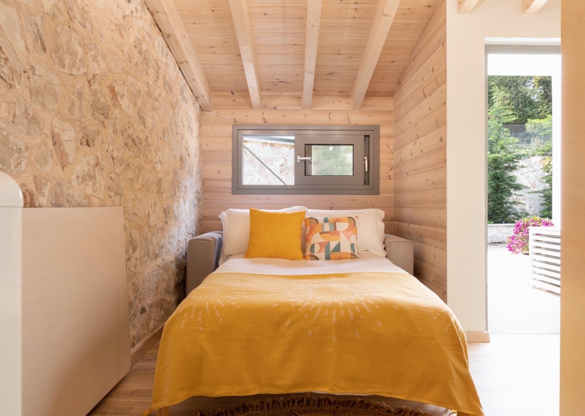 Spread over three levels, Villa Aurelia includes an attached, fully self-contained studio that matches the luxurious style of the main villa, and has the added convenience of its own private entrance off the pool area. The ground floor features a spacious room hosting a large living room, a fully-equipped kitchen, and a wine cellar, all of which offer easy access from the living area.