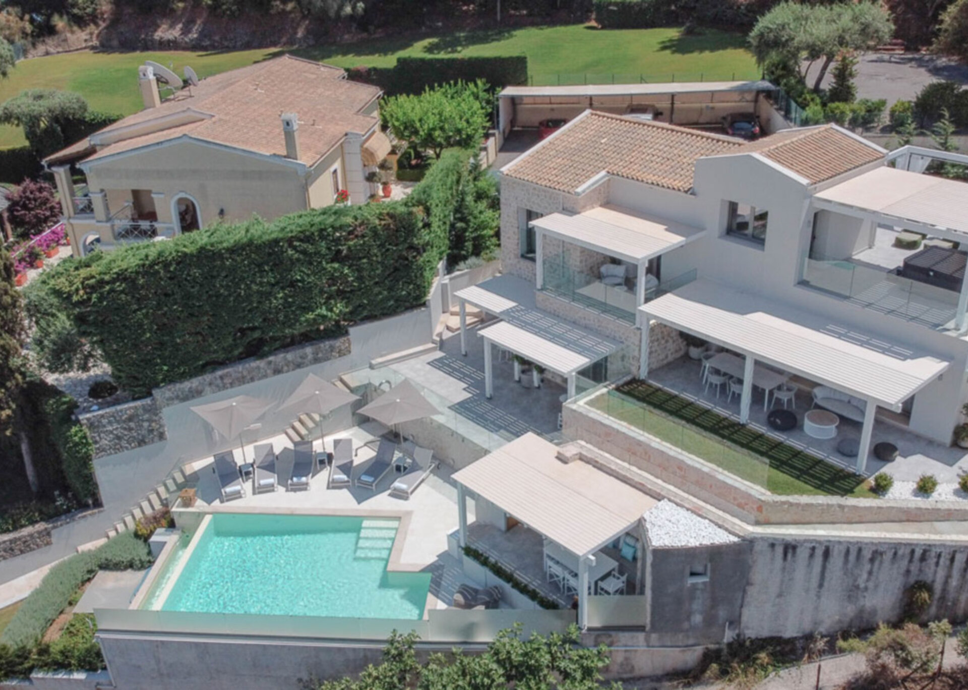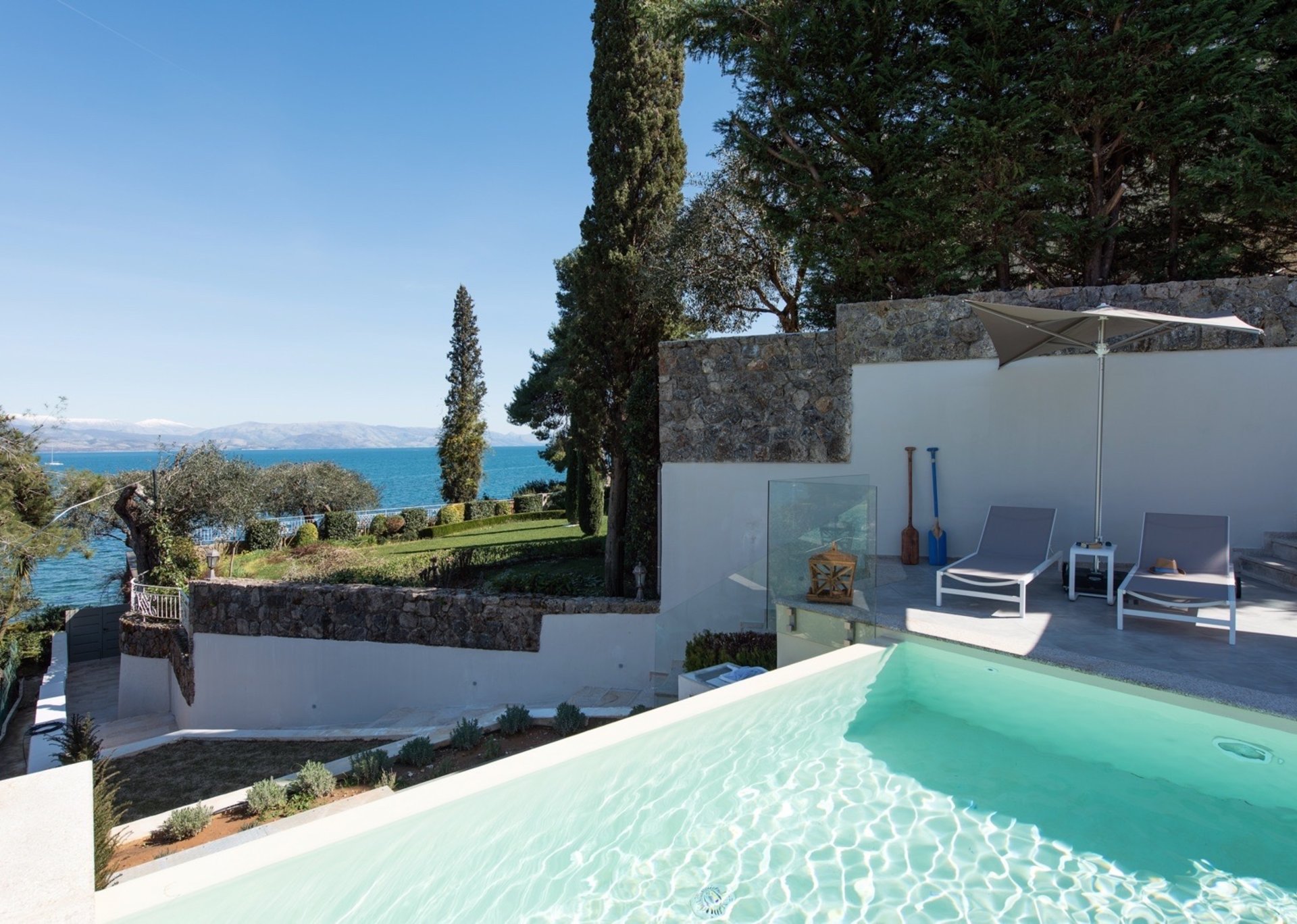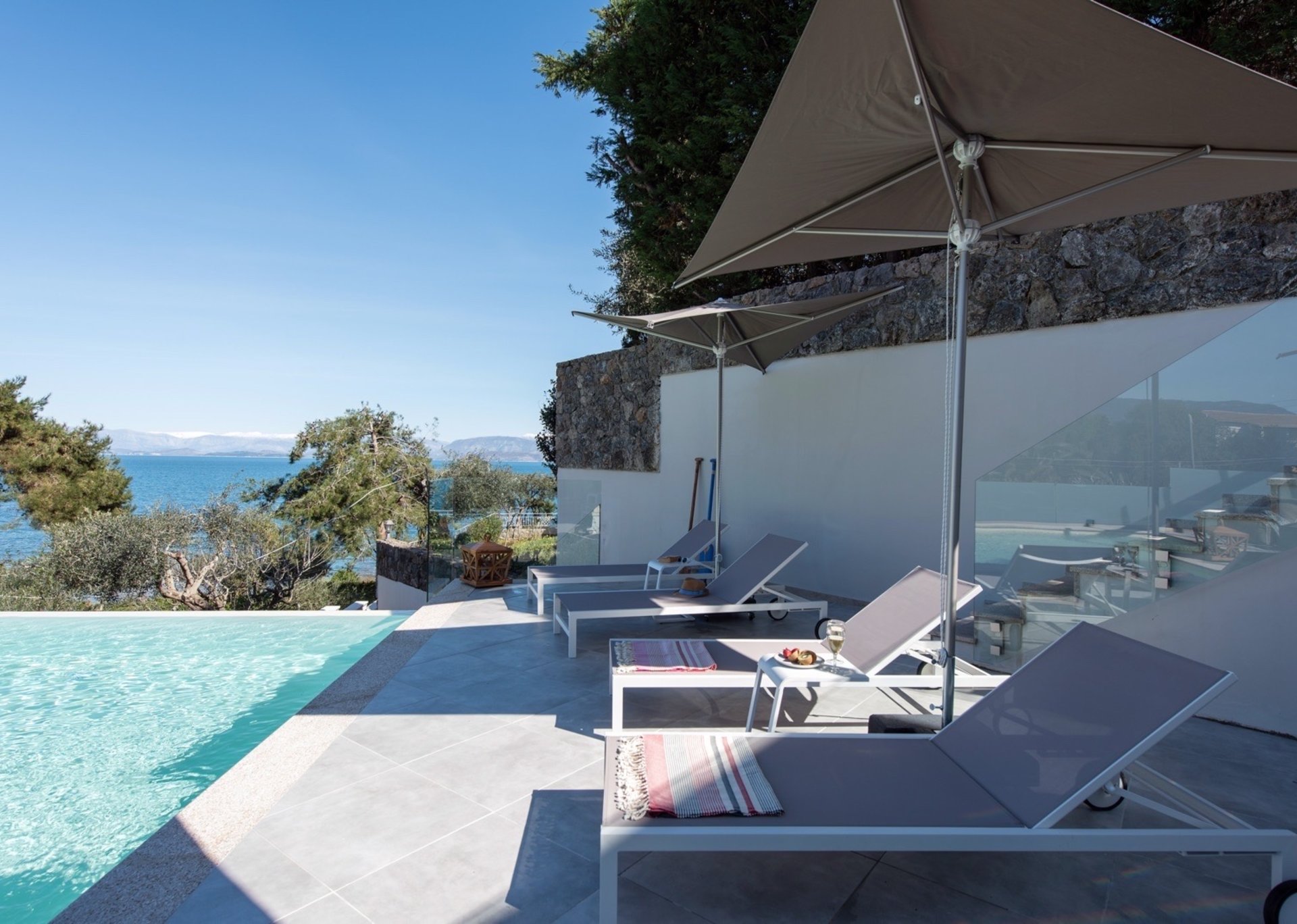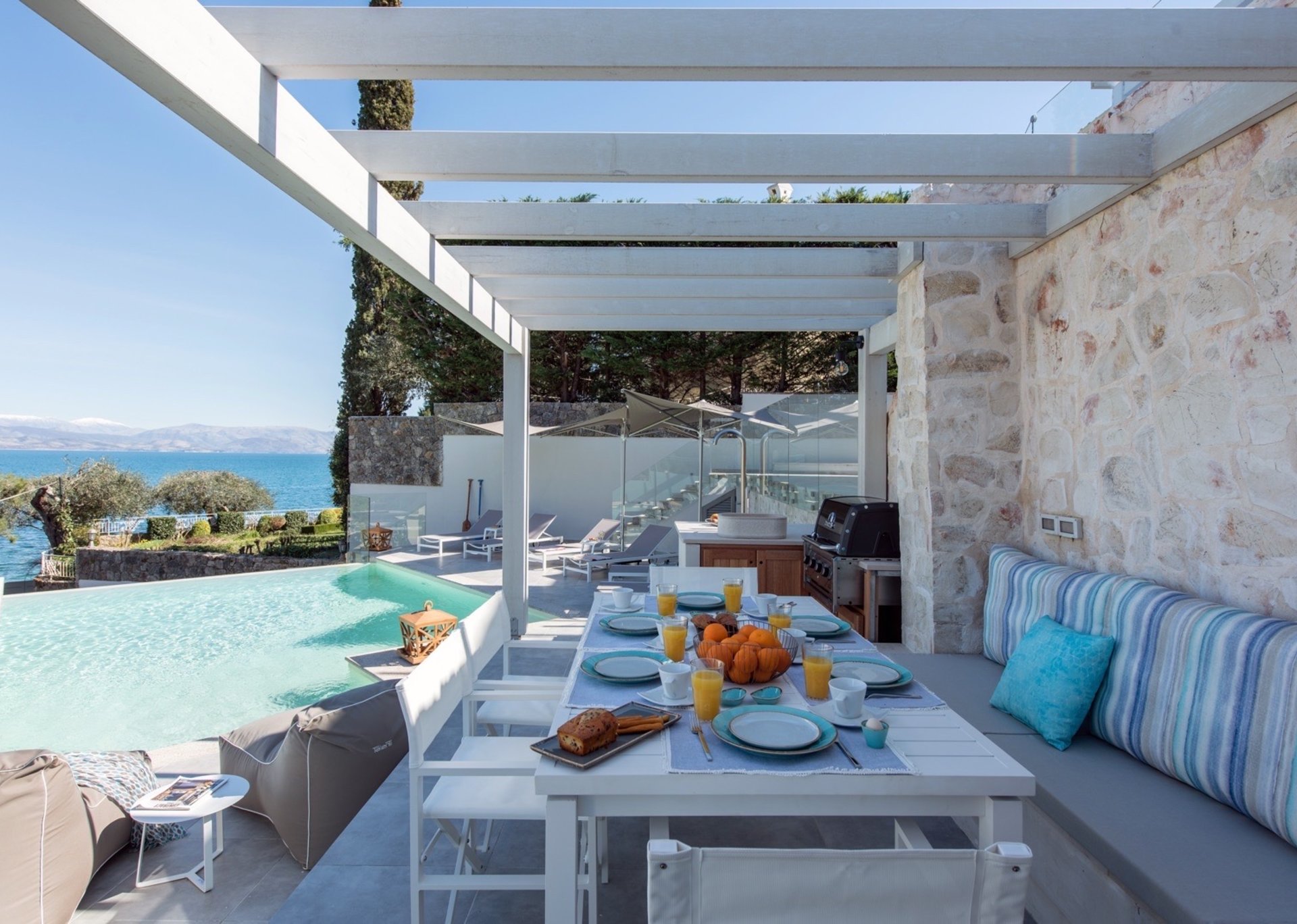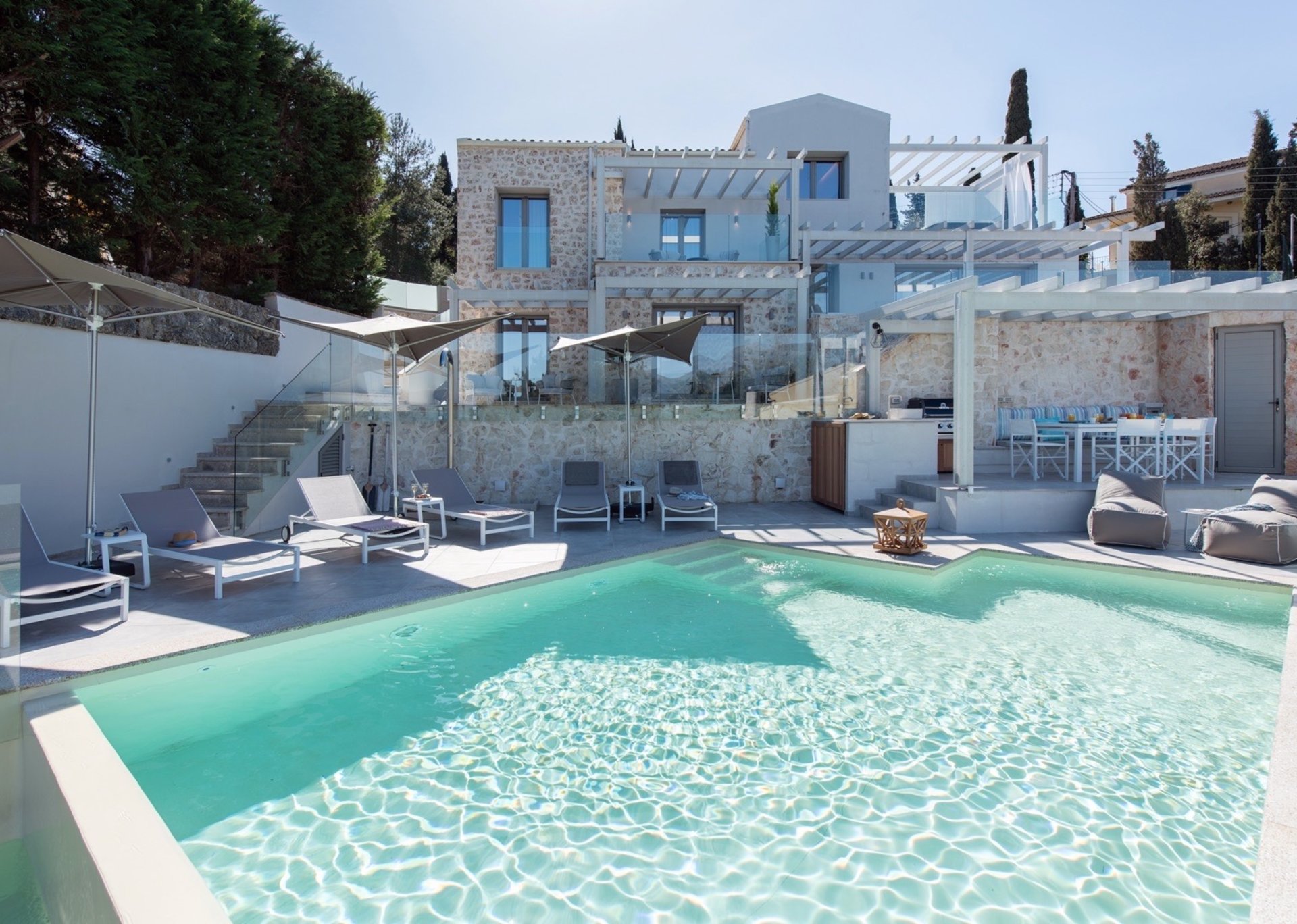 Located just 7 km from Corfu town, Villa Aurelia is a luxurious retreat that offers an ideal vacation experience for up to 6+2 guests. The villa features a minimalist interior with a palette of grey and white that exudes luxury and openness. Furthermore, the outdoor spaces comprise a swimming pool, a stone patio, and a pergola.