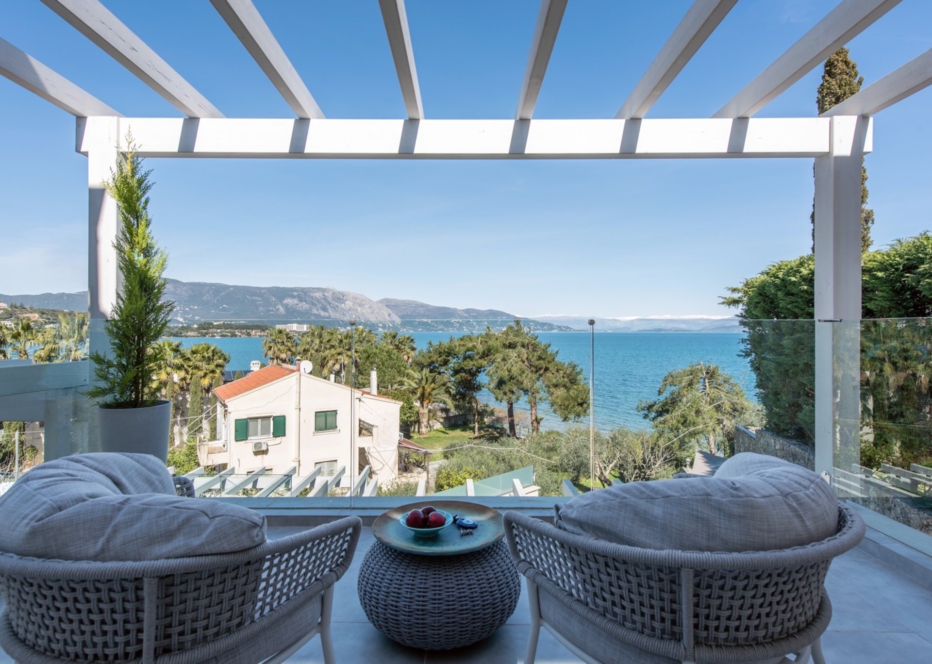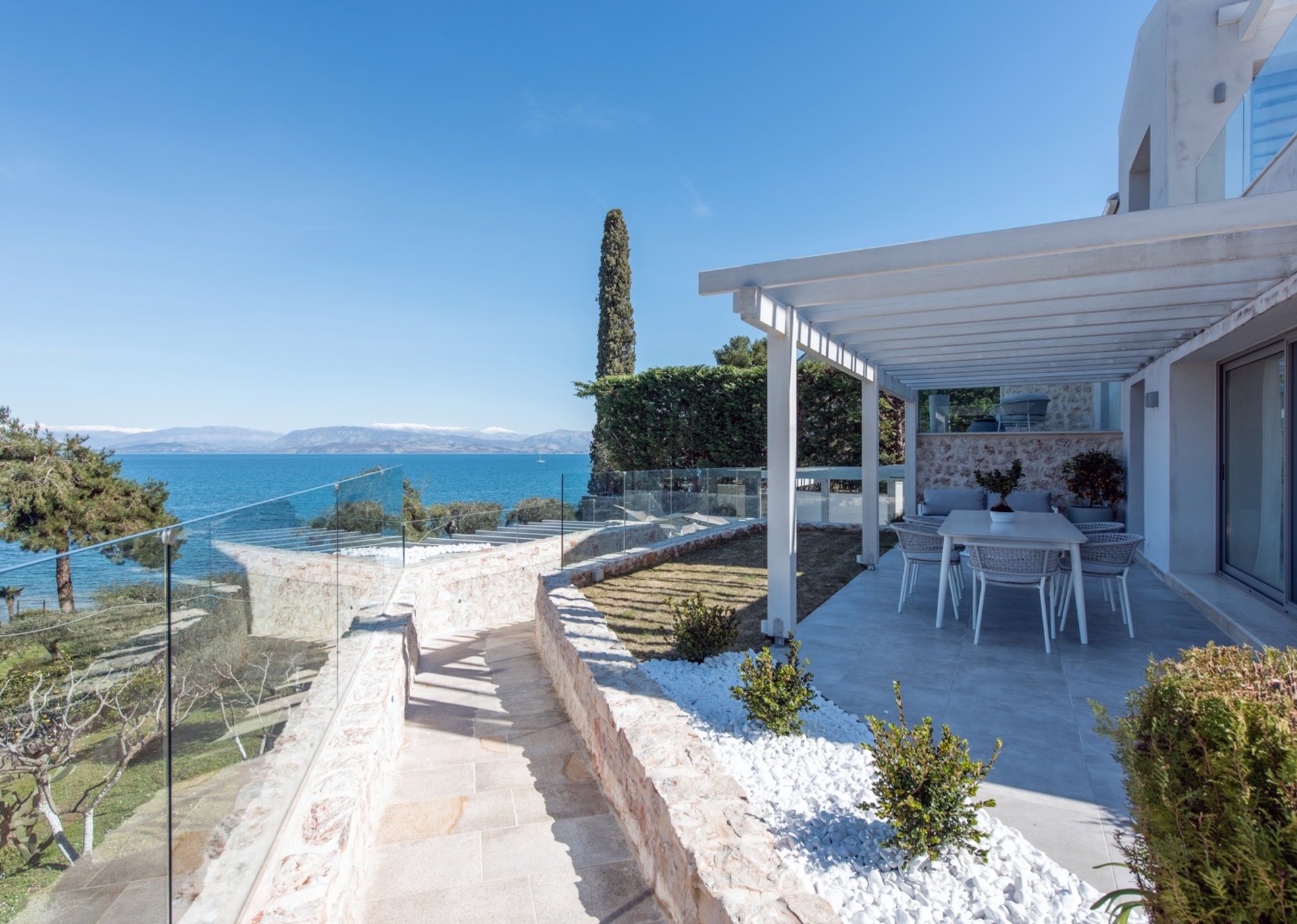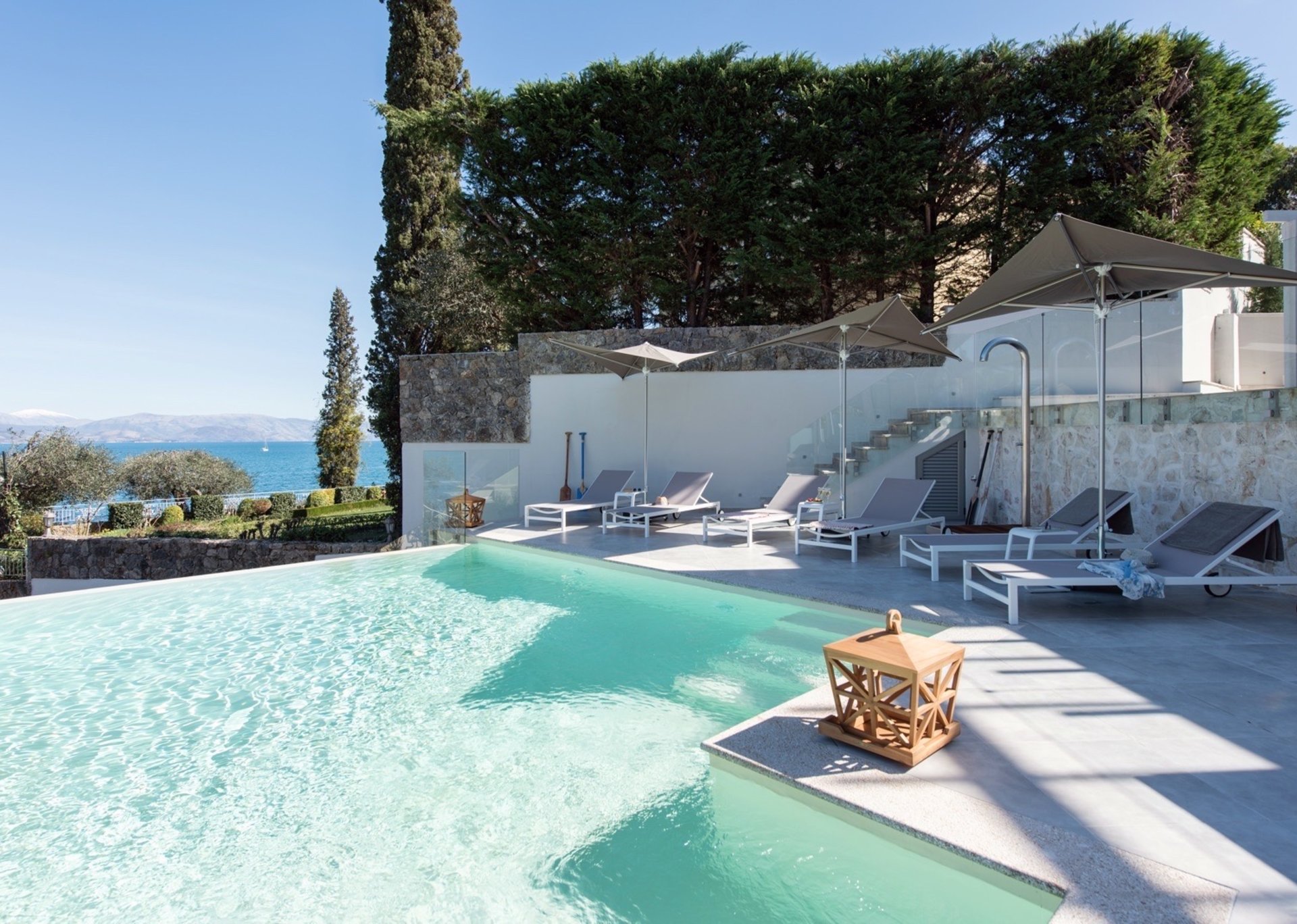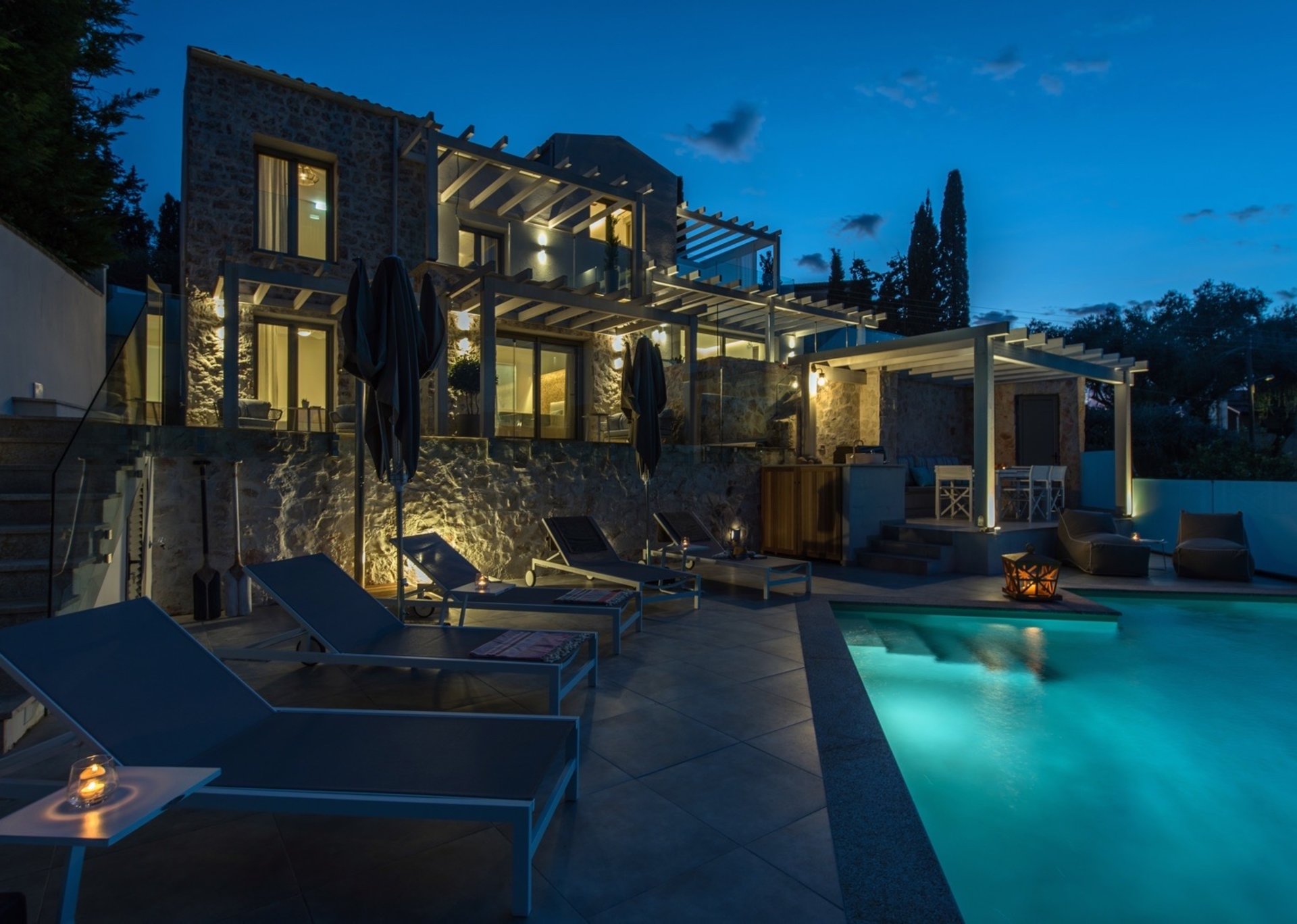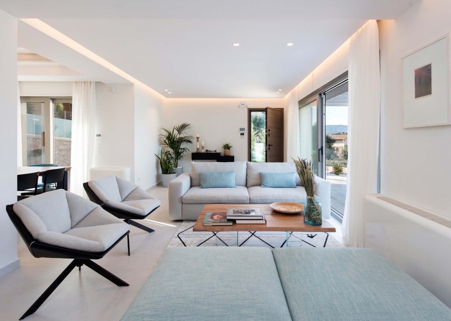 Located just 7 km from Corfu town, Villa Aurelia is a luxurious retreat that offers an ideal vacation experience for up to 6+2 guests. The villa features a minimalist interior with a palette of grey and white that exudes luxury and openness. Furthermore, the outdoor spaces comprise a swimming pool, a stone patio, and a pergola.