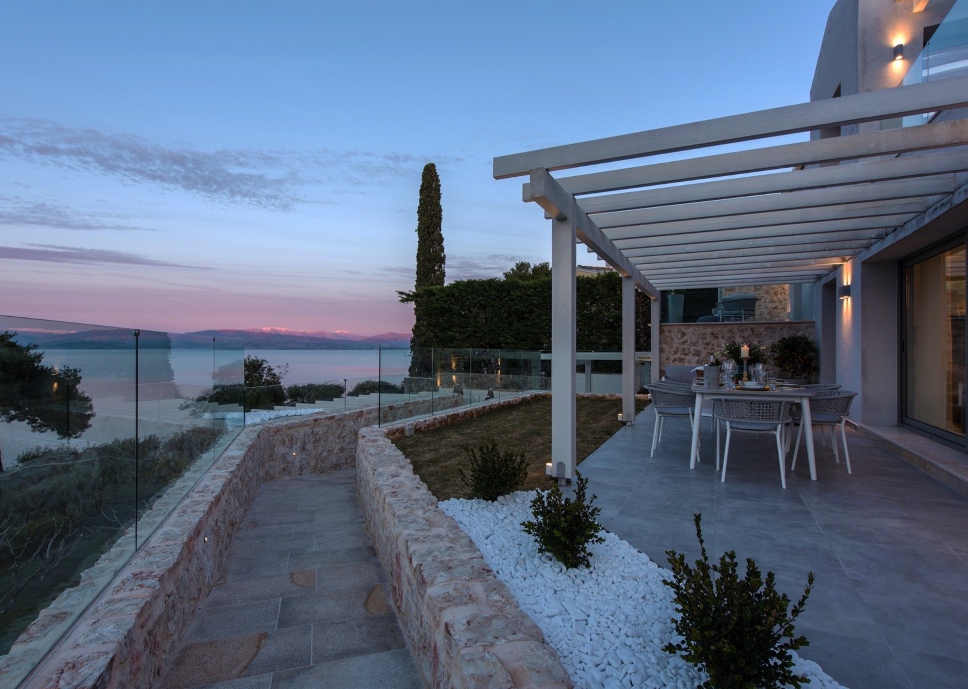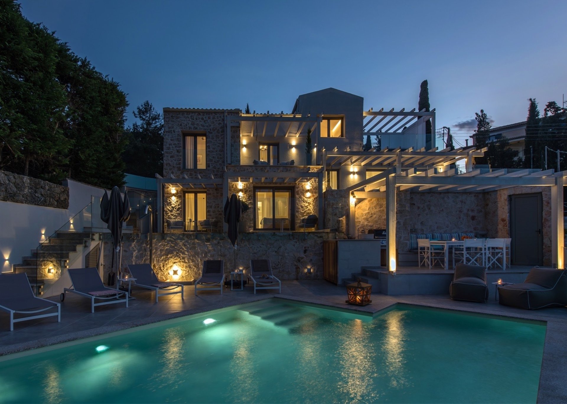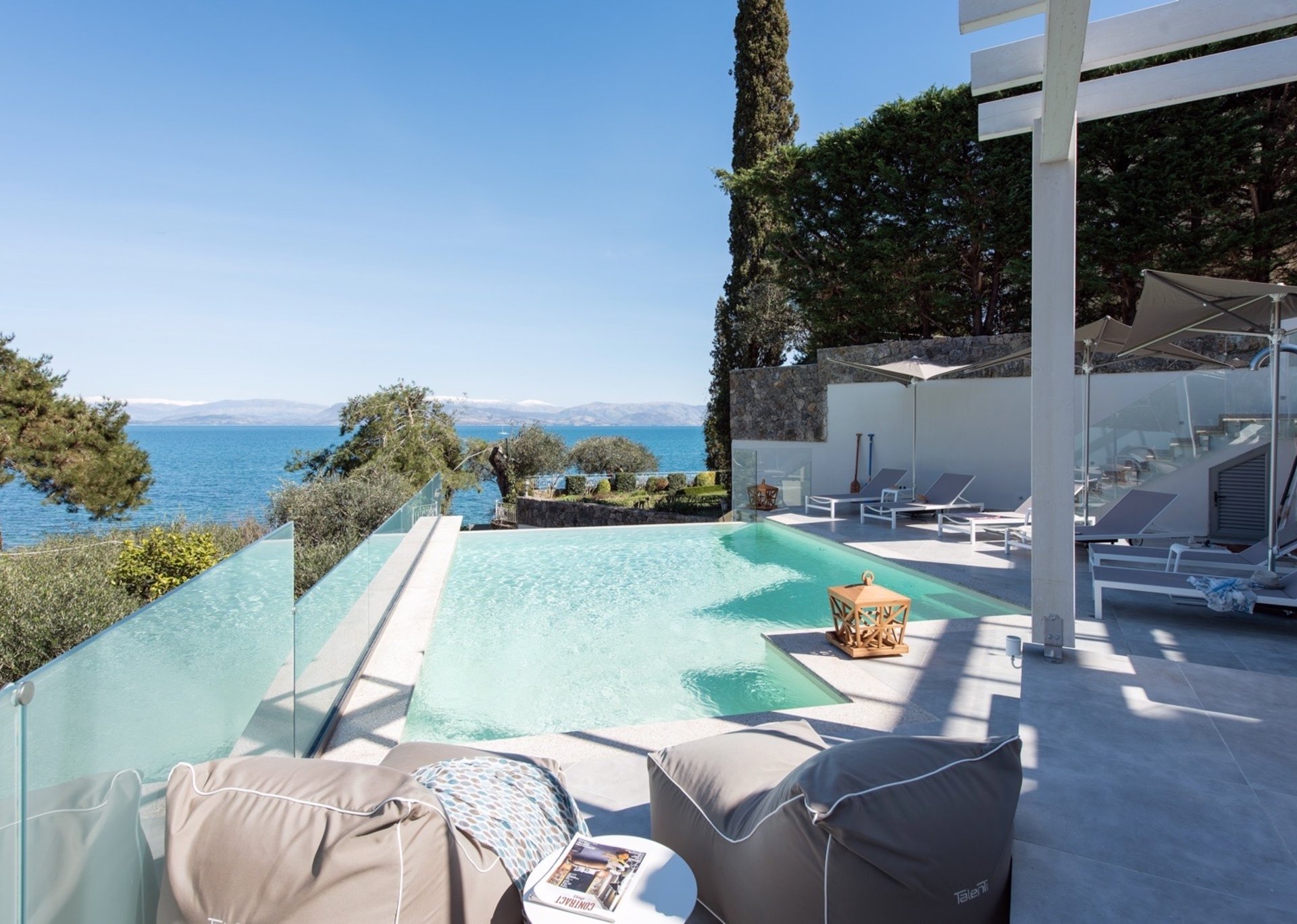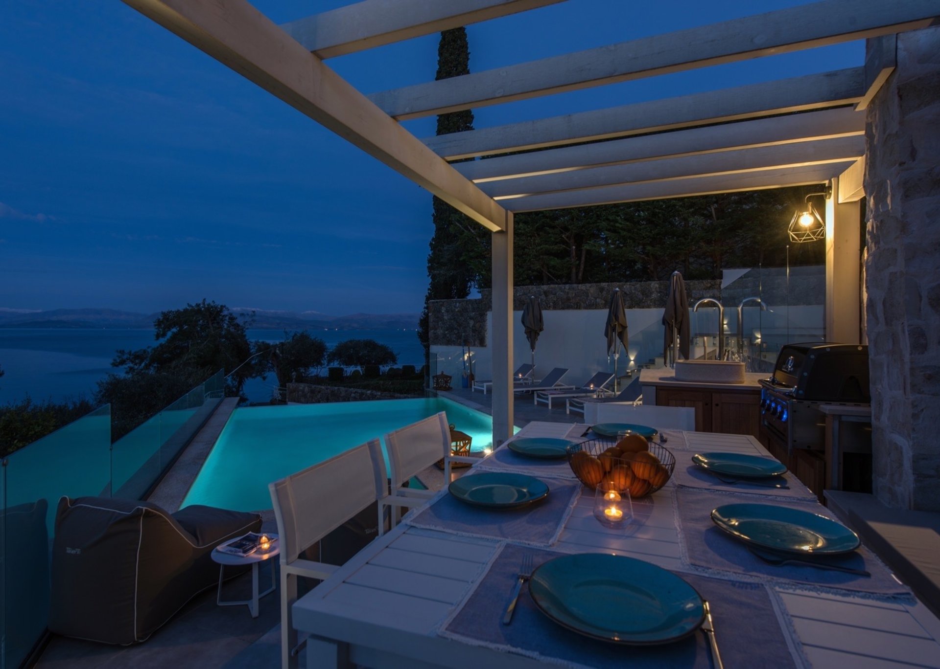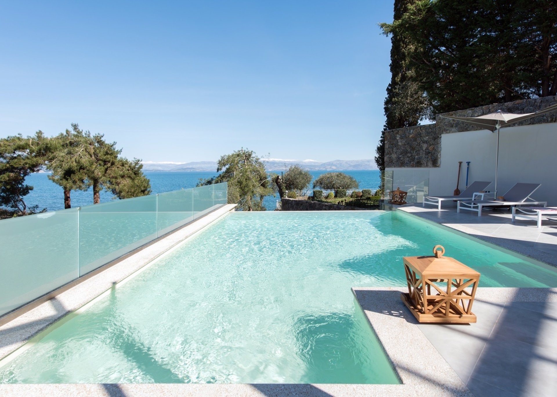 Located just 7 km from Corfu town, Villa Aurelia is a luxurious retreat that offers an ideal vacation experience for up to 6+2 guests. The villa features a minimalist interior with a palette of grey and white that exudes luxury and openness. Furthermore, the outdoor spaces comprise a swimming pool, a stone patio, and a pergola.