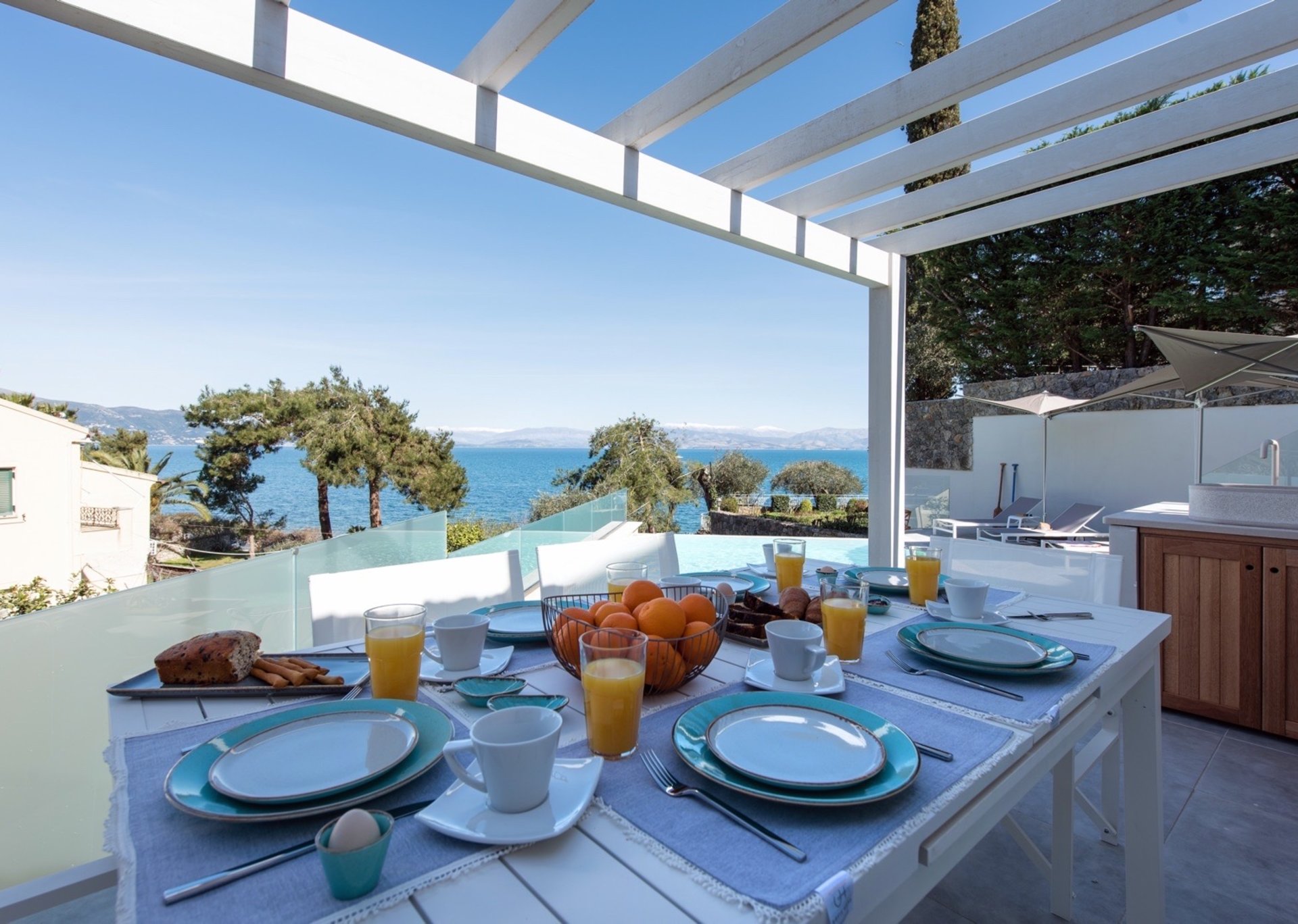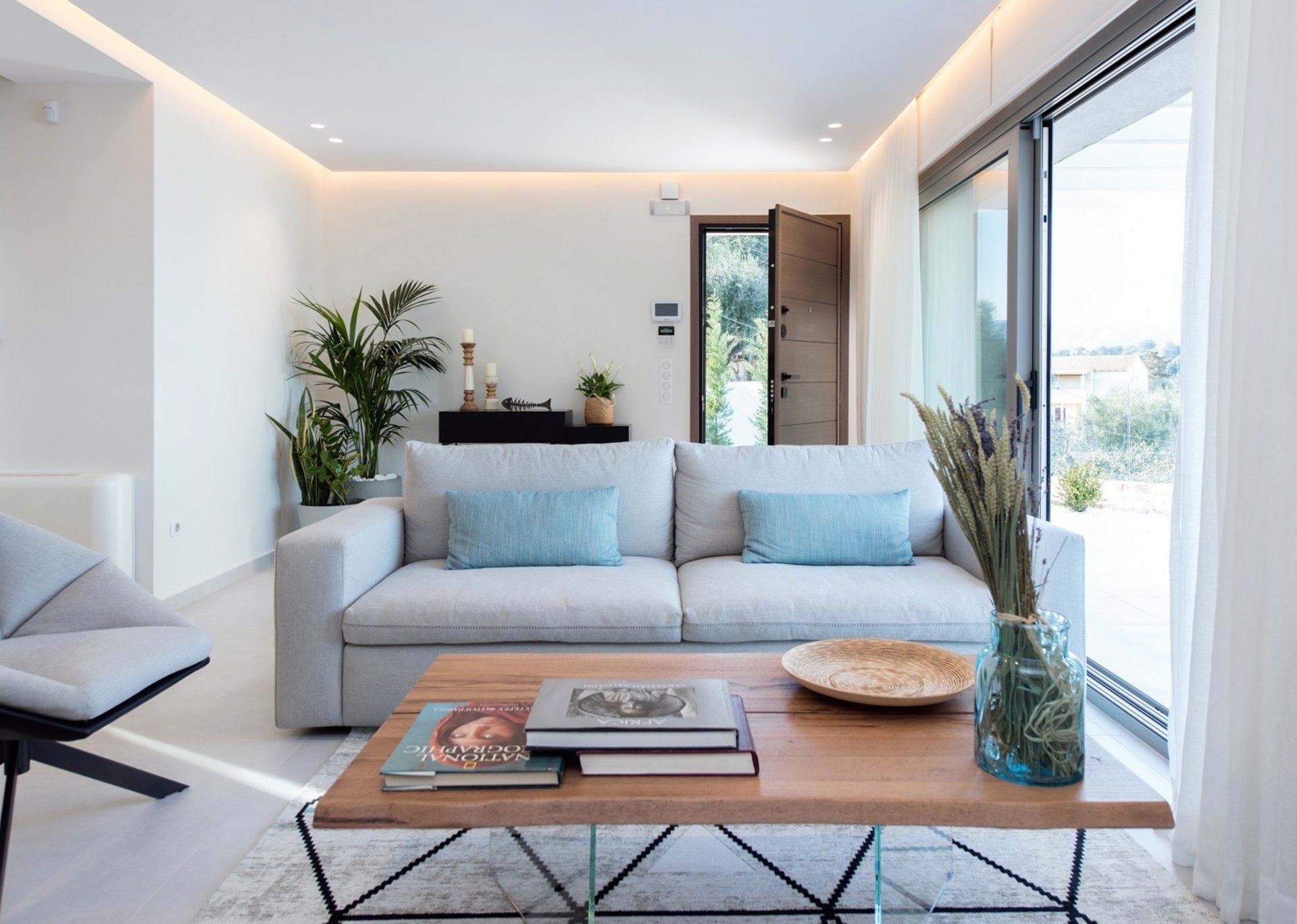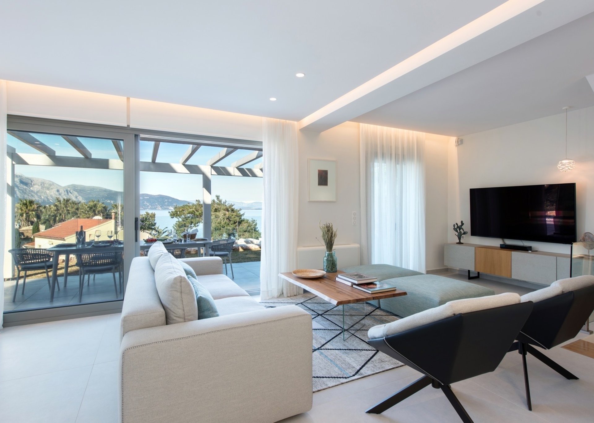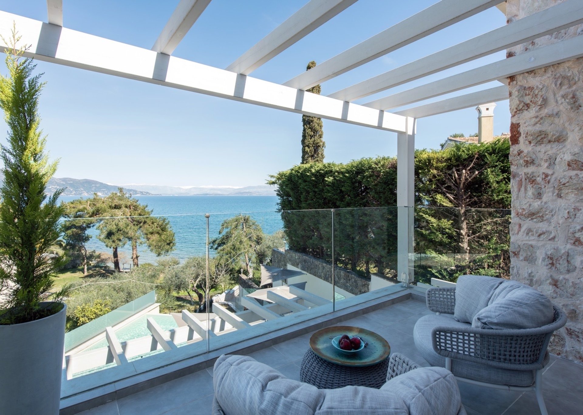 Located just 7 km from Corfu town, Villa Aurelia is a luxurious retreat that offers an ideal vacation experience for up to 6+2 guests. The villa features a minimalist interior with a palette of grey and white that exudes luxury and openness. Furthermore, the outdoor spaces comprise a swimming pool, a stone patio, and a pergola.