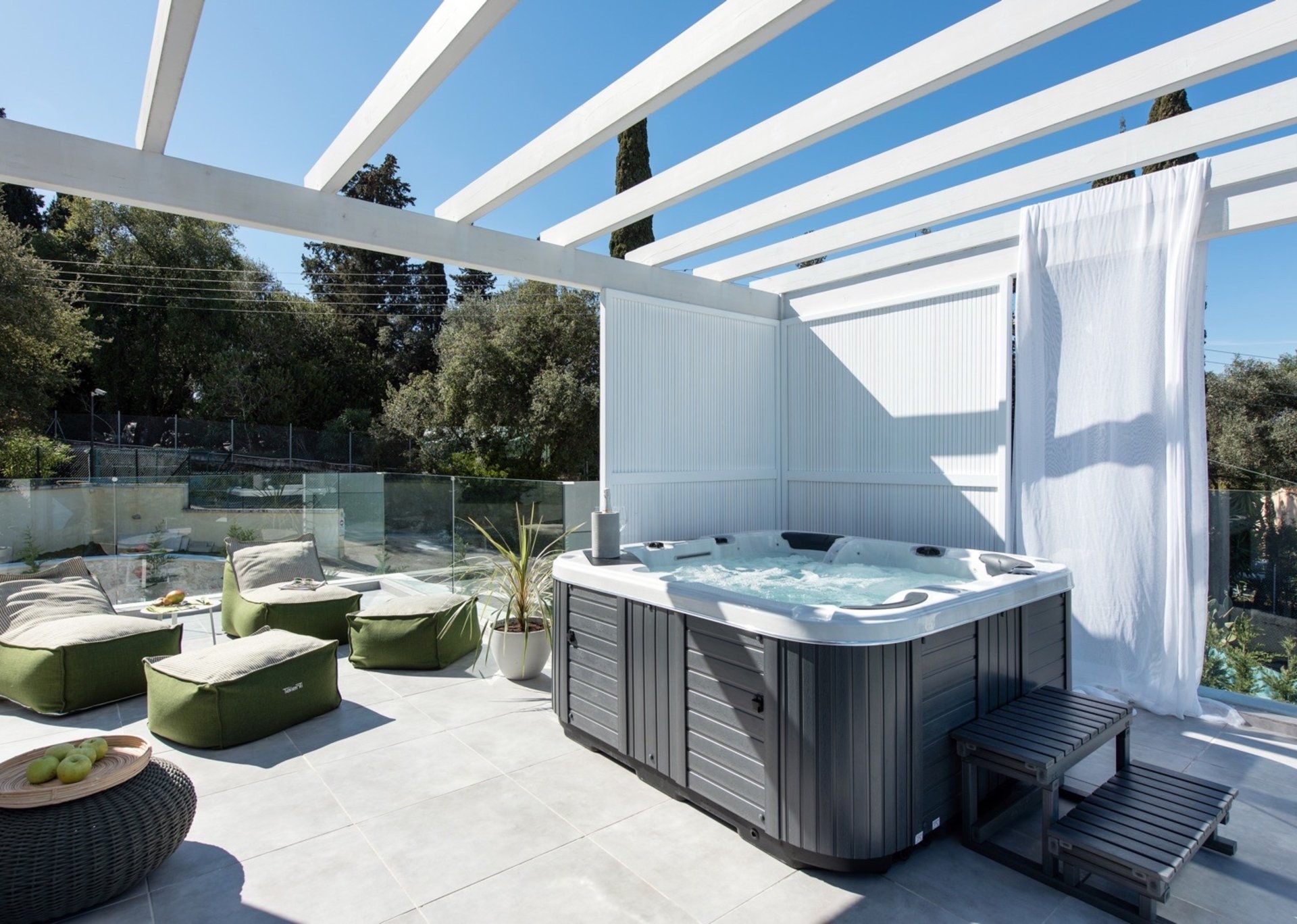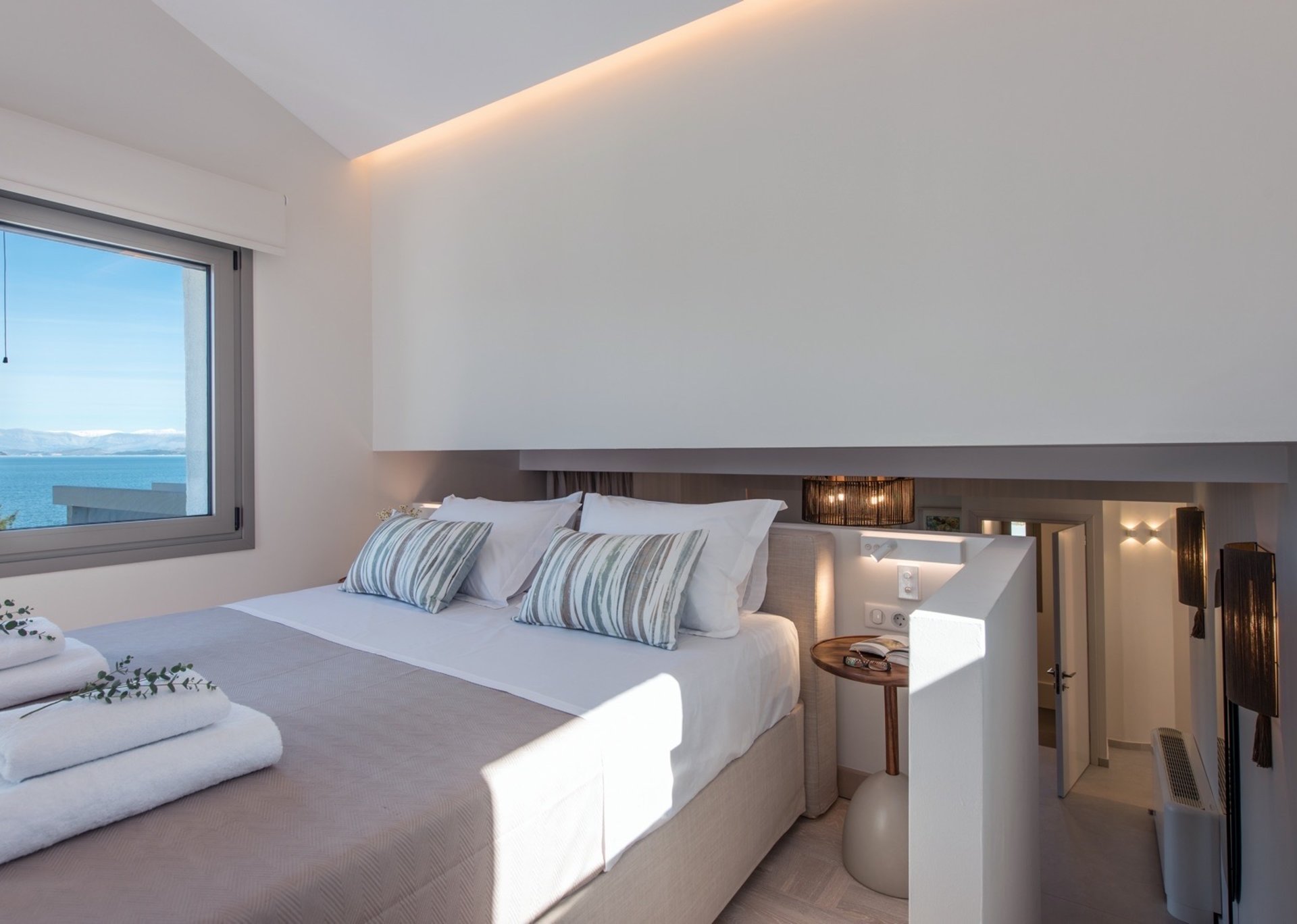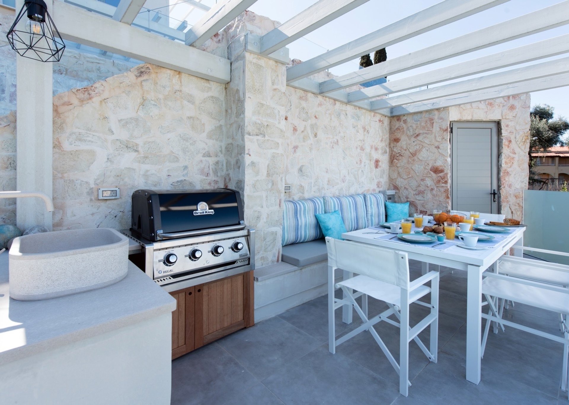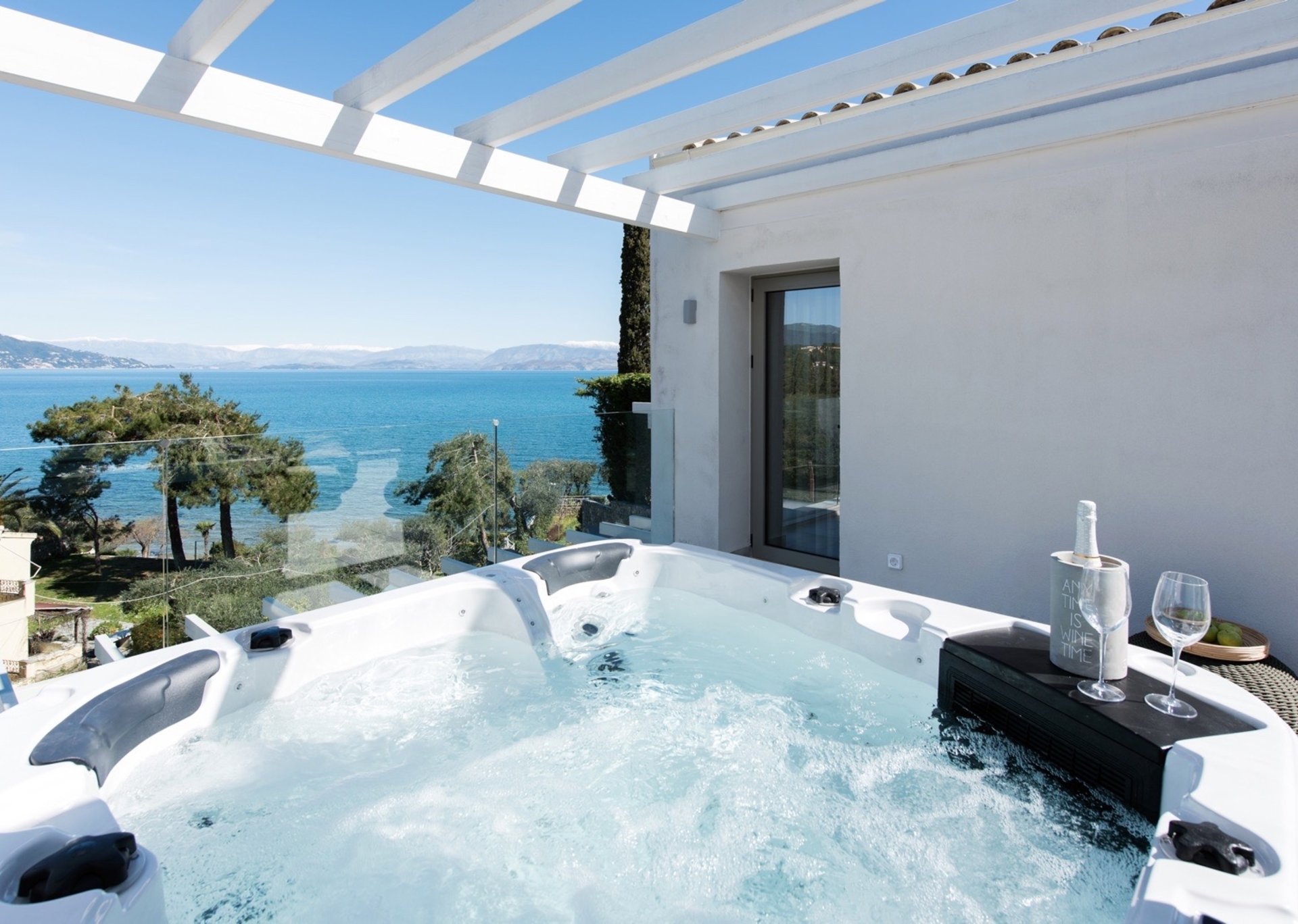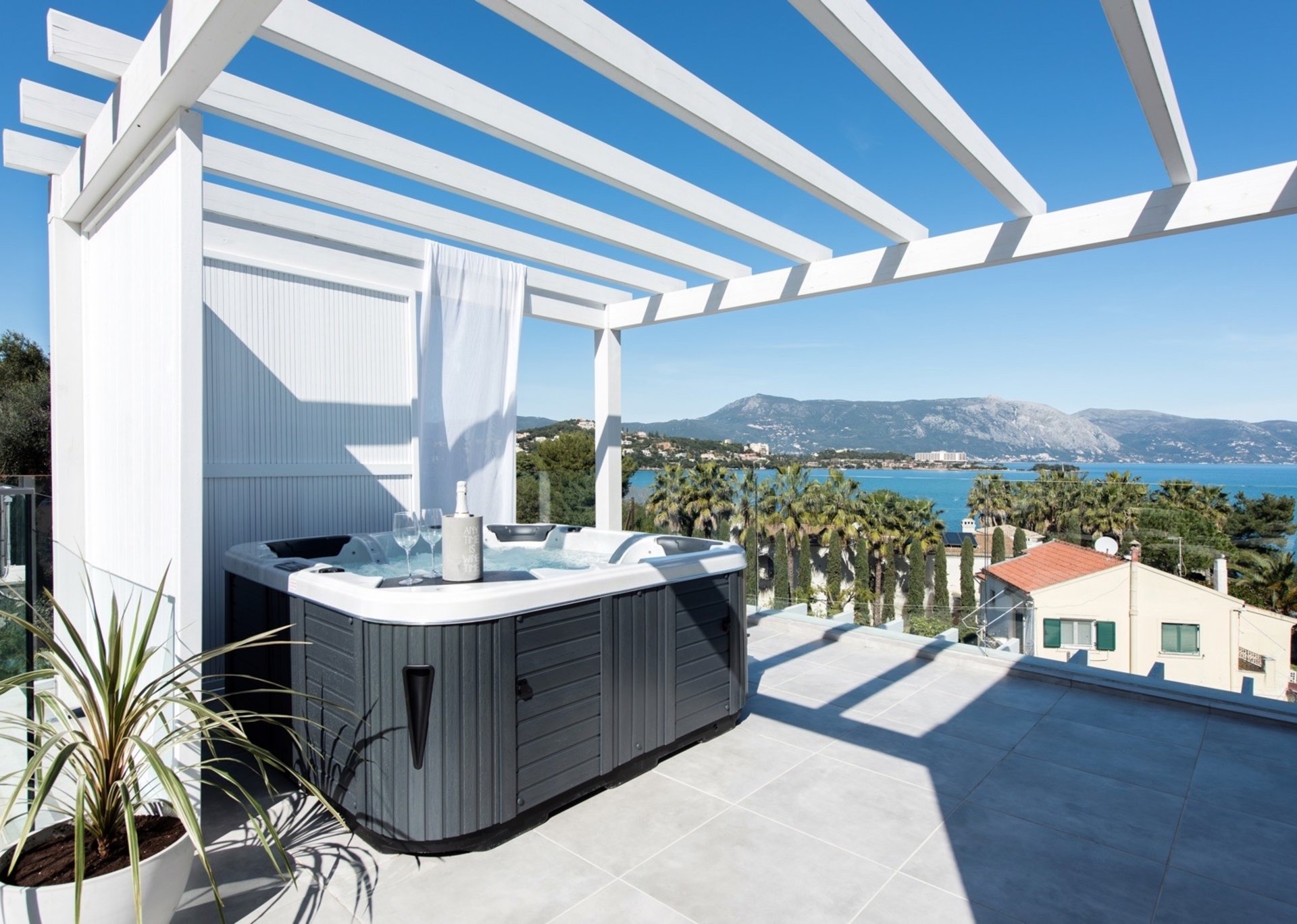 Located just 7 km from Corfu town, Villa Aurelia is a luxurious retreat that offers an ideal vacation experience for up to 6+2 guests. The villa features a minimalist interior with a palette of grey and white that exudes luxury and openness. Furthermore, the outdoor spaces comprise a swimming pool, a stone patio, and a pergola.
