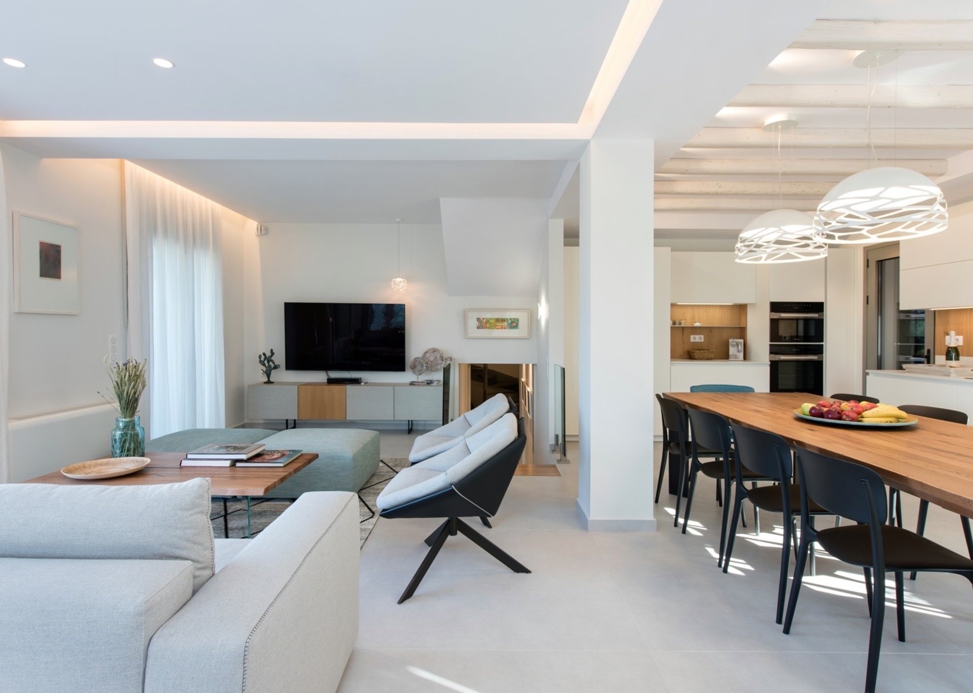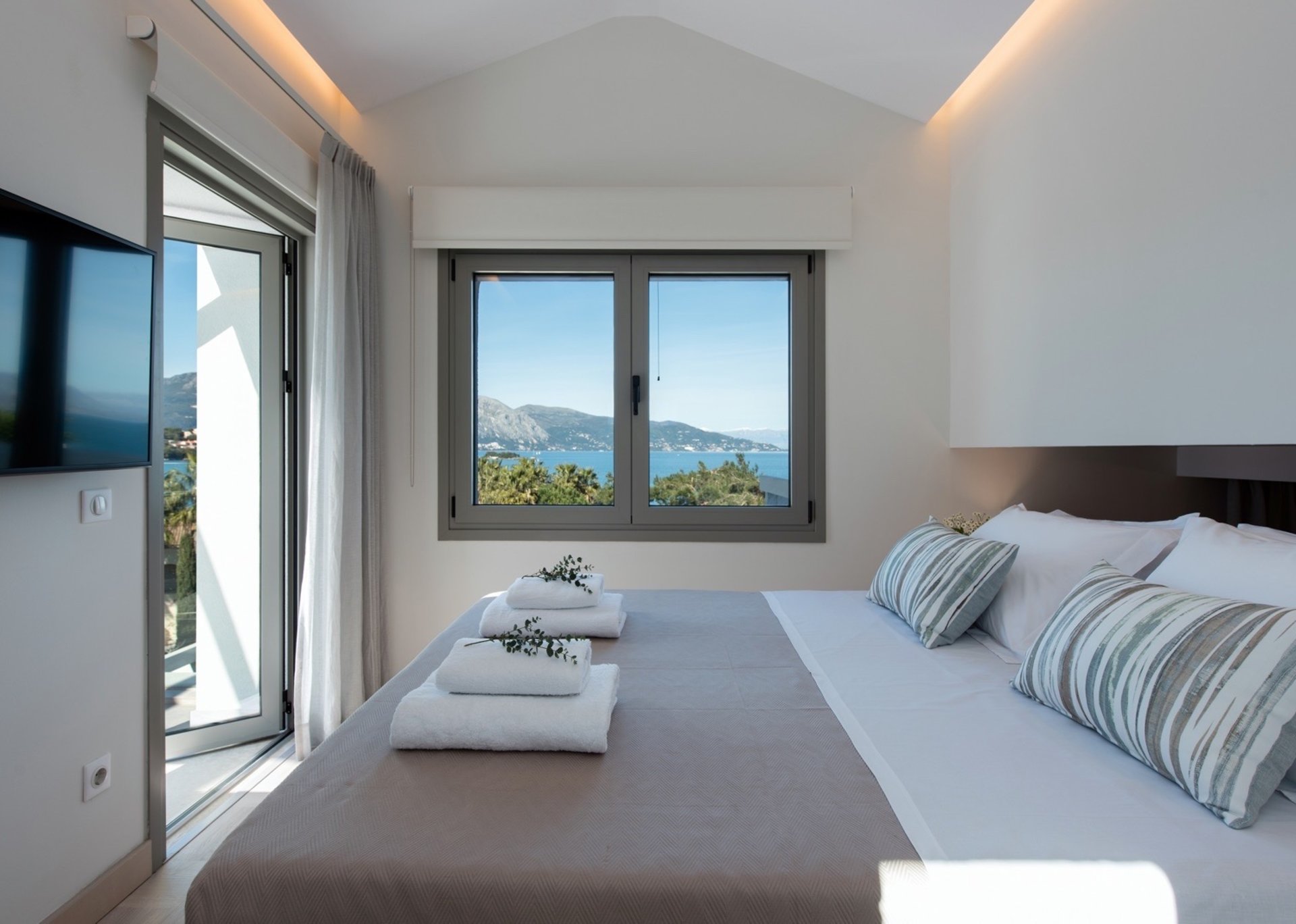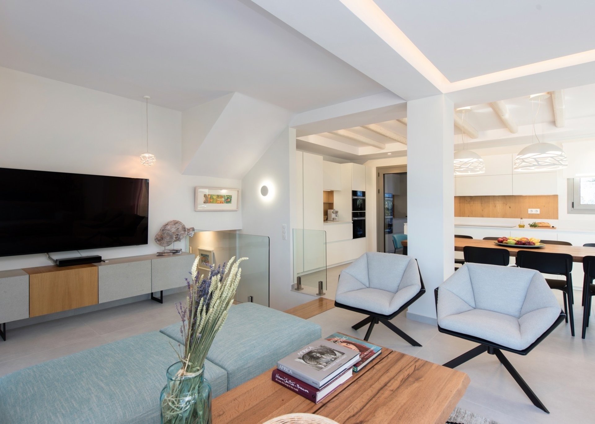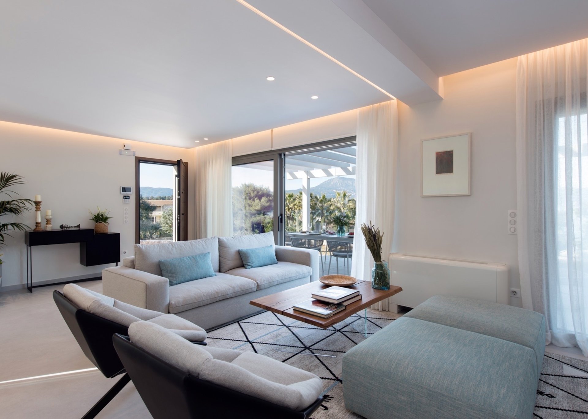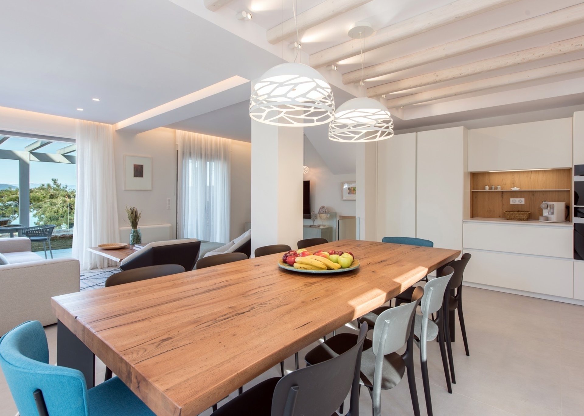 Located just 7 km from Corfu town, Villa Aurelia is a luxurious retreat that offers an ideal vacation experience for up to 6+2 guests. The villa features a minimalist interior with a palette of grey and white that exudes luxury and openness. Furthermore, the outdoor spaces comprise a swimming pool, a stone patio, and a pergola.