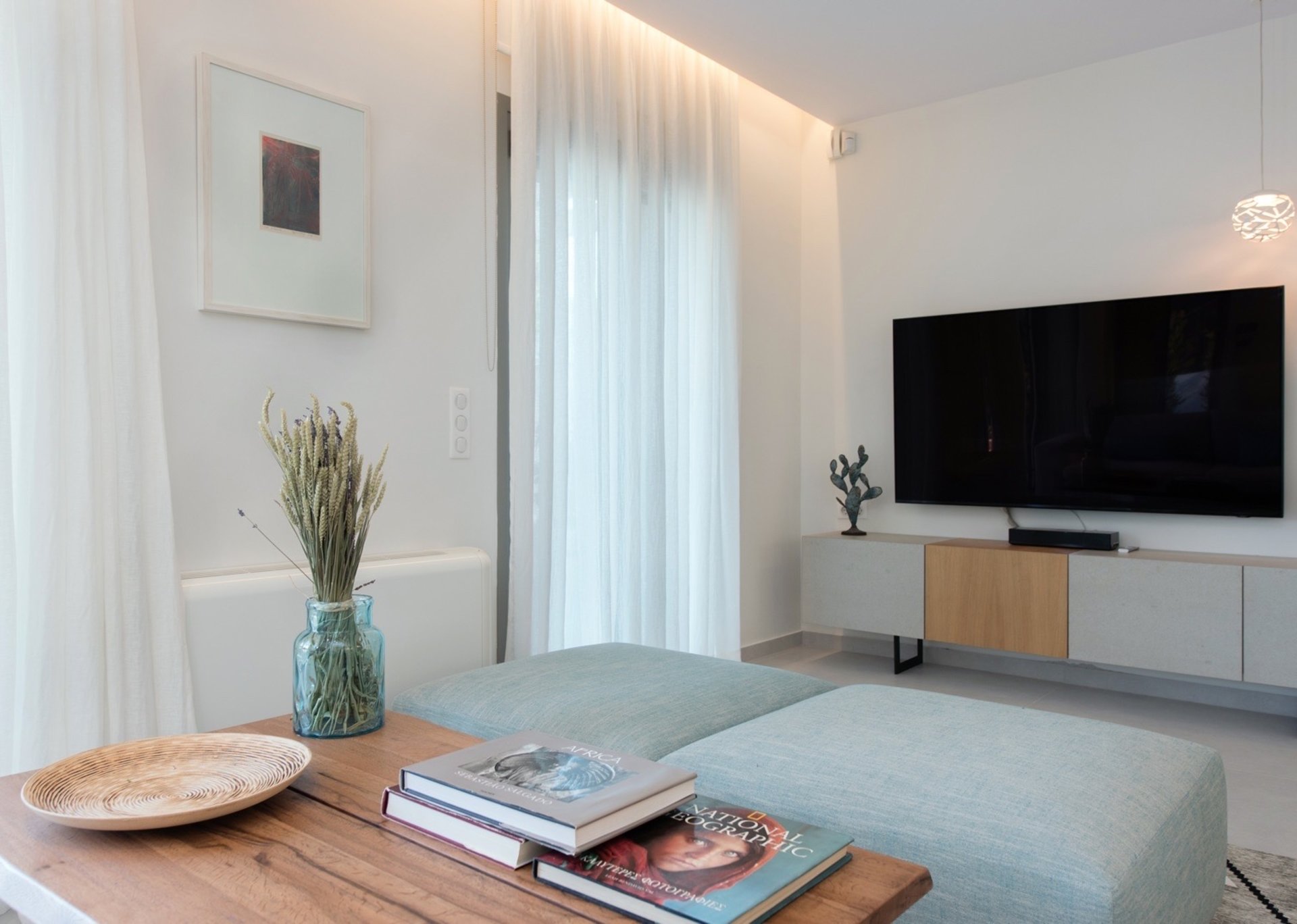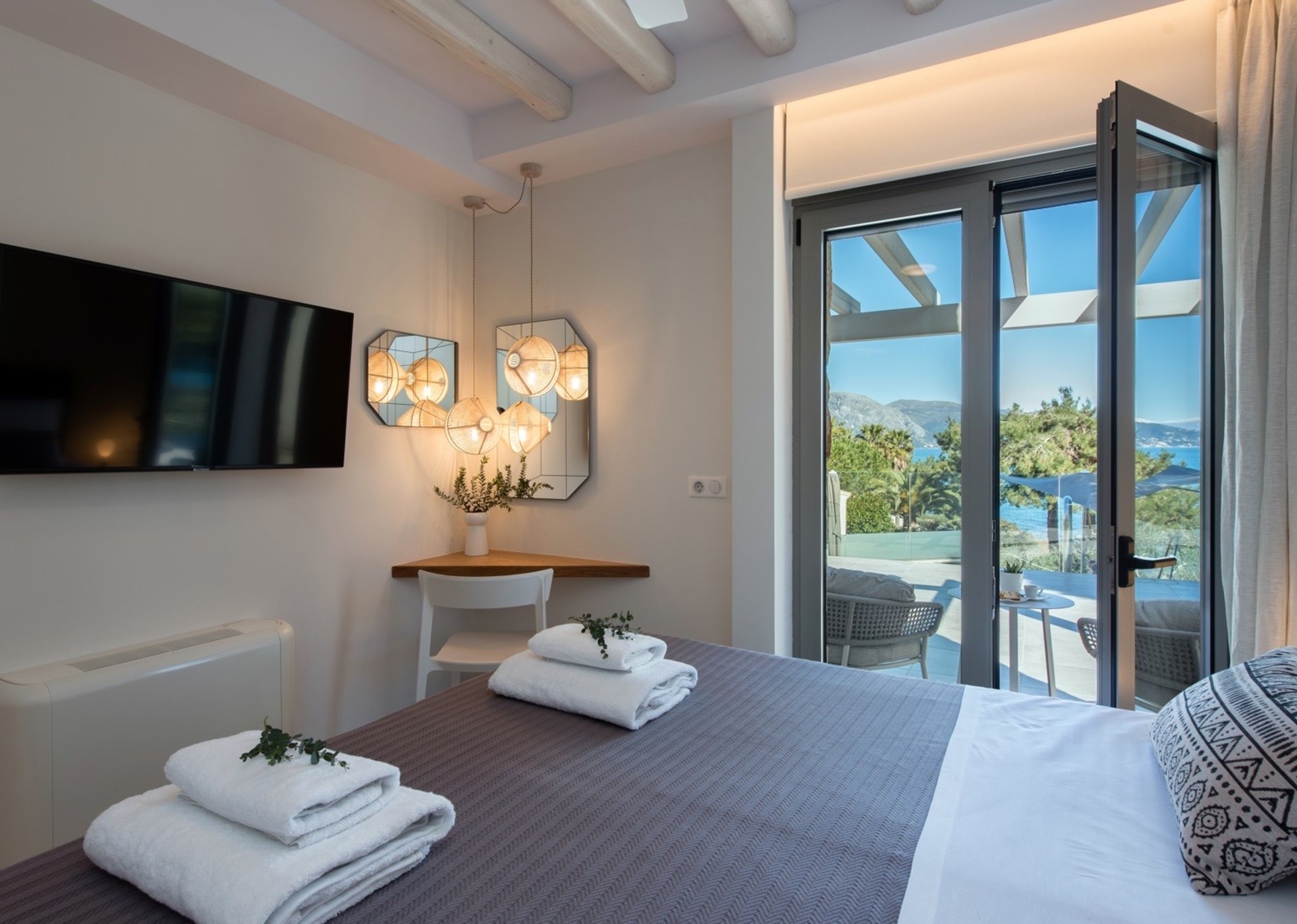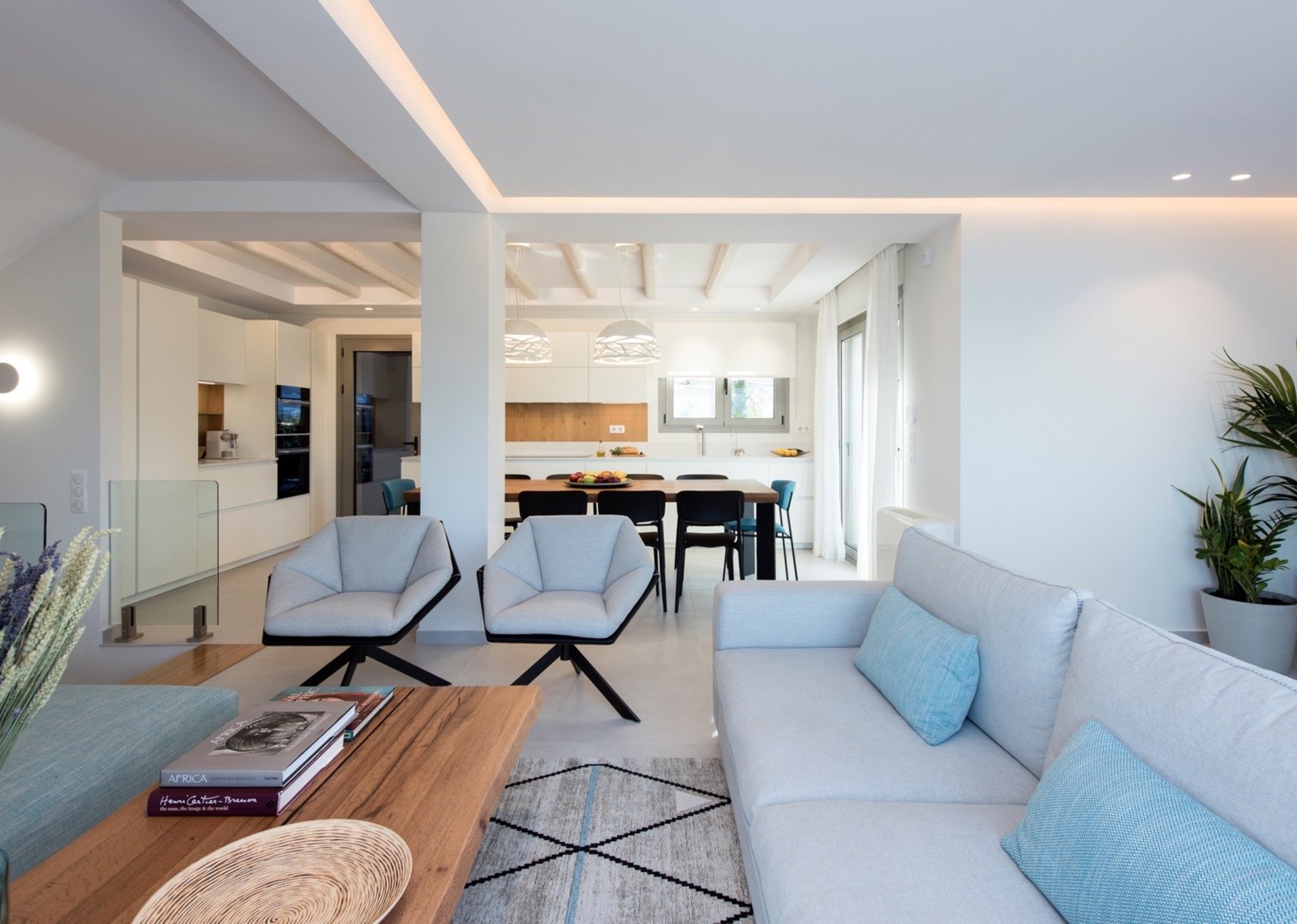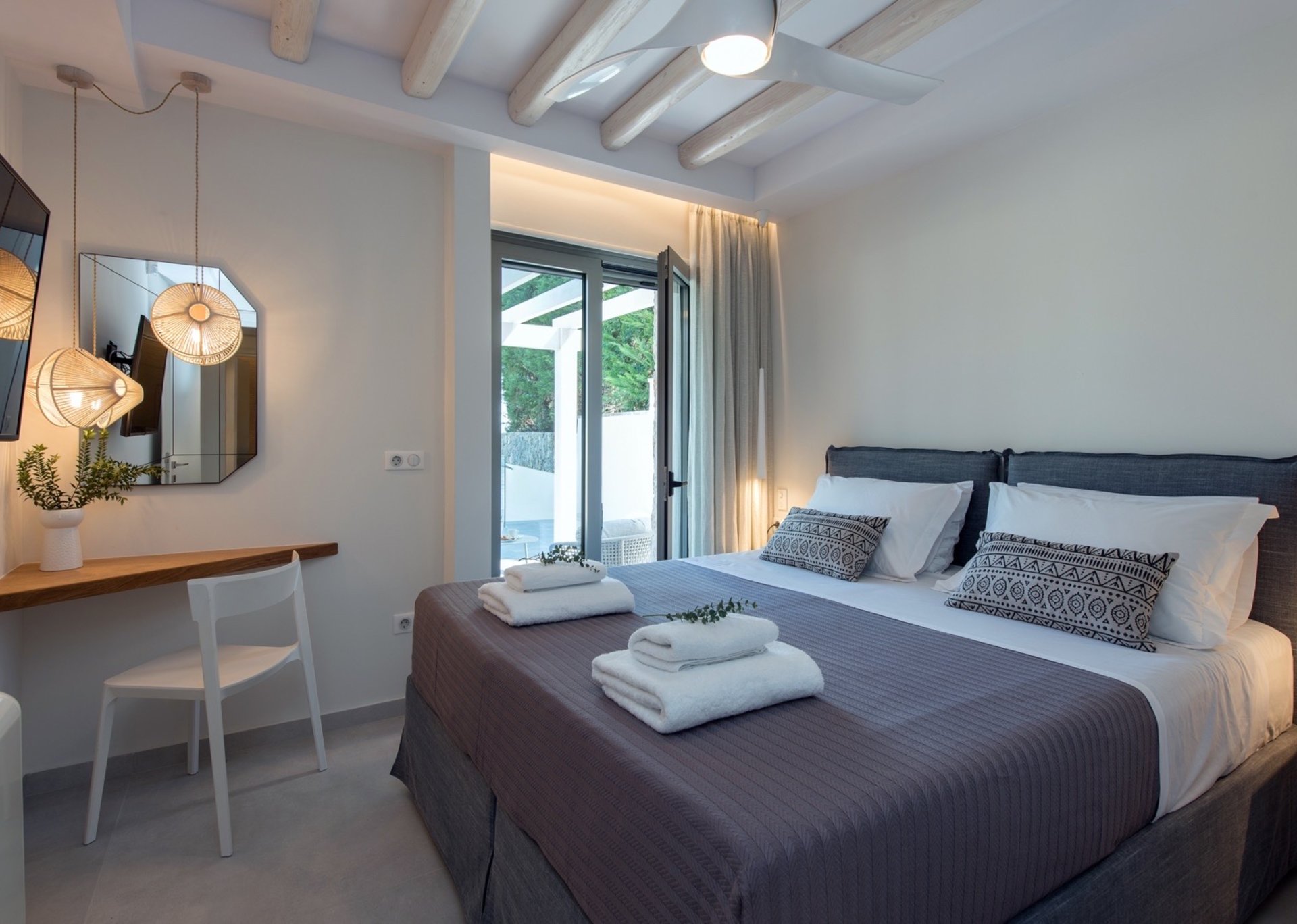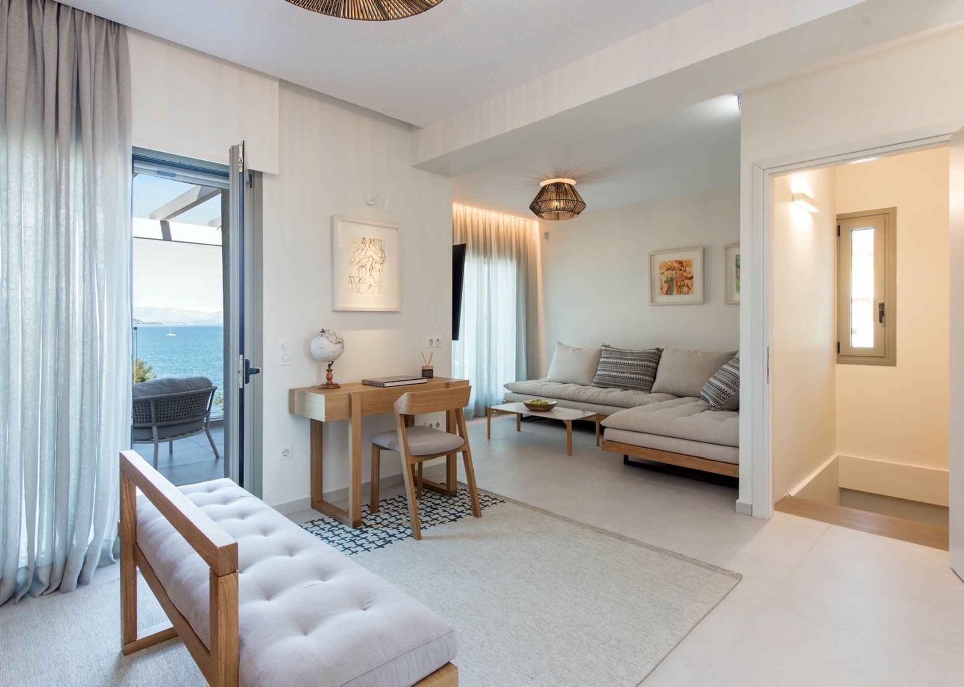 Located just 7 km from Corfu town, Villa Aurelia is a luxurious retreat that offers an ideal vacation experience for up to 6+2 guests. The villa features a minimalist interior with a palette of grey and white that exudes luxury and openness. Furthermore, the outdoor spaces comprise a swimming pool, a stone patio, and a pergola.
