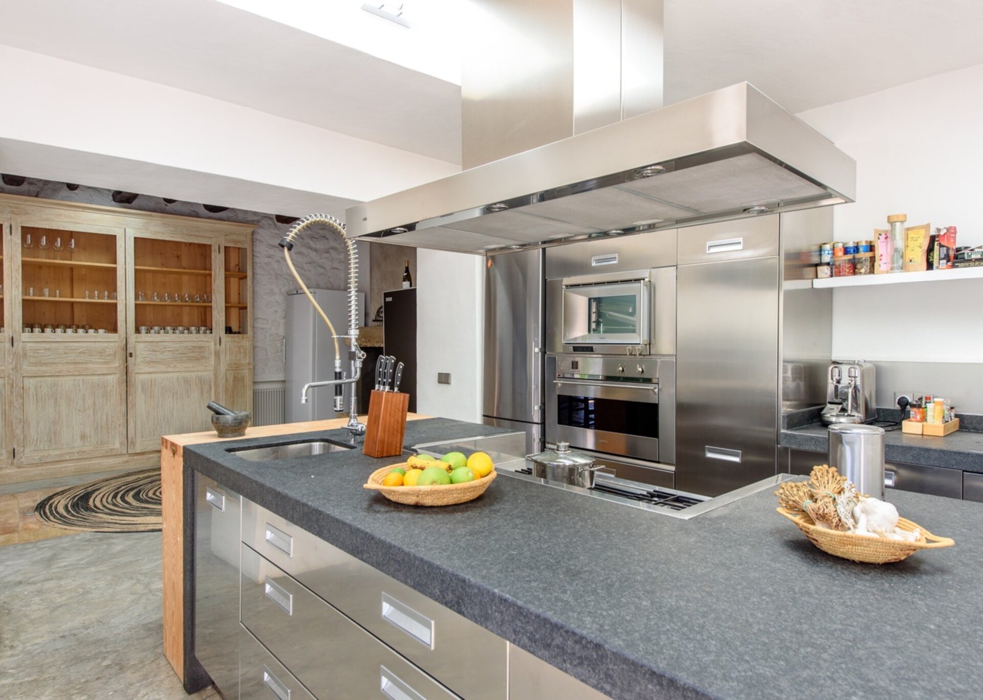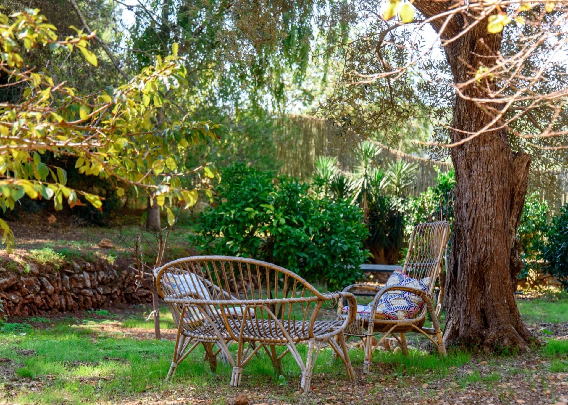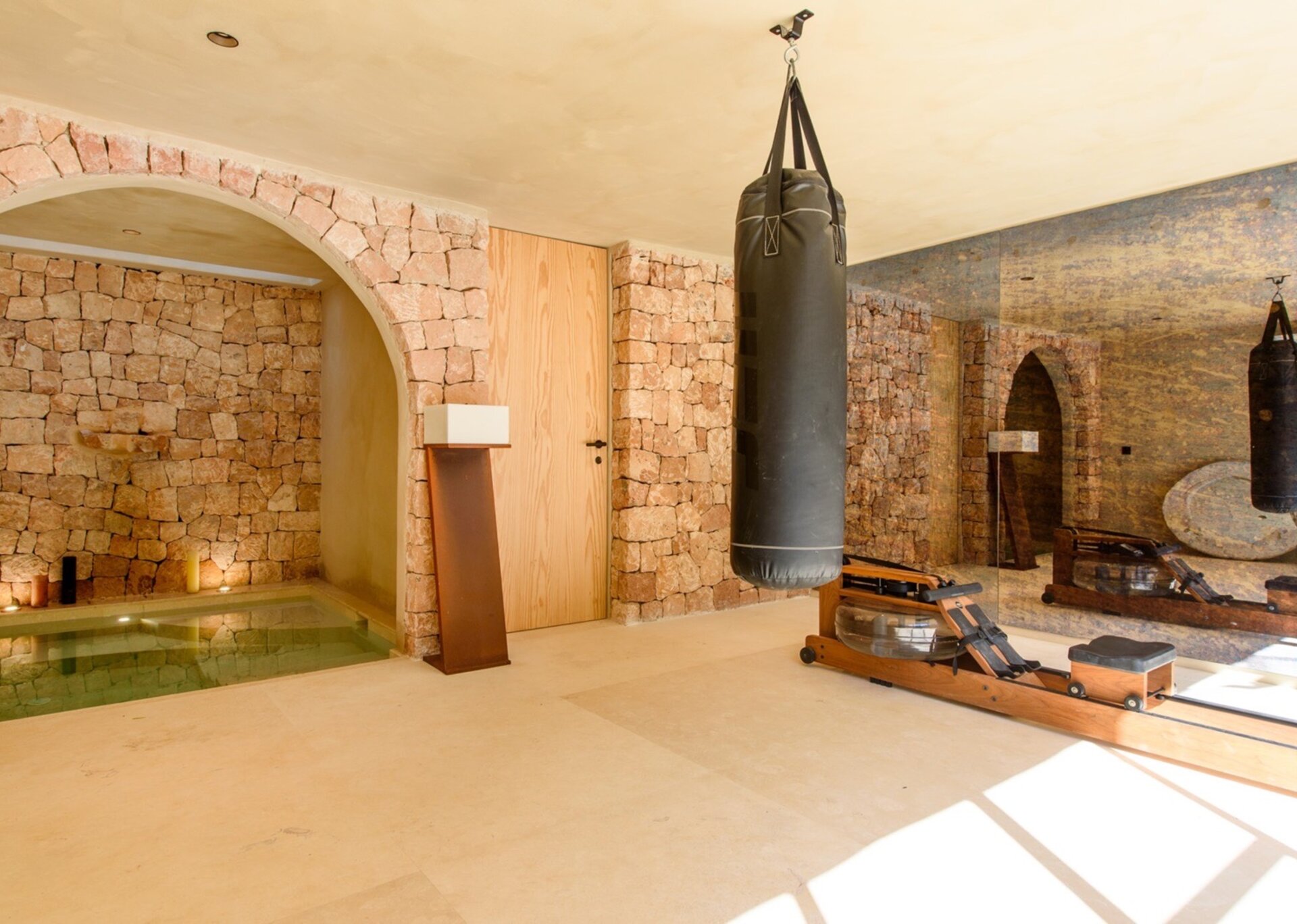 This traditional farmhouse showcases restored stone-masonry accents, wooden-beamed verandas, and whitewashed walls. The interiors boast minimalist design, elegantly complemented by neutral colors and hints of traditional Ibizan style. The bright, open-plan spaces, cozy lounge area, and fully equipped modern kitchen, serving an impressive dining area with breathtaking countryside and garden views, are all furnished to impeccable standards, embodying warmth and luxury.