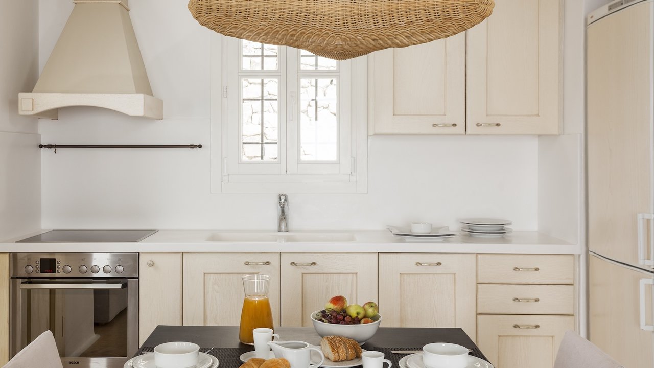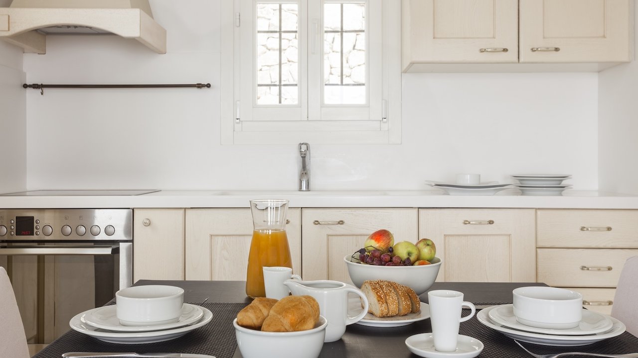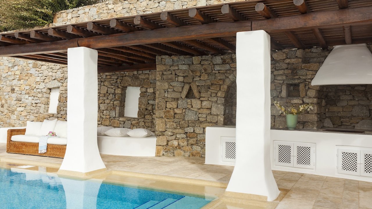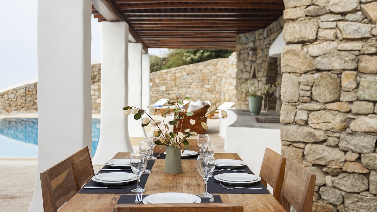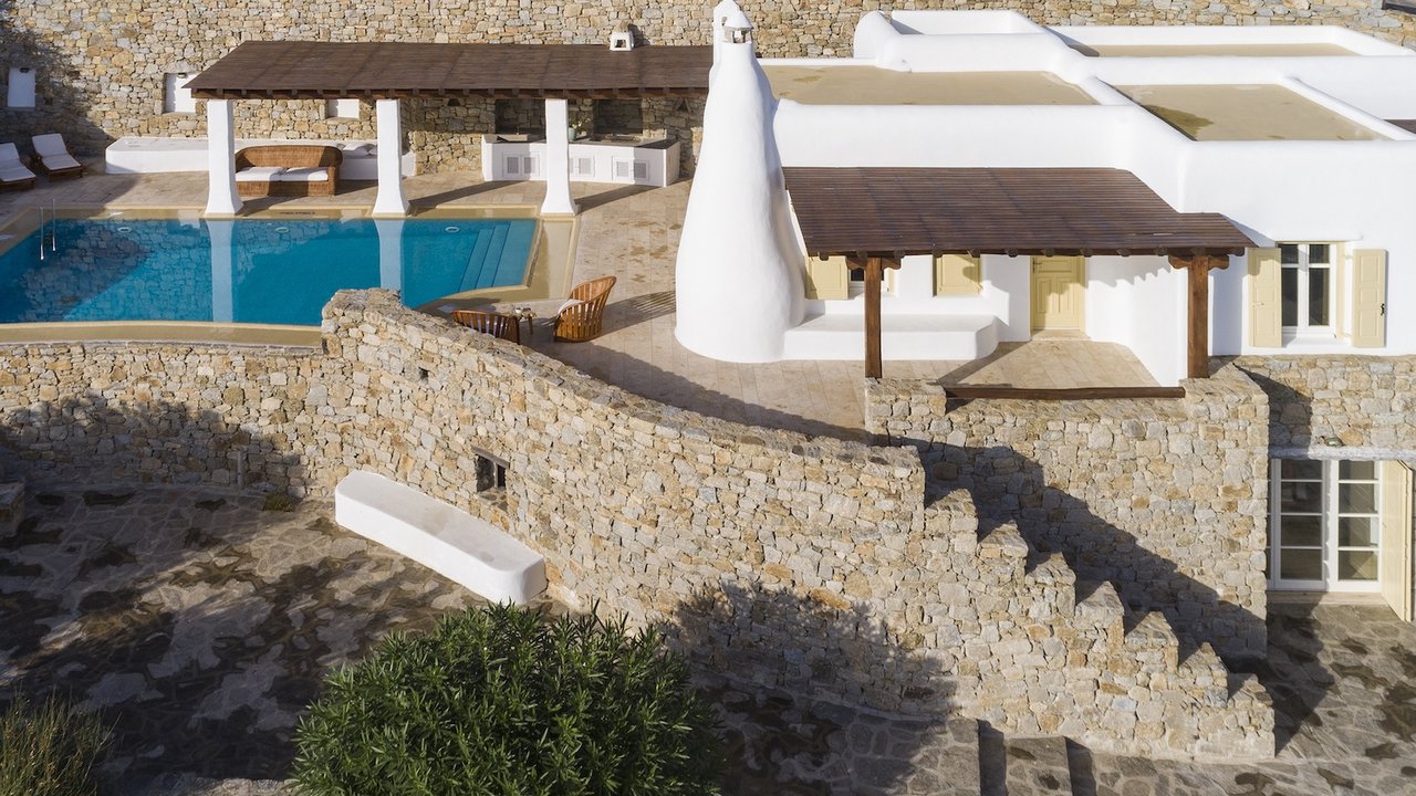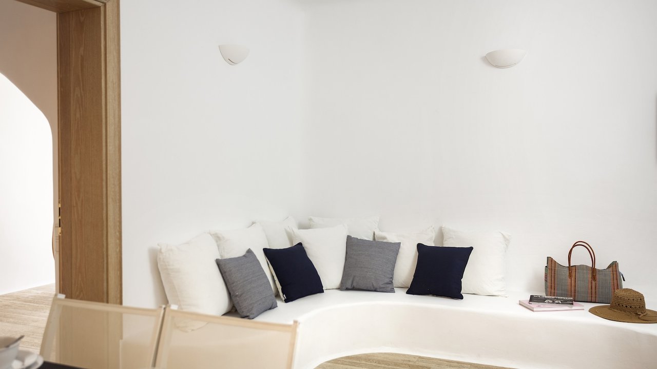 Villa Aventura is perched a top the Mykonos private 11-Villa Resort and enjoys a bird’s eye view of the islands of Delos (where it is alleged Apollo was born) and Rhenea, a majestic drop to the sea and the picture-perfect Mykonos sunset. Villa Aventura boasts an outdoor BBQ and an outdoor dining & lounging area (sunny & shady all day long)- all in front of the 75m2 infinity pool that flows off into the Aegean horizon- and you are still less than a two-minute walk to the sea (still within the resort). Villa Aventura is uniquely ideal for couples, or families with older children vacationing together, who still want some privacy. A main entrance, dining room, living room and kitchen, on the pool level, leads to 2 bedrooms that share a bathroom. Through a separate entrance, on the ground level, is a large bedroom, a kitchenette, living-dining area and a bathroom. The brilliant white interiors and exteriors and the subtle tasteful decorations reflect the Mykonian-elegance the island is known for, so you can totally immerse yourself in the spirit of the island. The refurbished luxury estate has daily, complimentary maid service-so you don’t lift a finger, 24/7 CCTV monitoring at the periphery of the estate- so unauthorized people are detectable, Netflix- to quench your thirst for relaxed adventure, flat screen TVs- so everyone can watch, back-up generators- to face the frequent local electric shortages, a desalination plant- so you can ignore the frequent local water shortages, and a 24/7 gate-access control. The pool can be heated for a fee.