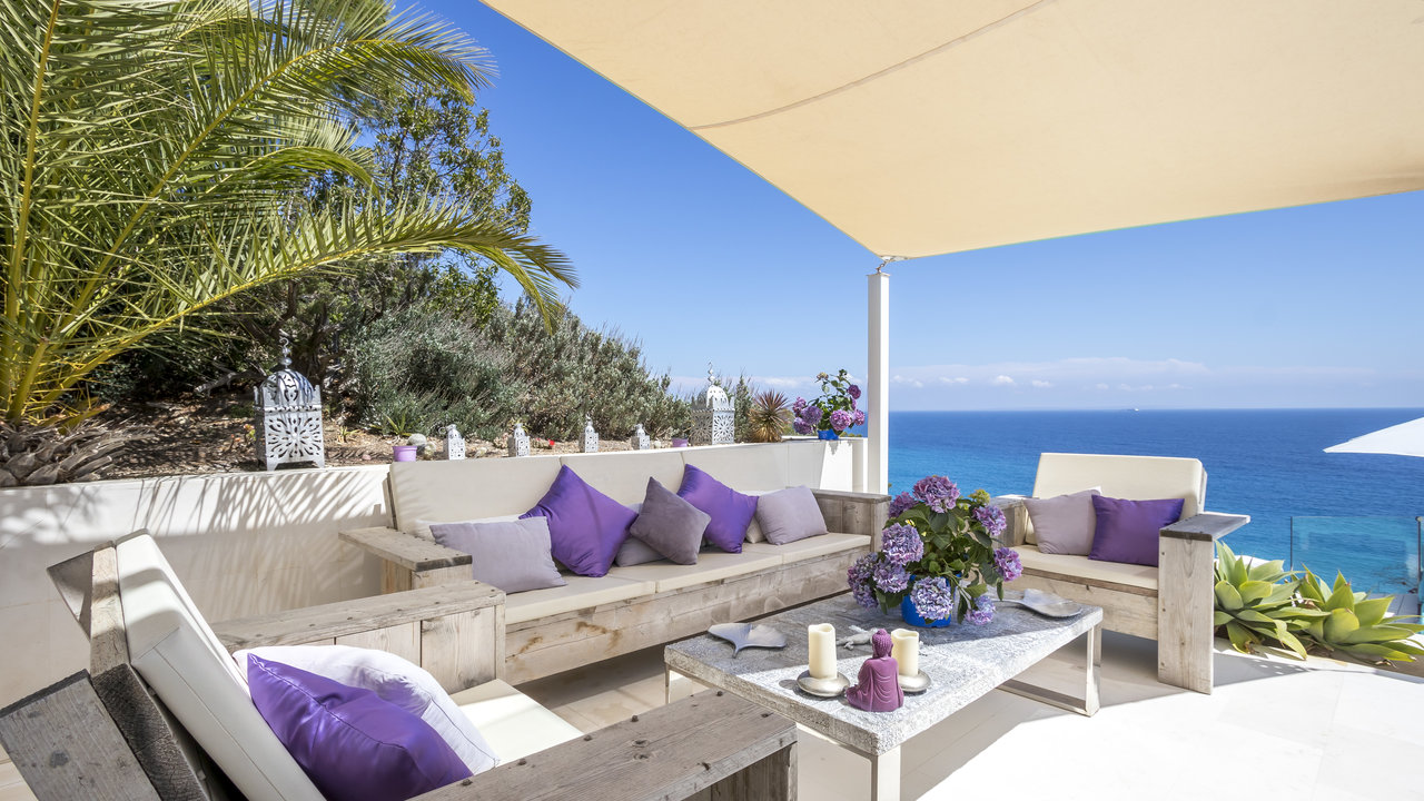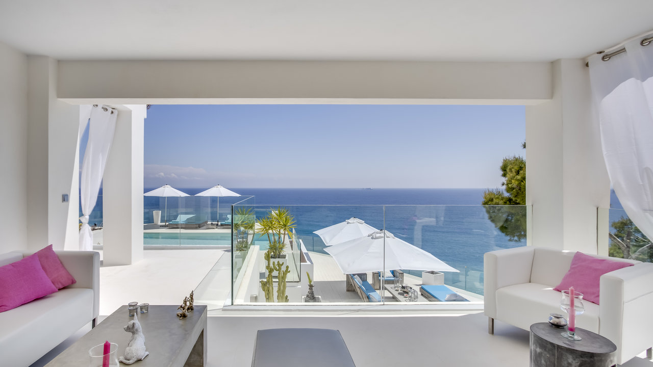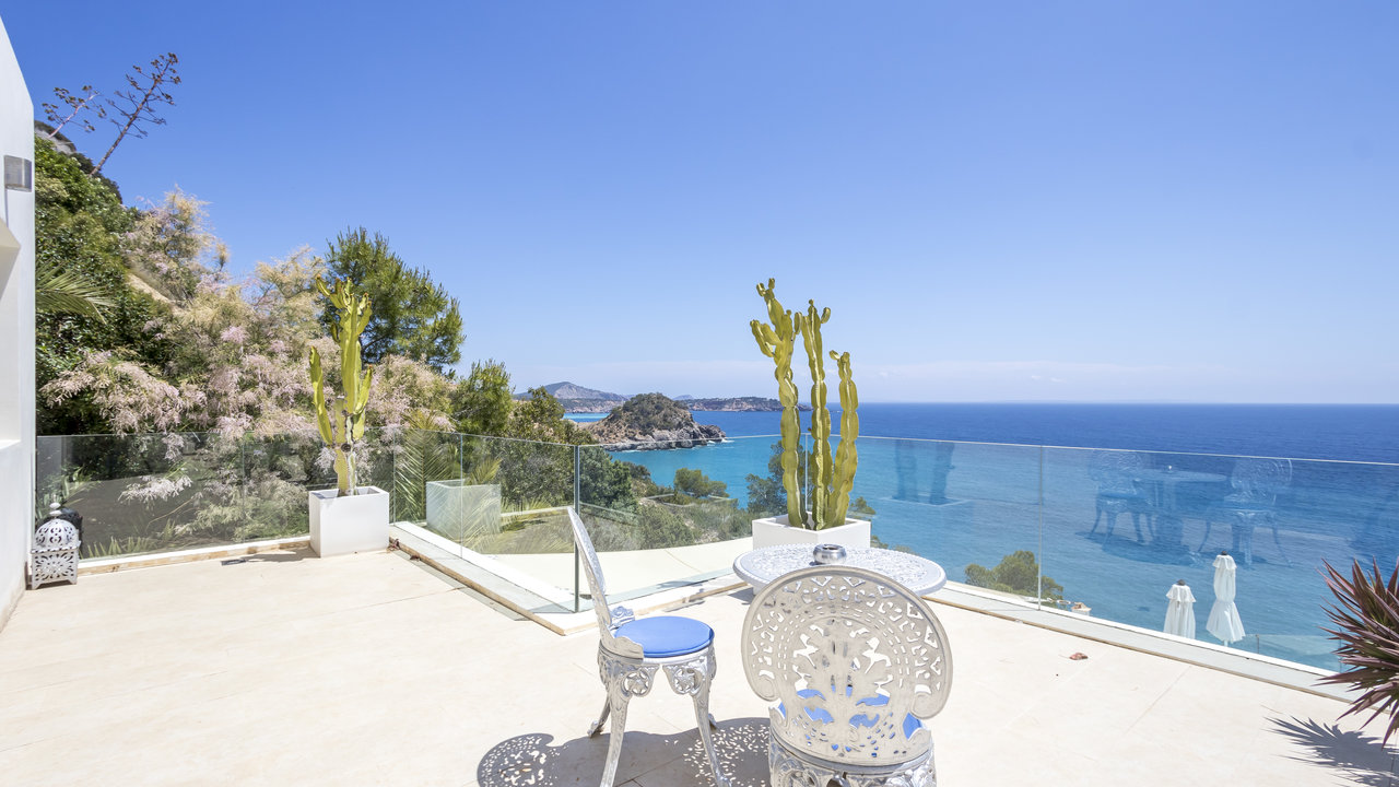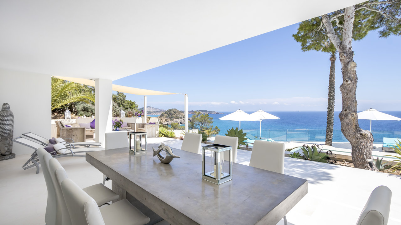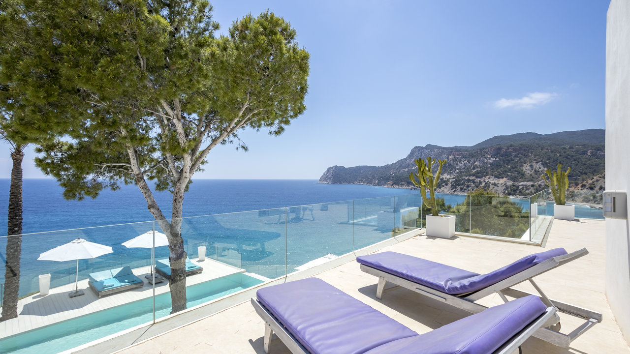 Villa Azalea stands atop a small cliff in Es Cubells at the southern side of Ibiza, just a few minutes away from the village of San José and Ibiza Town.