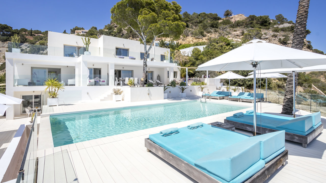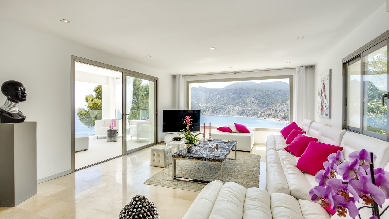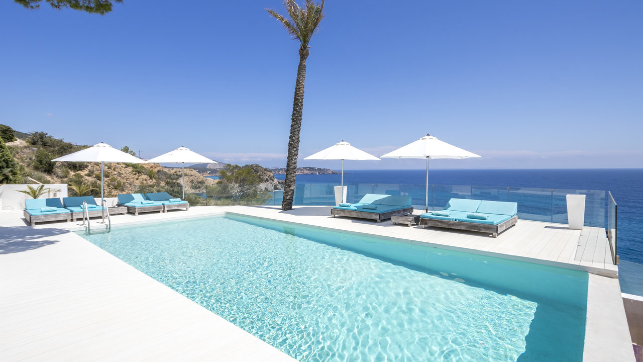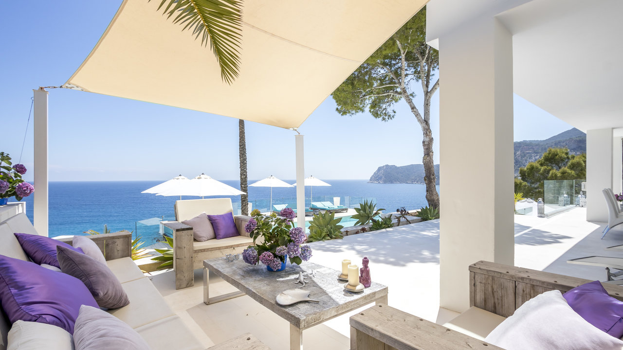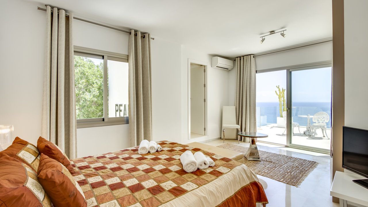 Villa Azalea stands atop a small cliff in Es Cubells at the southern side of Ibiza, just a few minutes away from the village of San José and Ibiza Town.
