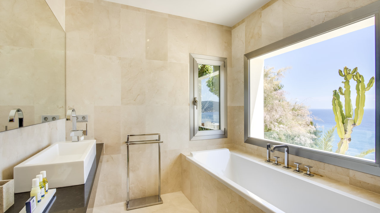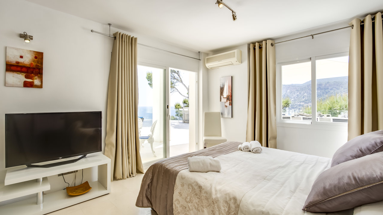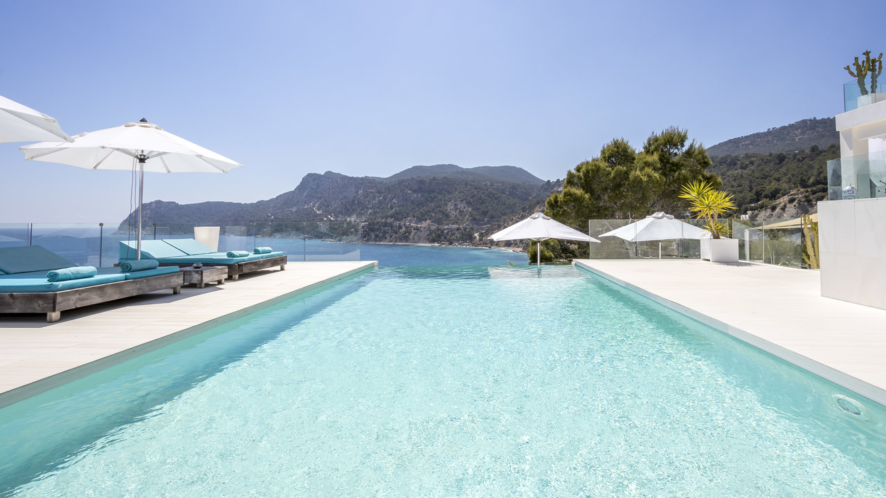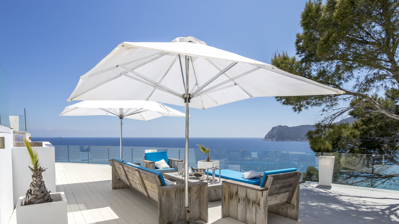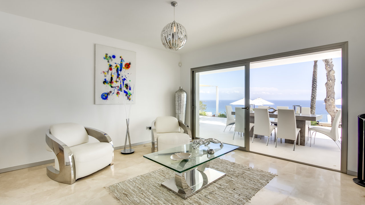 Villa Azalea stands atop a small cliff in Es Cubells at the southern side of Ibiza, just a few minutes away from the village of San José and Ibiza Town.