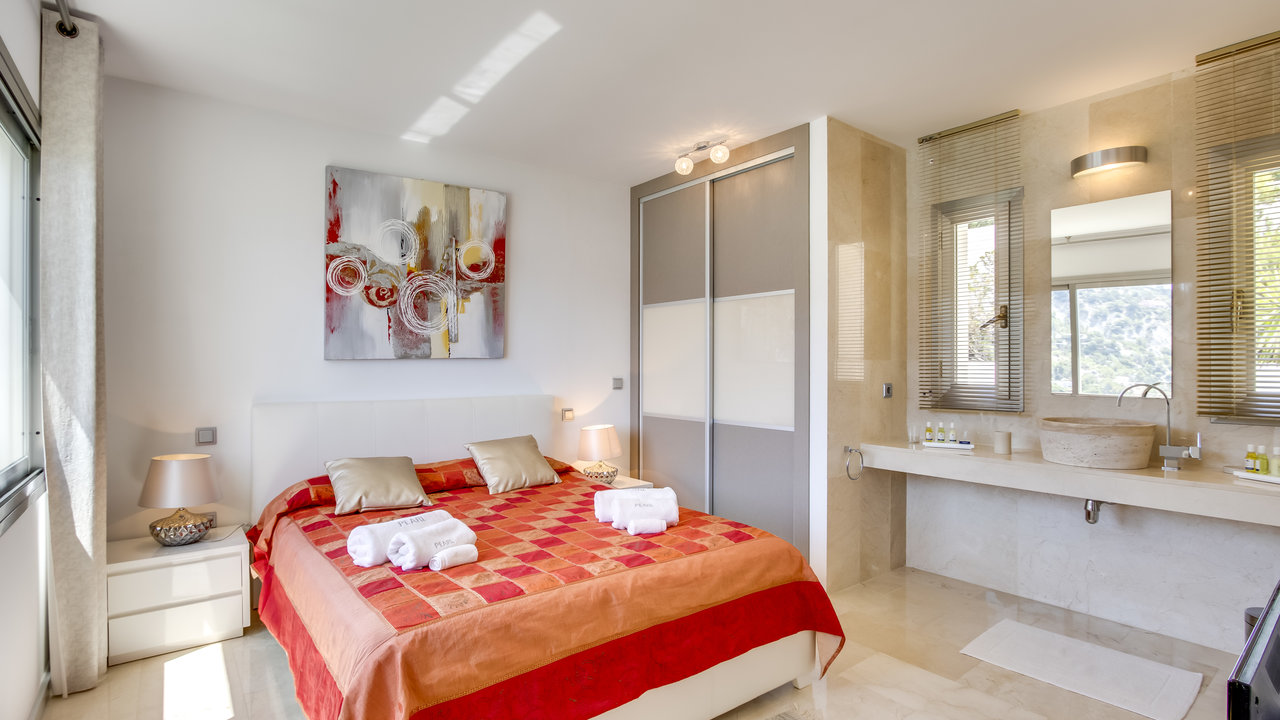 Villa Azalea interior features a spacious living room, a bright dining room and a modern kitchen and can accommodate up to 12 guests in 6 double bedrooms with ensuite bathrooms.