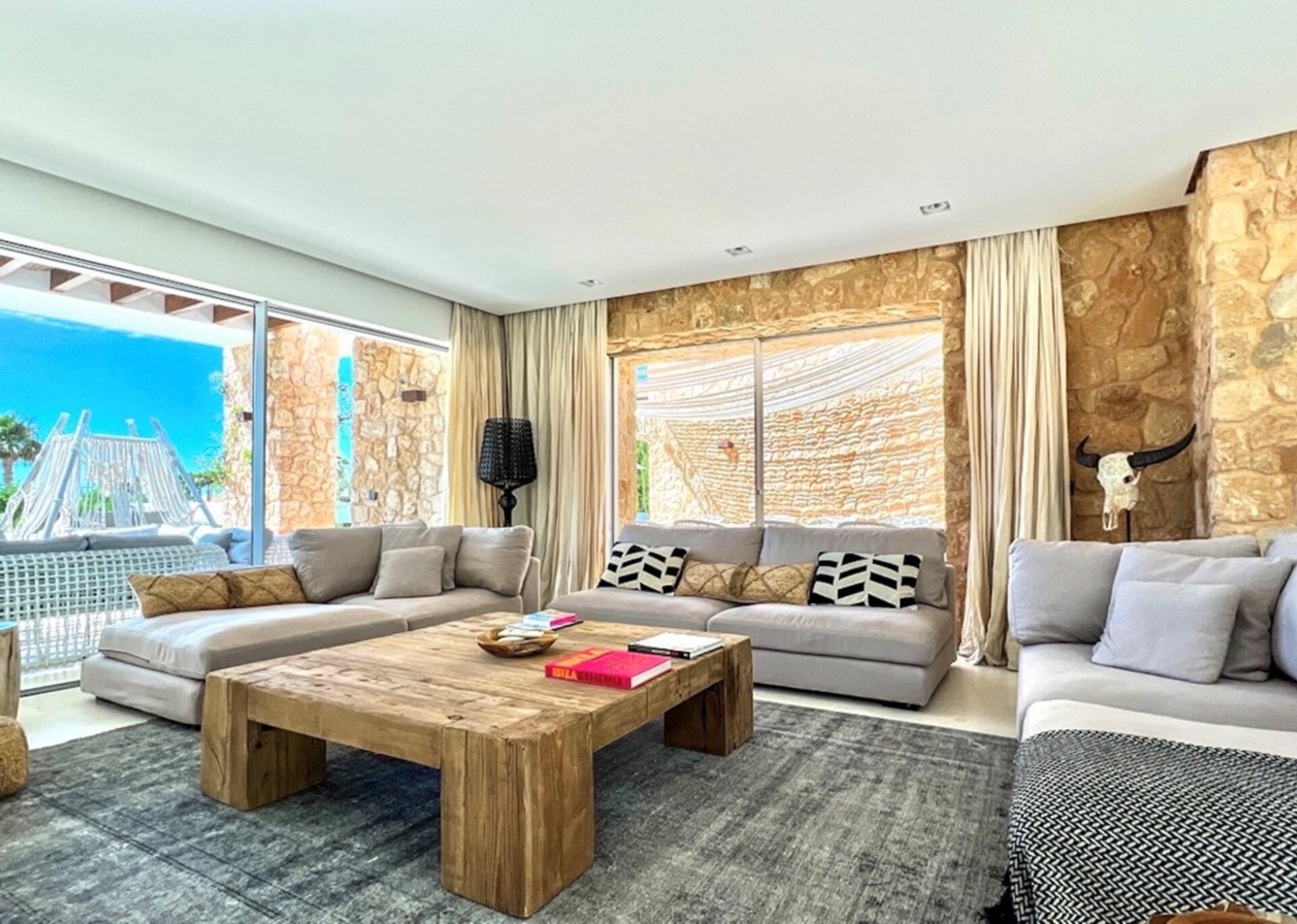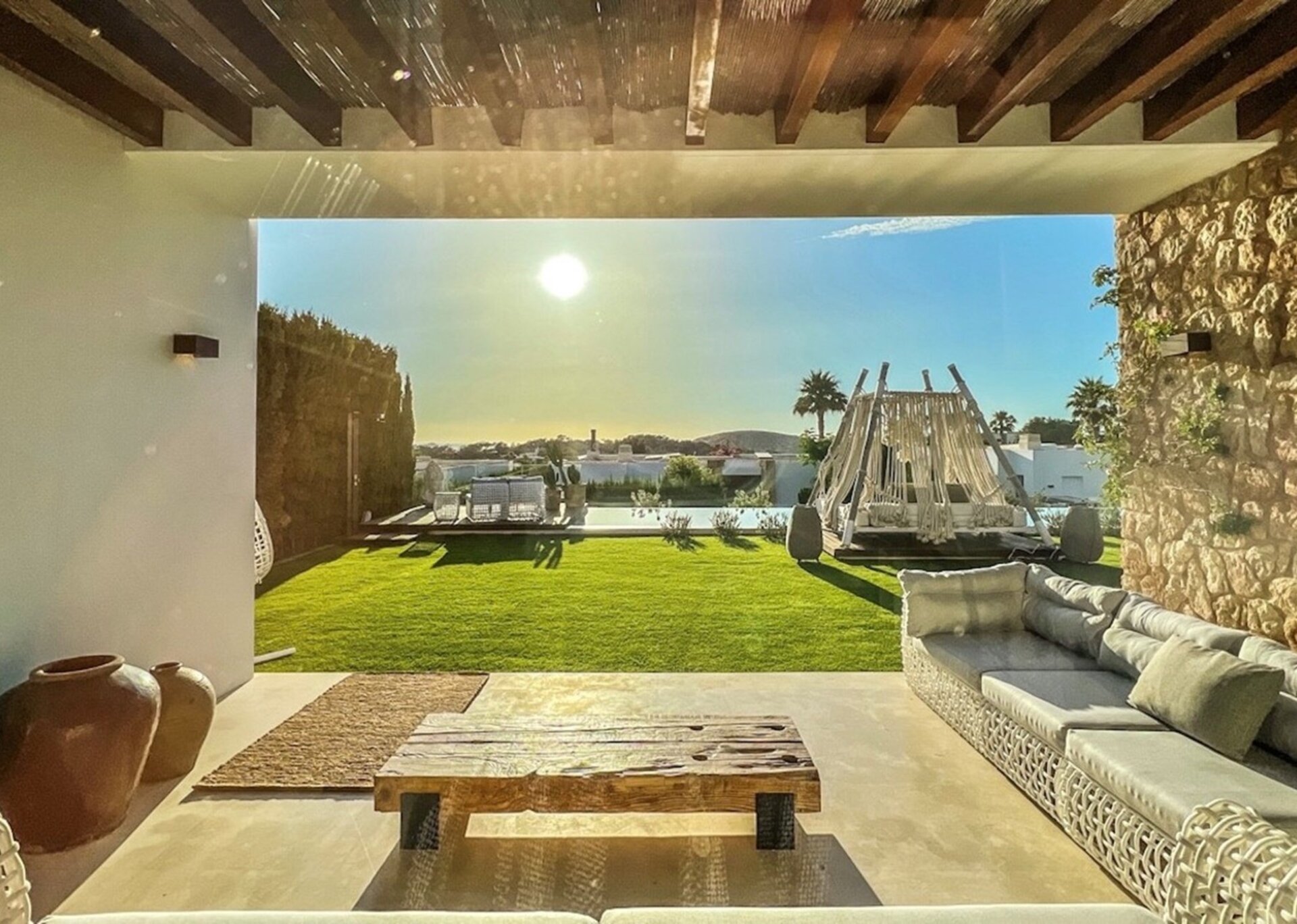 Villa Aziz is an exquisite modern villa boasting four bedrooms, just a stone's throw away from the beloved Cala Conta beach. This idyllic setting is home to the renowned Sunset Ashram restaurant, where you can revel in the breathtaking Ibizan sunset.