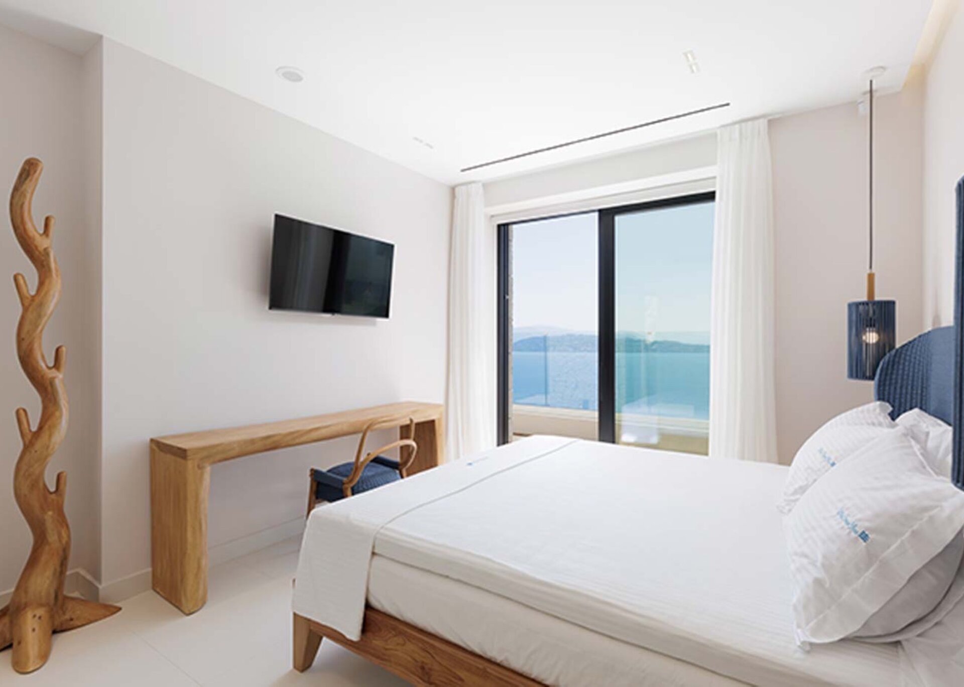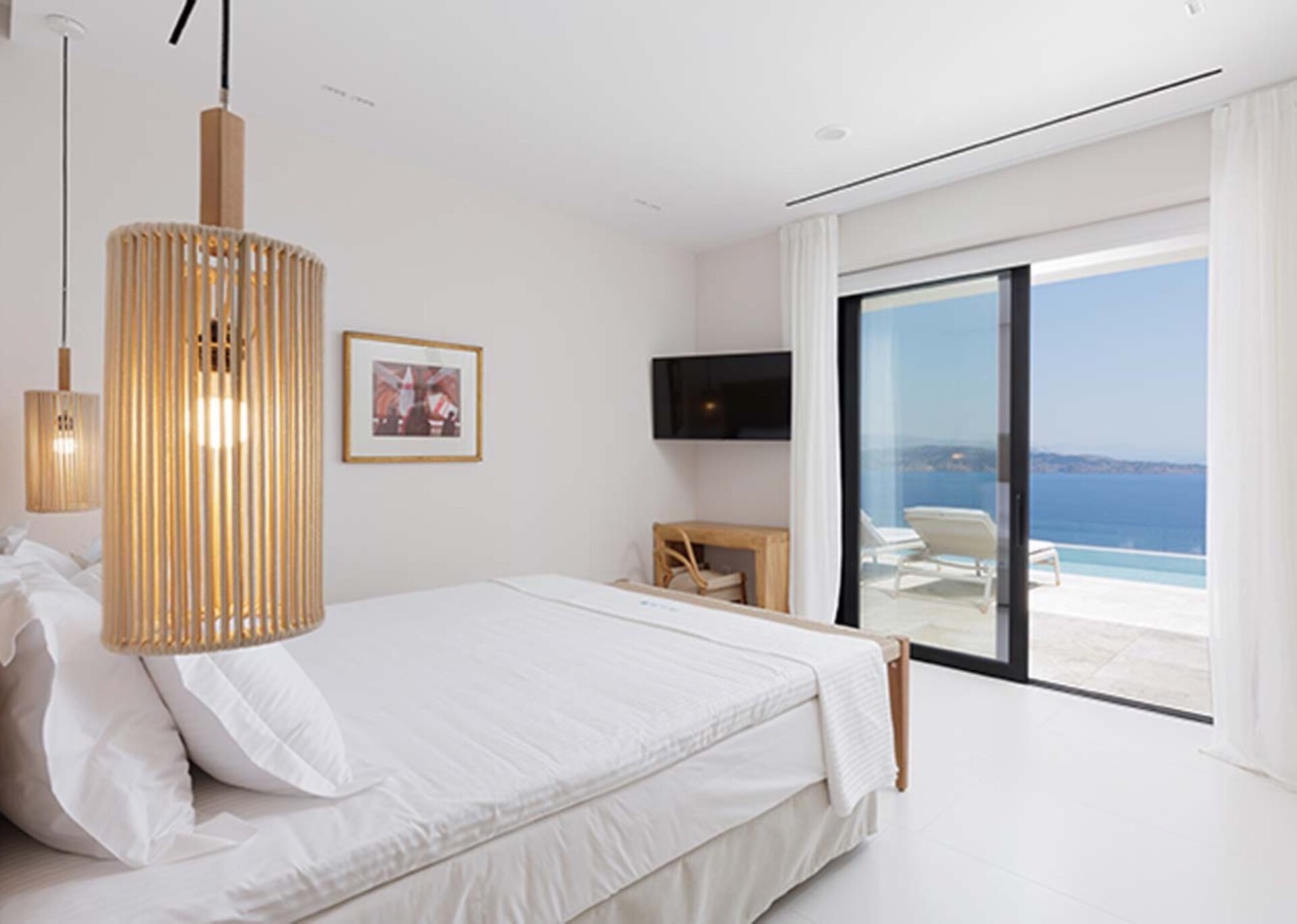 Guests can revel in breathtaking landscapes, such as the crystal-clear blue waters of Nisaki beach, located just a short walk away. Moreover, guests can indulge themselves with traditional Corfiot dishes at the chic seaside tavernas situated on Agni Beach within a mere five minutes' walk.